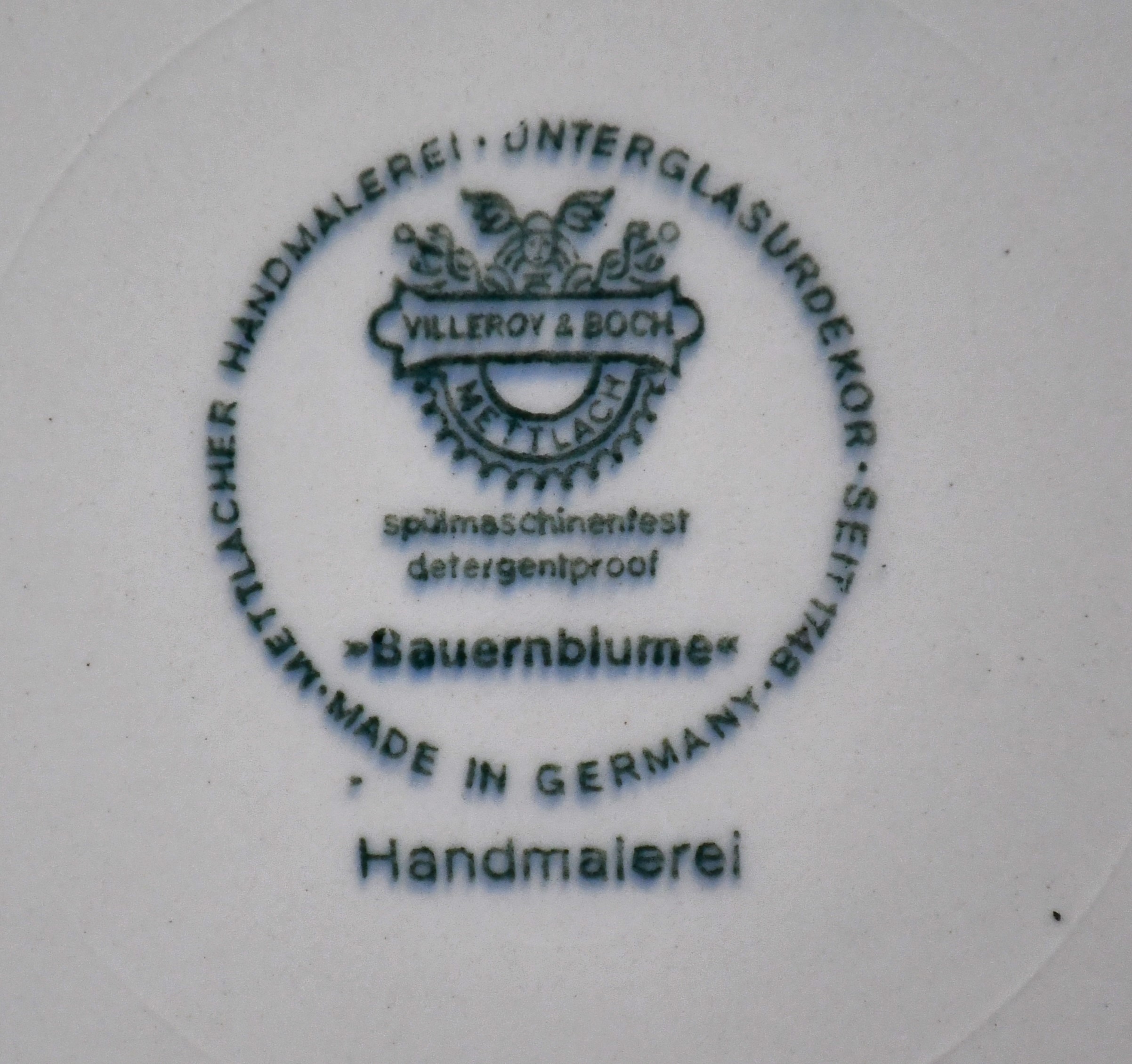 Произведена през 1980-те от „Villeroy & Boch“, изцяло ръчно рисувана. Няма отчупвания, пукнатини или др. забележки. Заради ръчния метод на декорация всеки предмет Bauernblume е уникален!