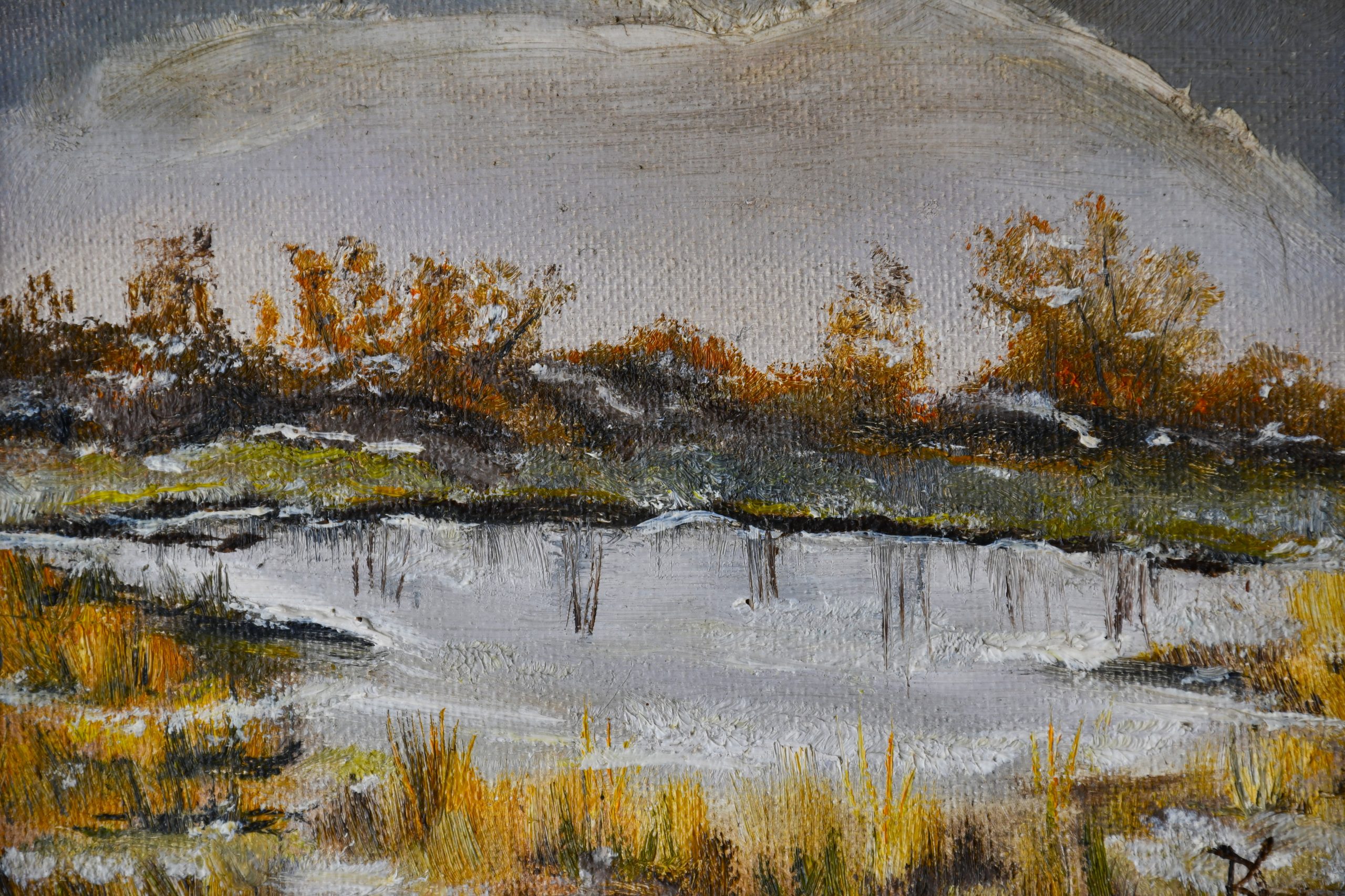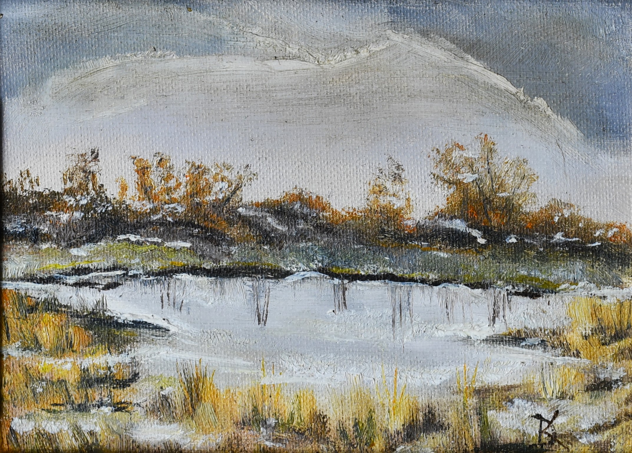 Нидерландска школа (средата на 20-и век) – „Речен пейзаж“, масло върху платно, каширана върху фазер, подписана от автора.
