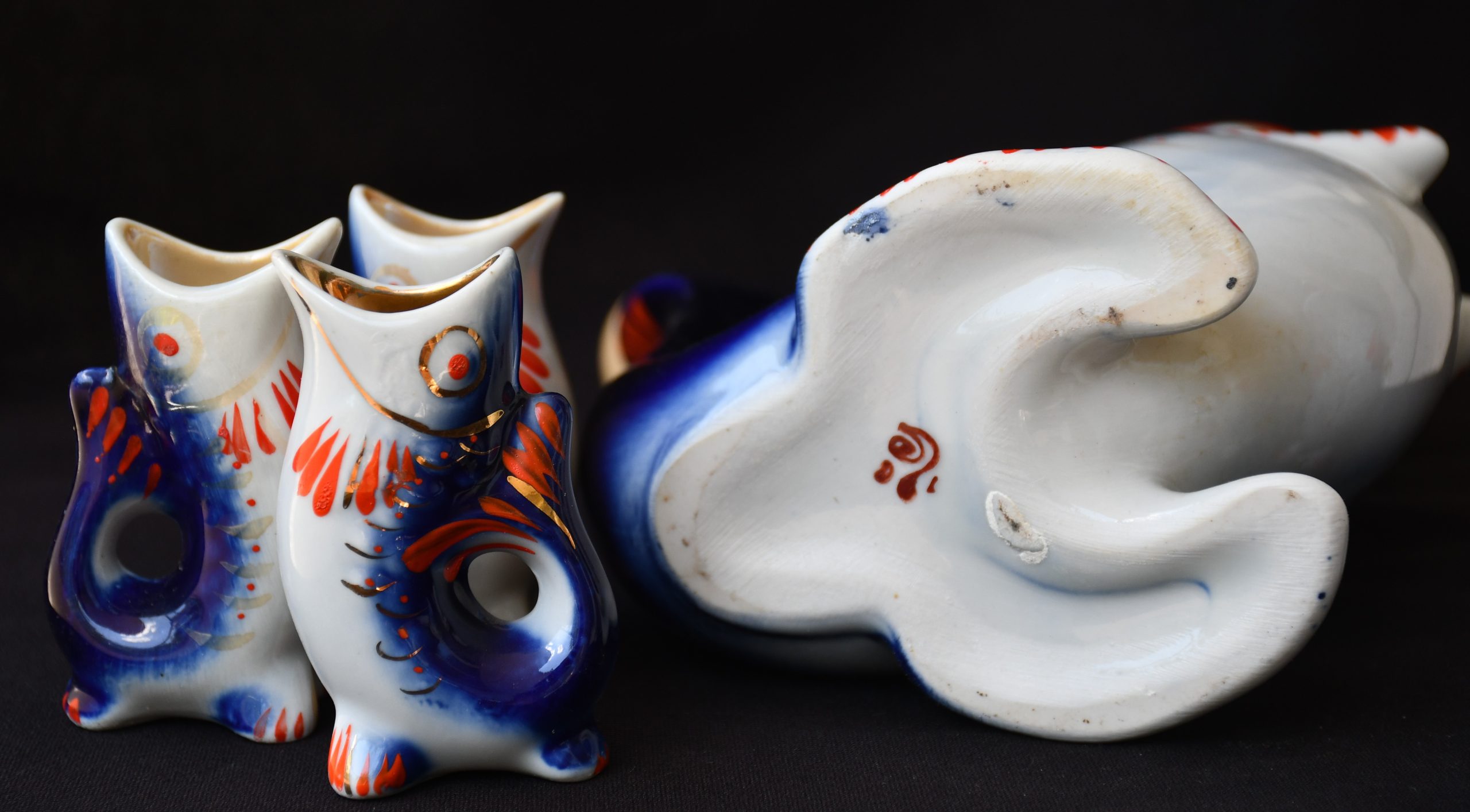 Пълен комплект – една голяма риба и 6 малки рибки. Оригиналната тапа е налична. (В 90% от случаите липсва.)