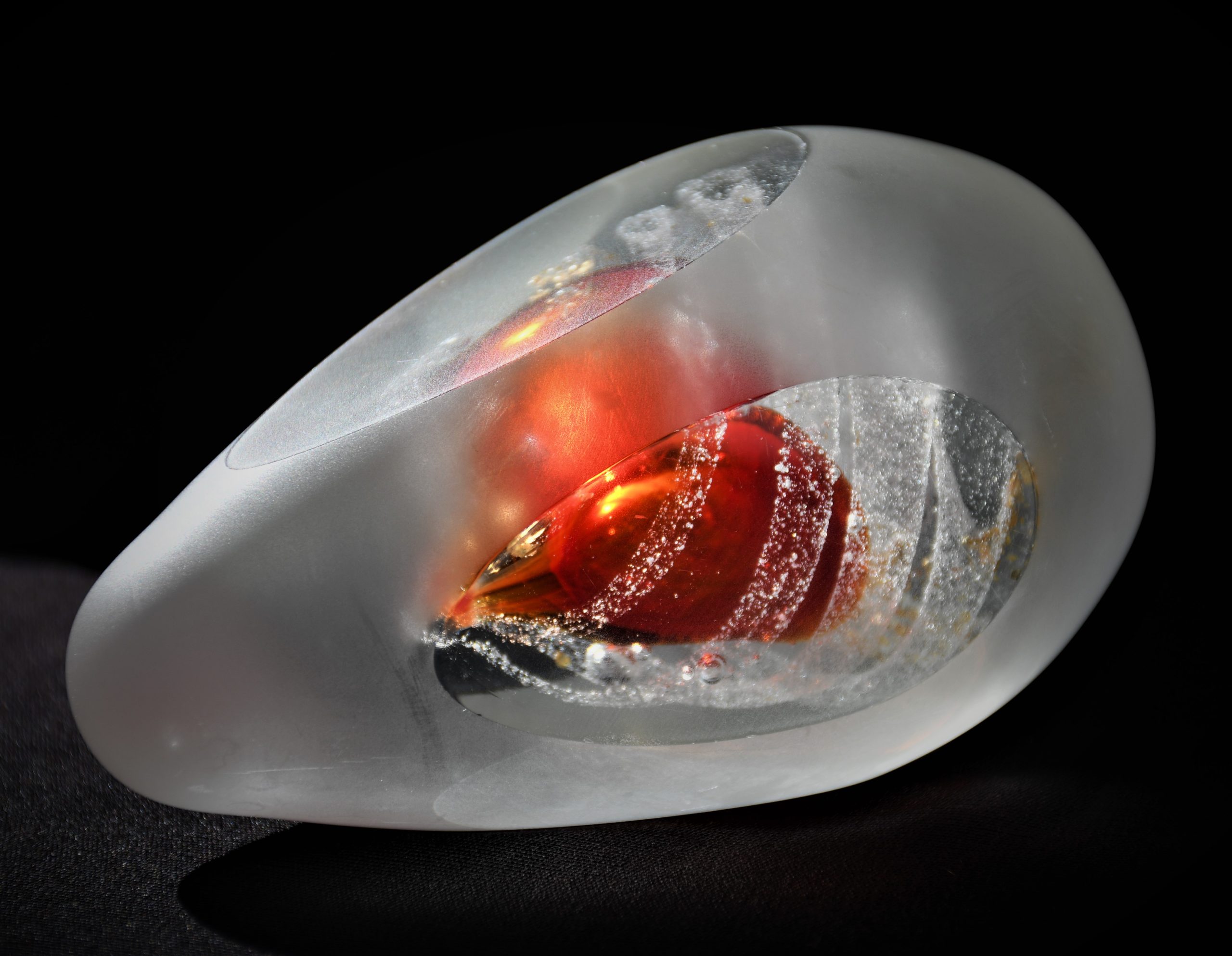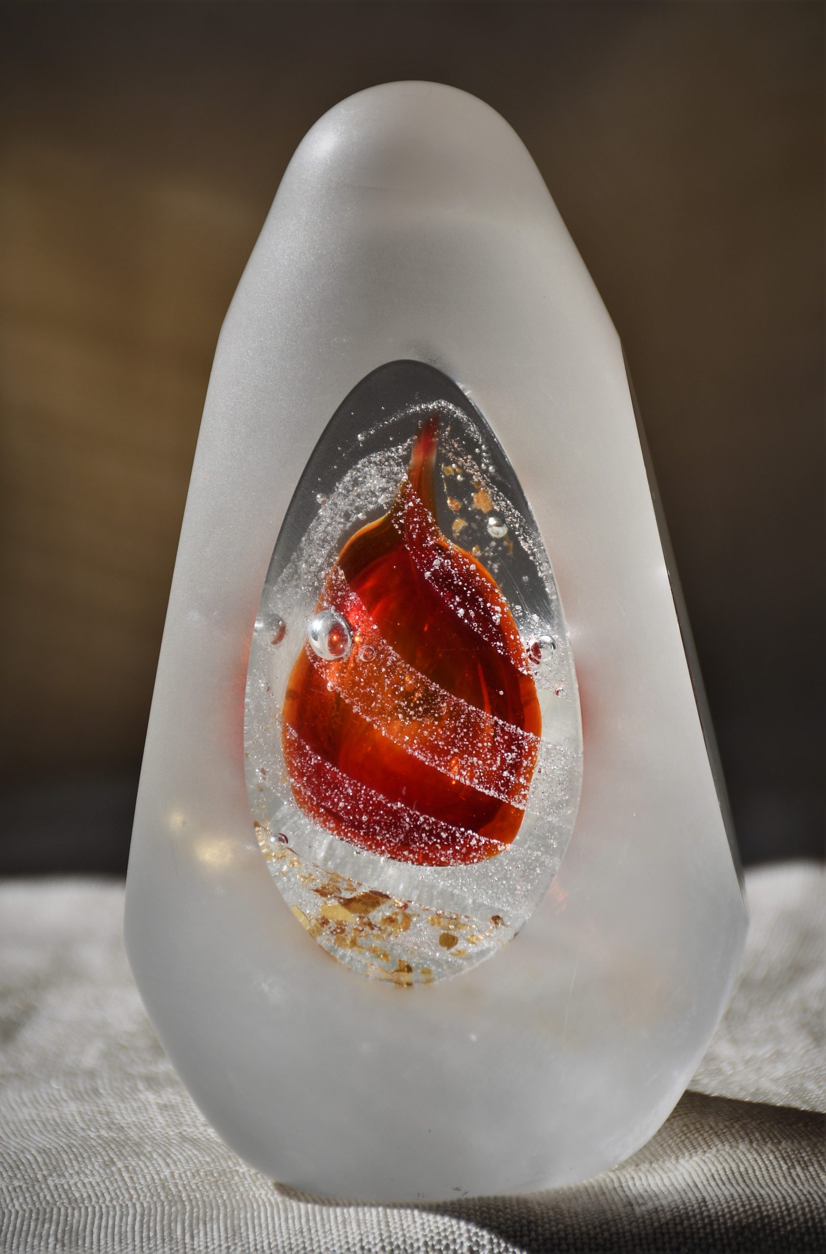 Стъклена скулптура на Monica Backström за Kosta Boda от 1970-те. Швеция. Авторско художествено стъкло.