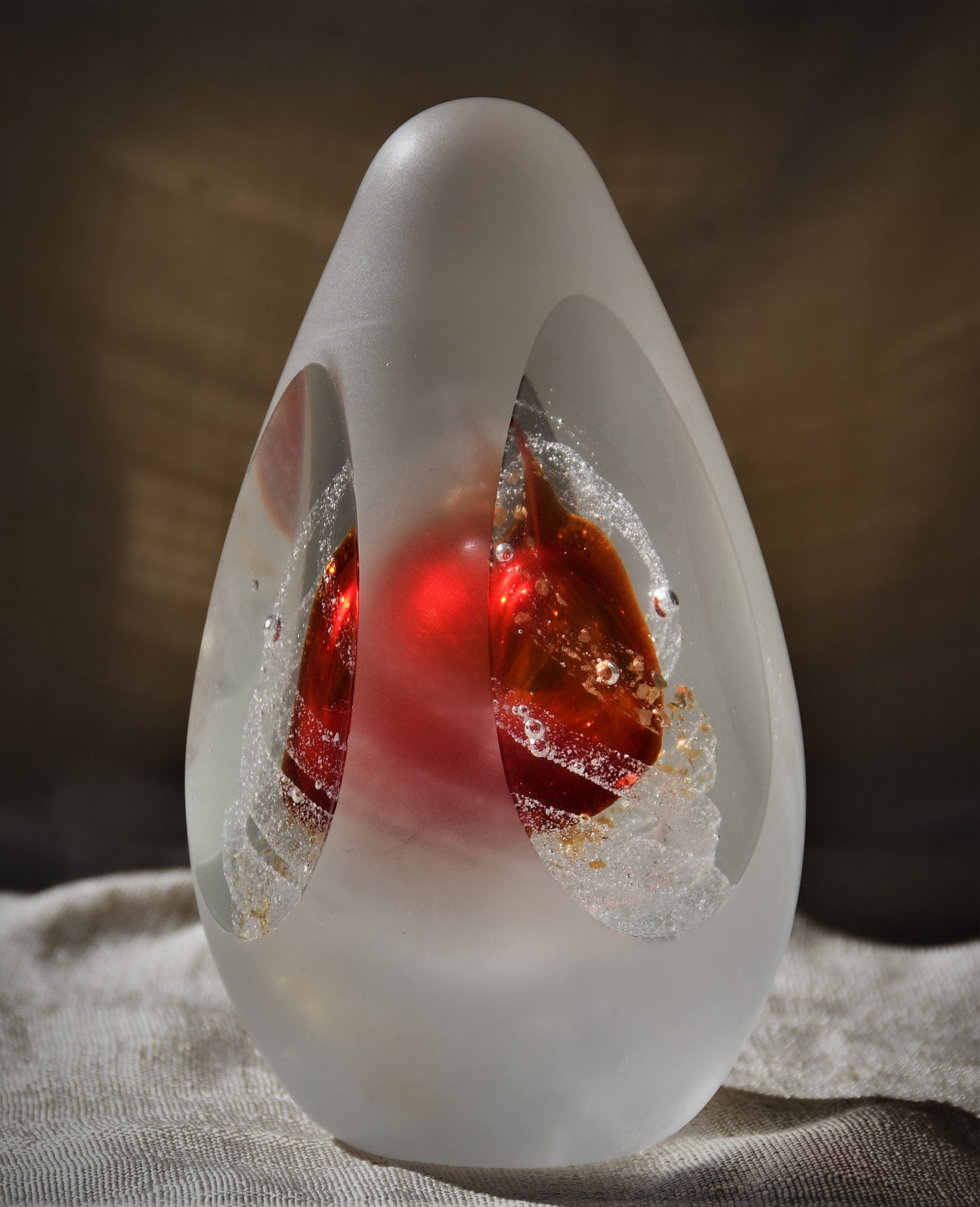 Авторска работа на Monica Backström (1939–2020), създала много класически дизайни за заводите на Boda и Kosta. Казват за нея, че след смъртта на кралица Моника Кралството на стъклото вече не е същото.