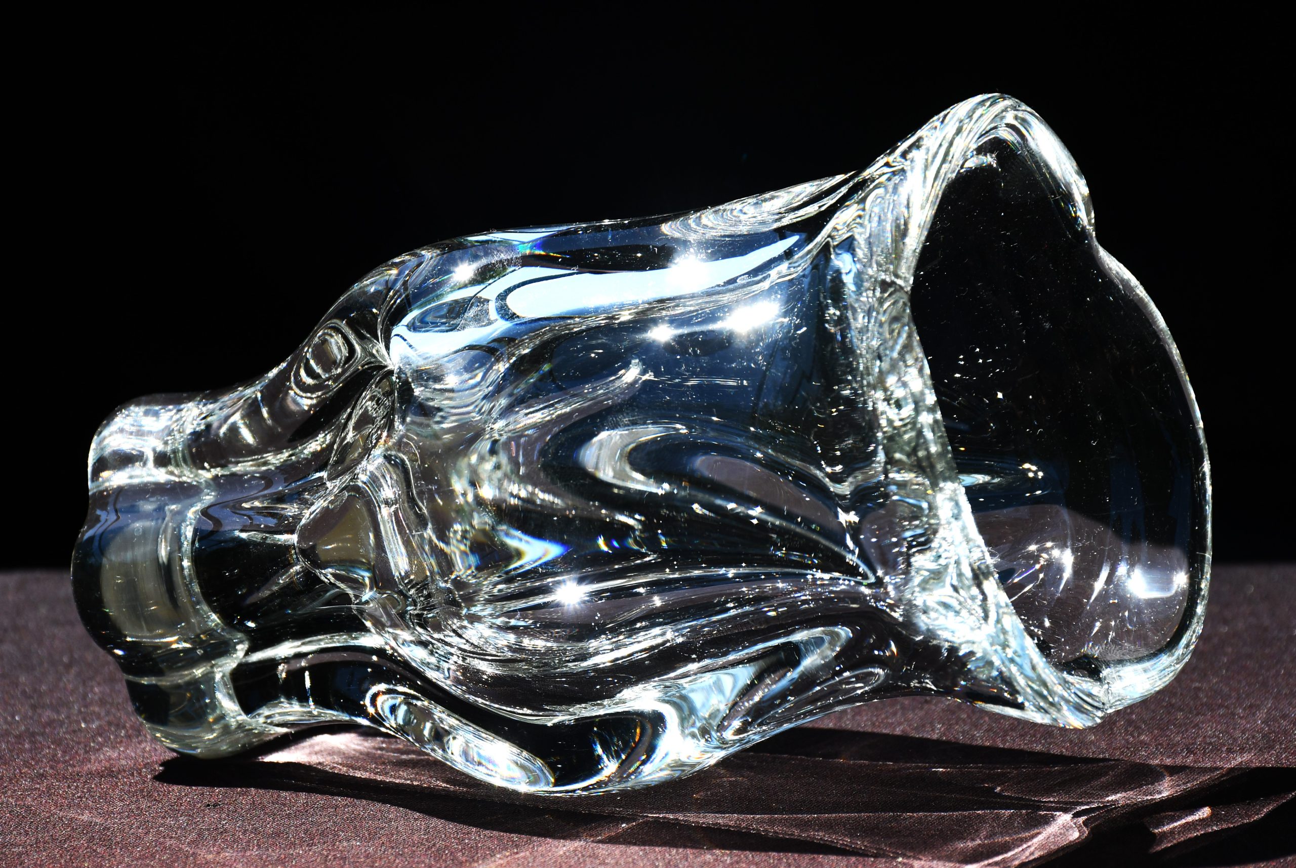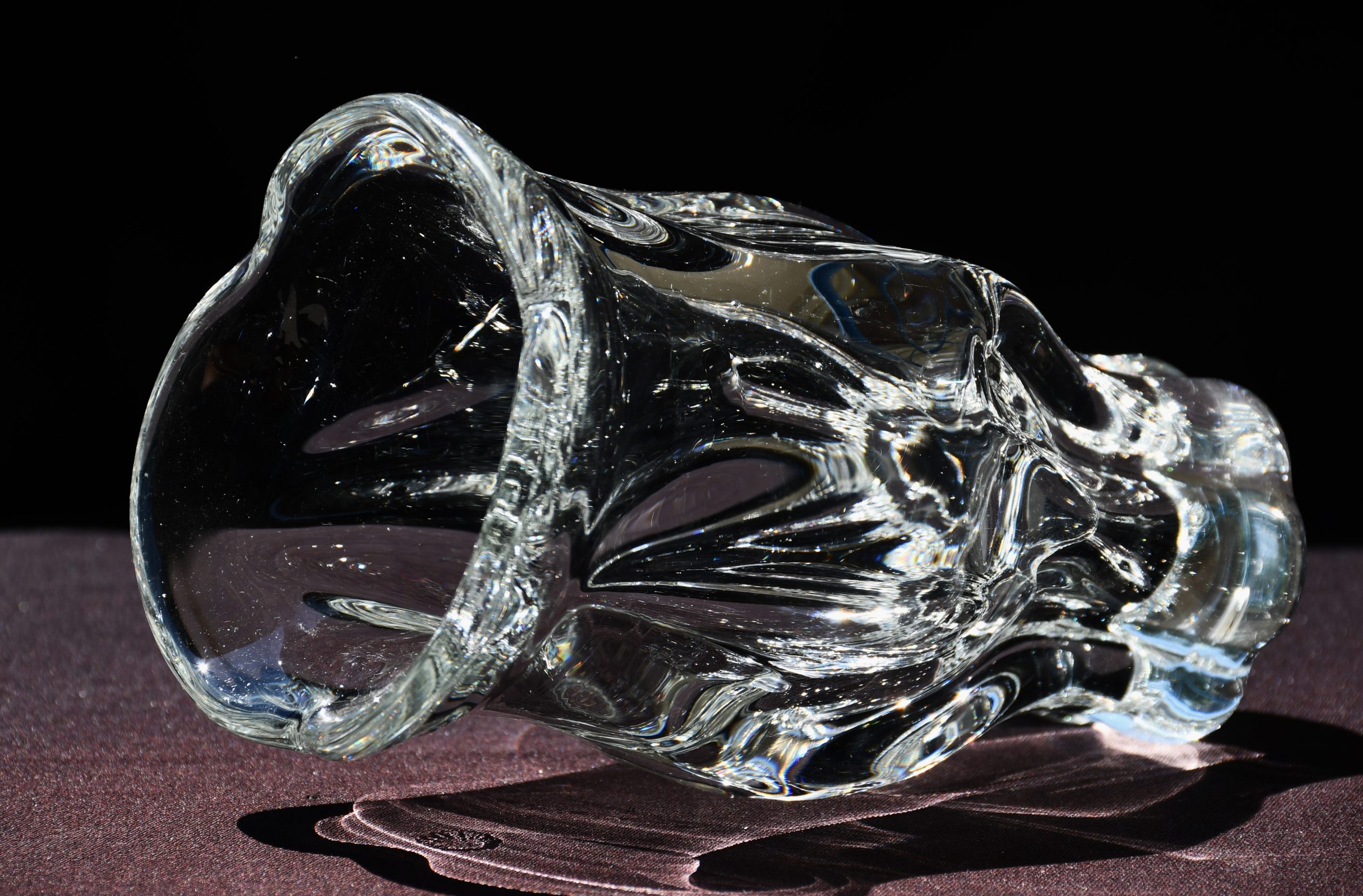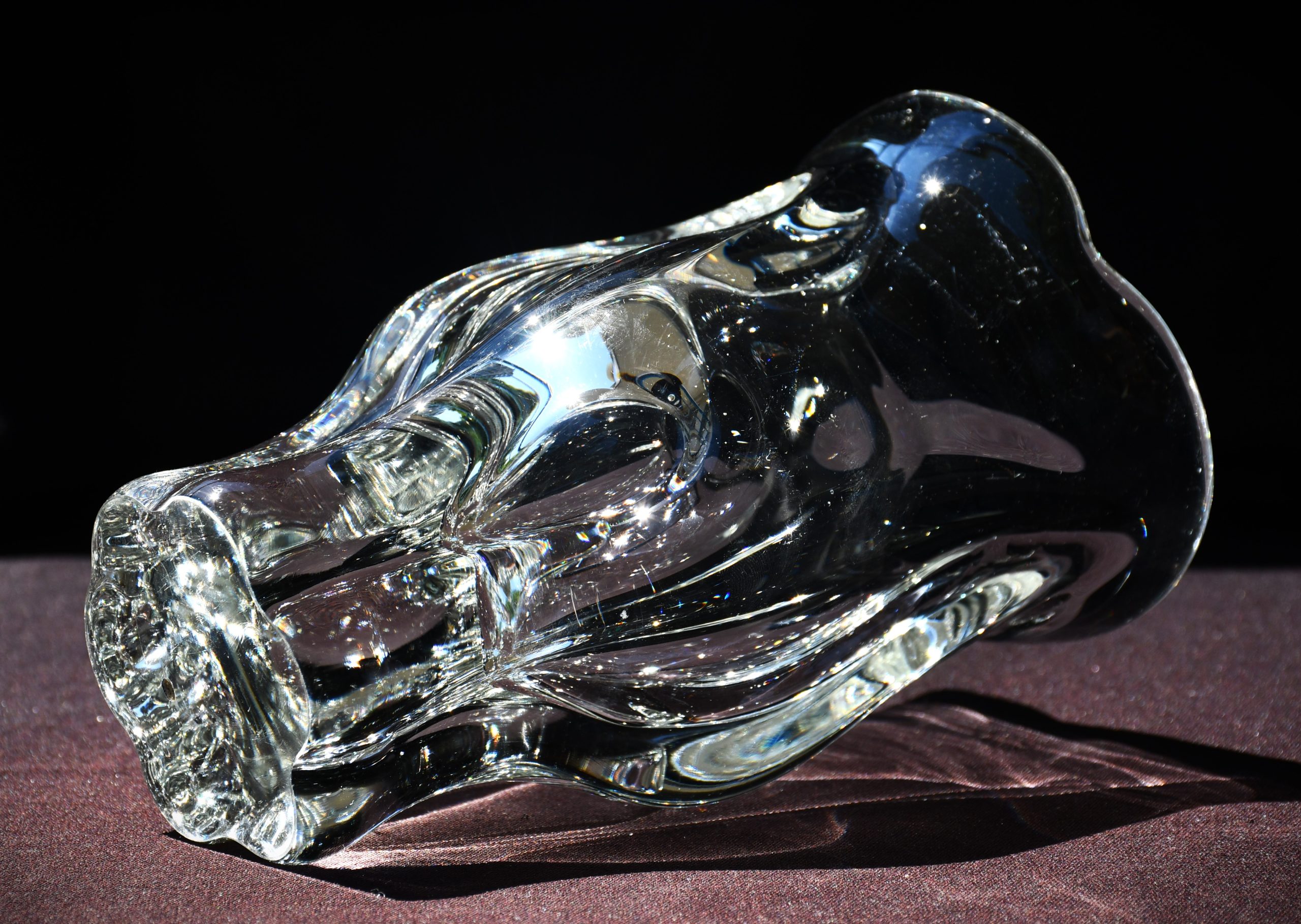 Много красива скулптурална ваза от прозрачно кристално стъкло. Midcentury-modern дизайн. Датировка 1960-те. Ръчно духано стъкло с ръчна шлифовка на дъното. Авторска работа на Йозеф Хосподка, един от най-значимите чешки артисти в стъклото за 20-и век.