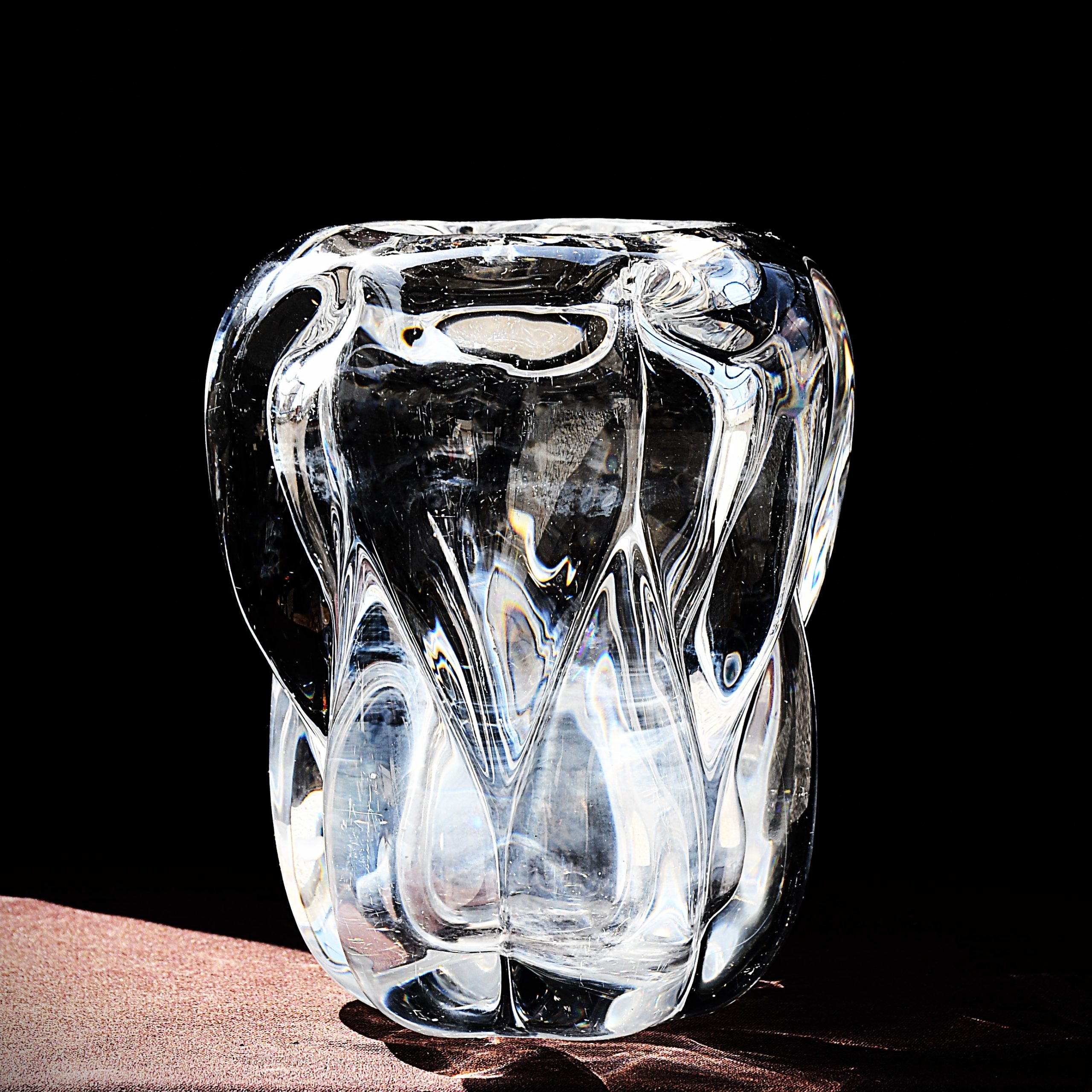 Невероятно красива ваза в стил Mid-Century Modern – ръчна изработка. Производство на белгийската компания Вал Сен Ламбер – между 1950 и 1960-а. Авторски продукт на братята Antonio and Guido Bon. (Двамата са италиански топ артисти в стъклото, които поради тежката икономическа ситуация в следвоенна Италия работят в Белгия, обучавайки местните занаятчии в техниките на венецианското стъкло.)