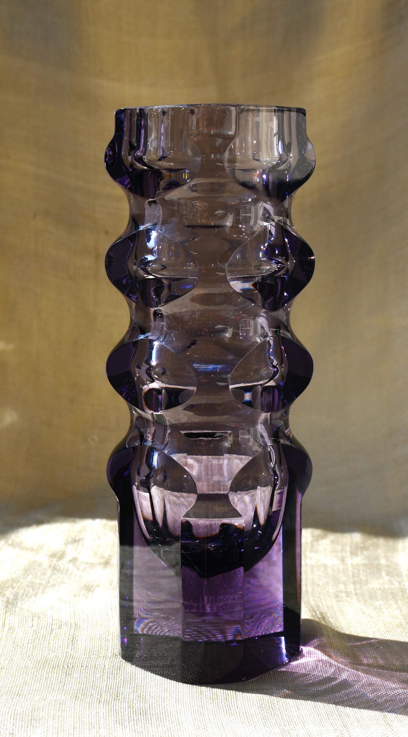 Впечатляваща авторска арт-глас ваза на Milan Metelák (1928-1993), ръчна работа. Създадена в Nový Bor/Harrachov Glassworks, Бохемия. Датировка 1960те. Модел „Дъждовни капки“.