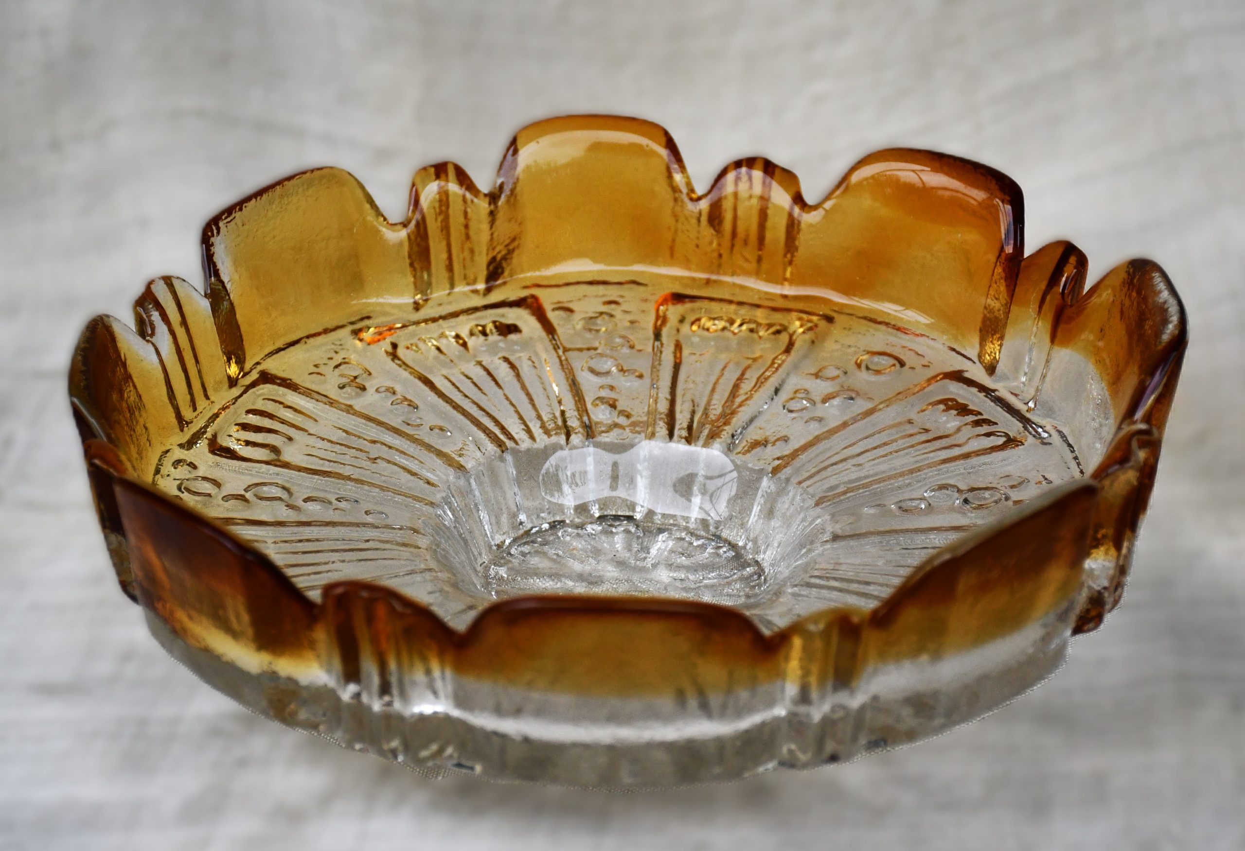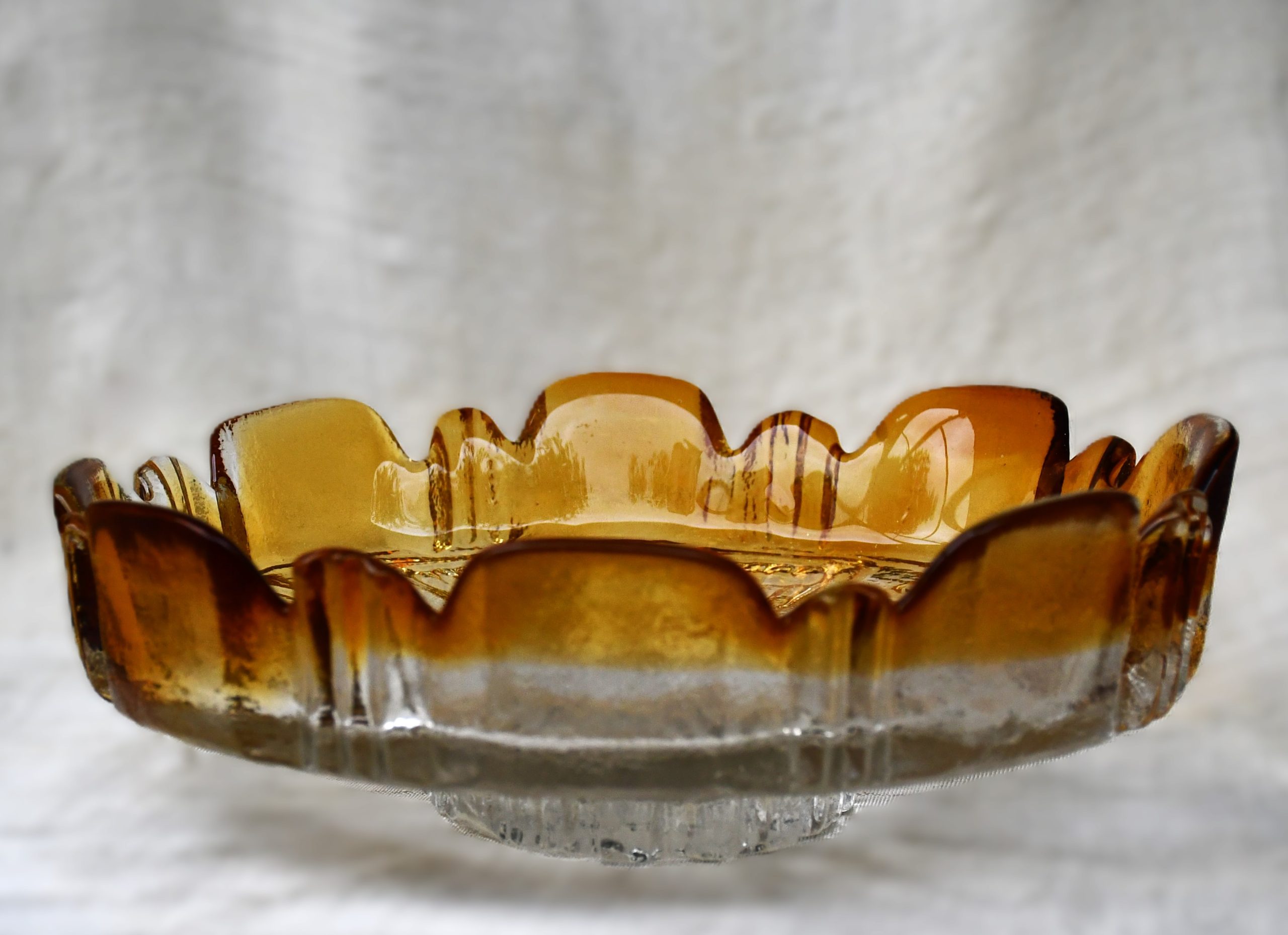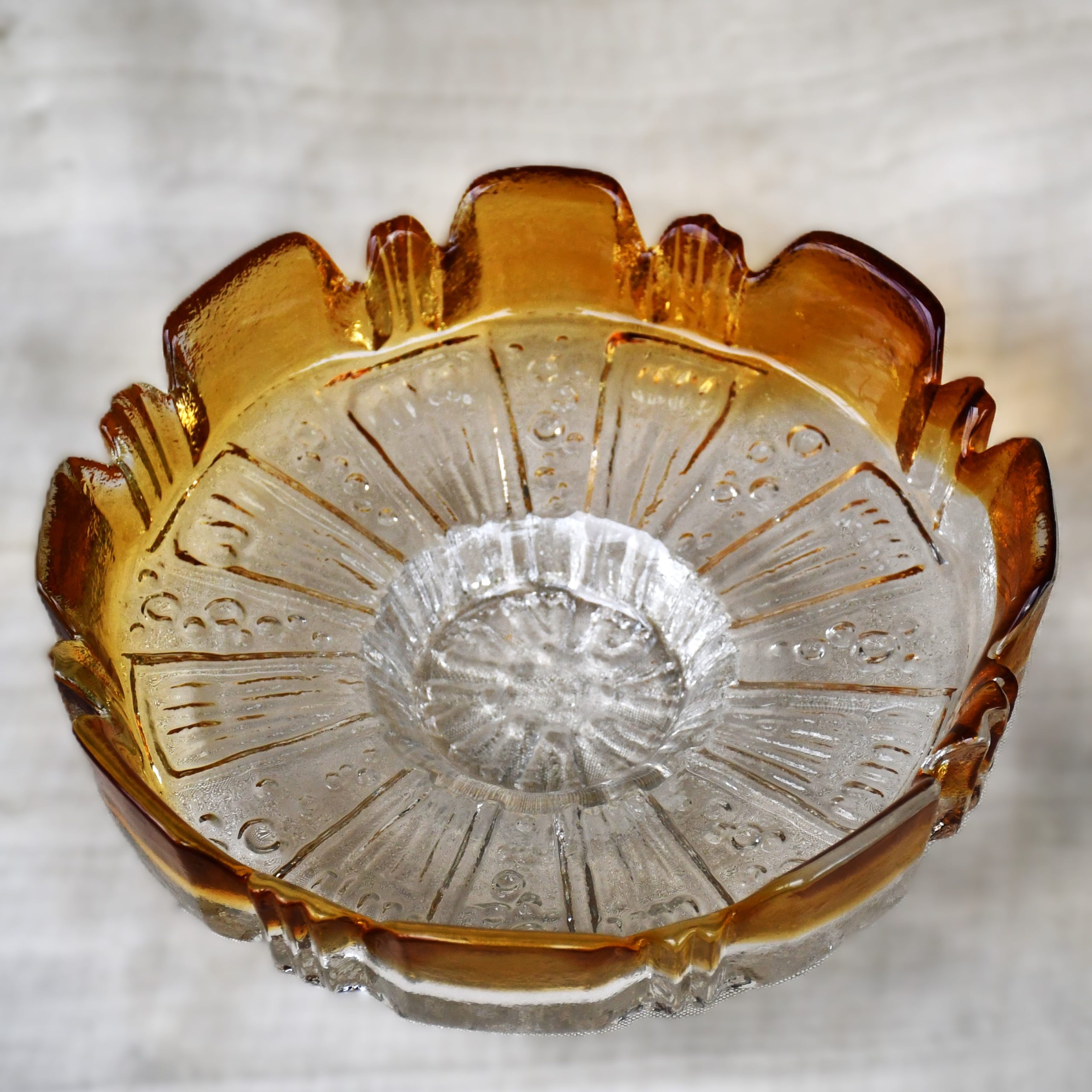 Произведено в Humppila Lasitehtaan – Финландия. Дизайн и ръчна изработка на Tauno Wirkkala (брат на Tapio Wirkkala). Датировка – 1970те.