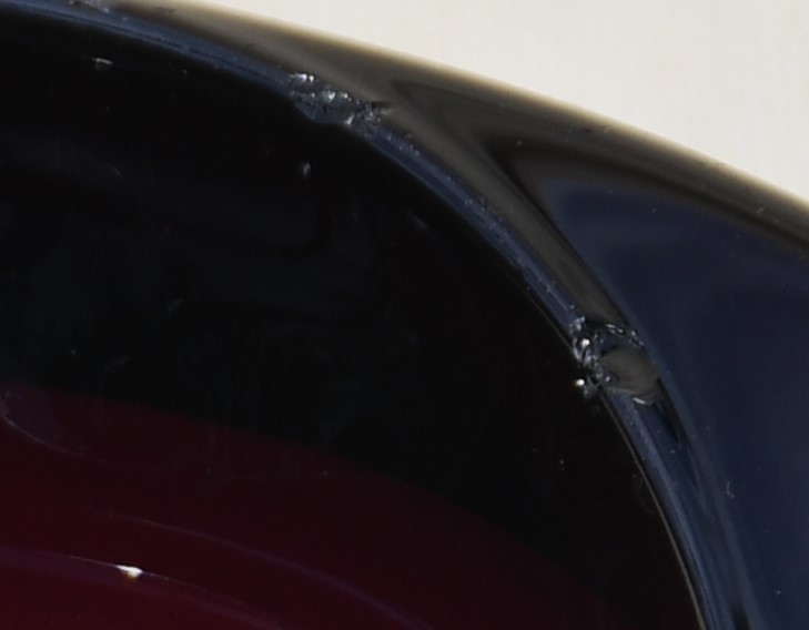 Състоянието е много добро винтидж – с малки и не особено значими следи от изминалото време. Двете дребни щърбавинки, които могат да са най-смущаващи за перфекционистите, са отбелязани и представени в много едър план. Едва ли ще ги забелязвате, но пък те Ви предоставят чудесната възможност да си купите един много скъп пеперник много евтино. Малки несъвършенства вътре в стъклото – нормално за този метод на изработка.