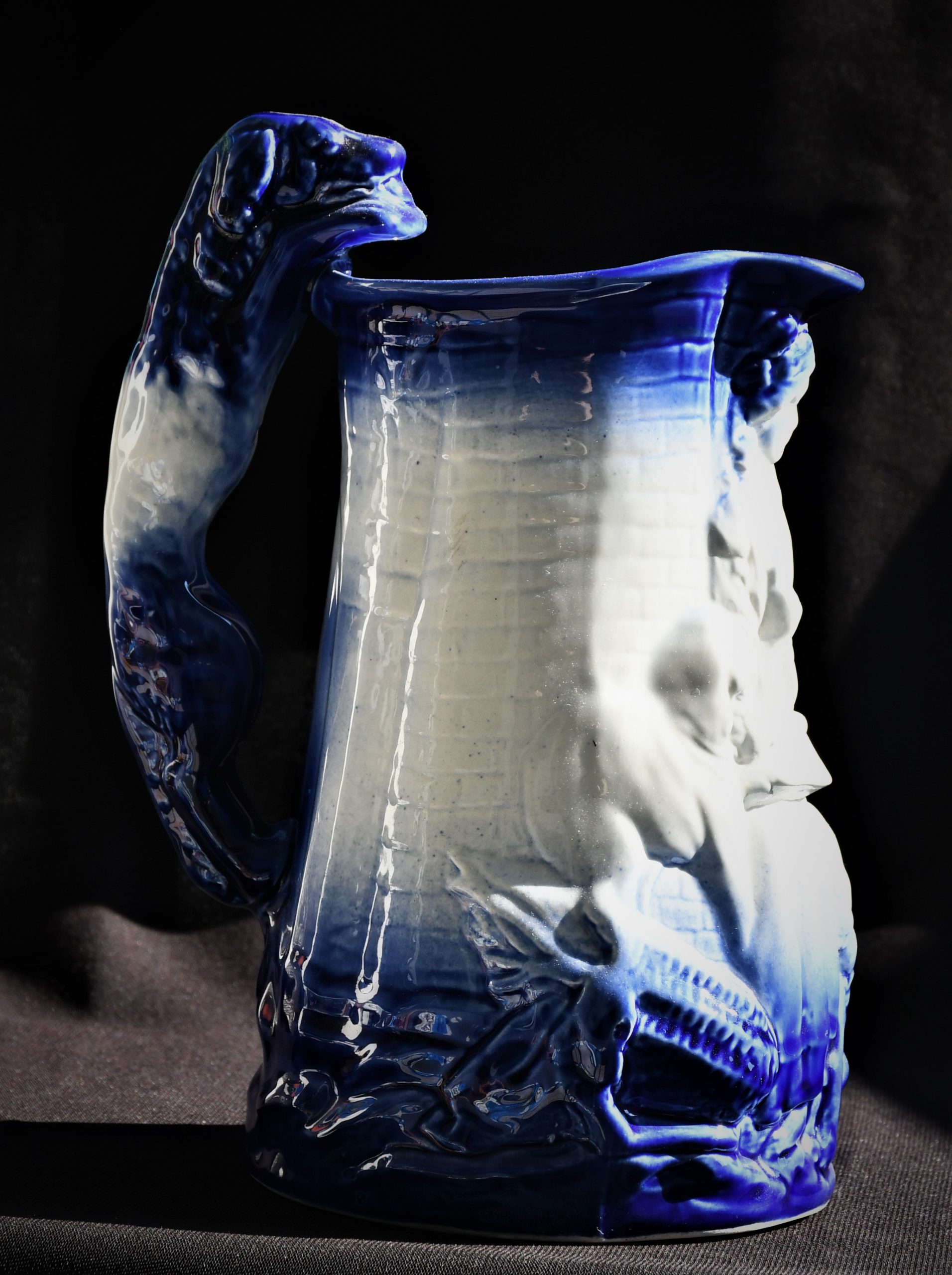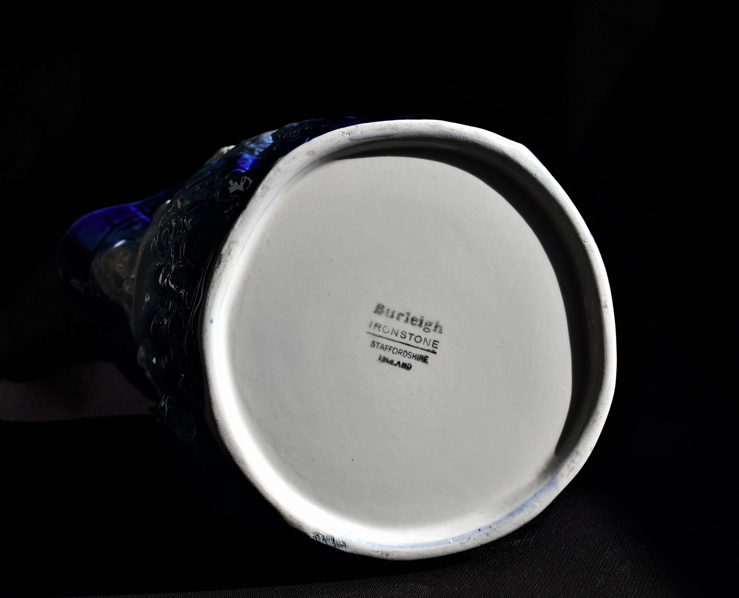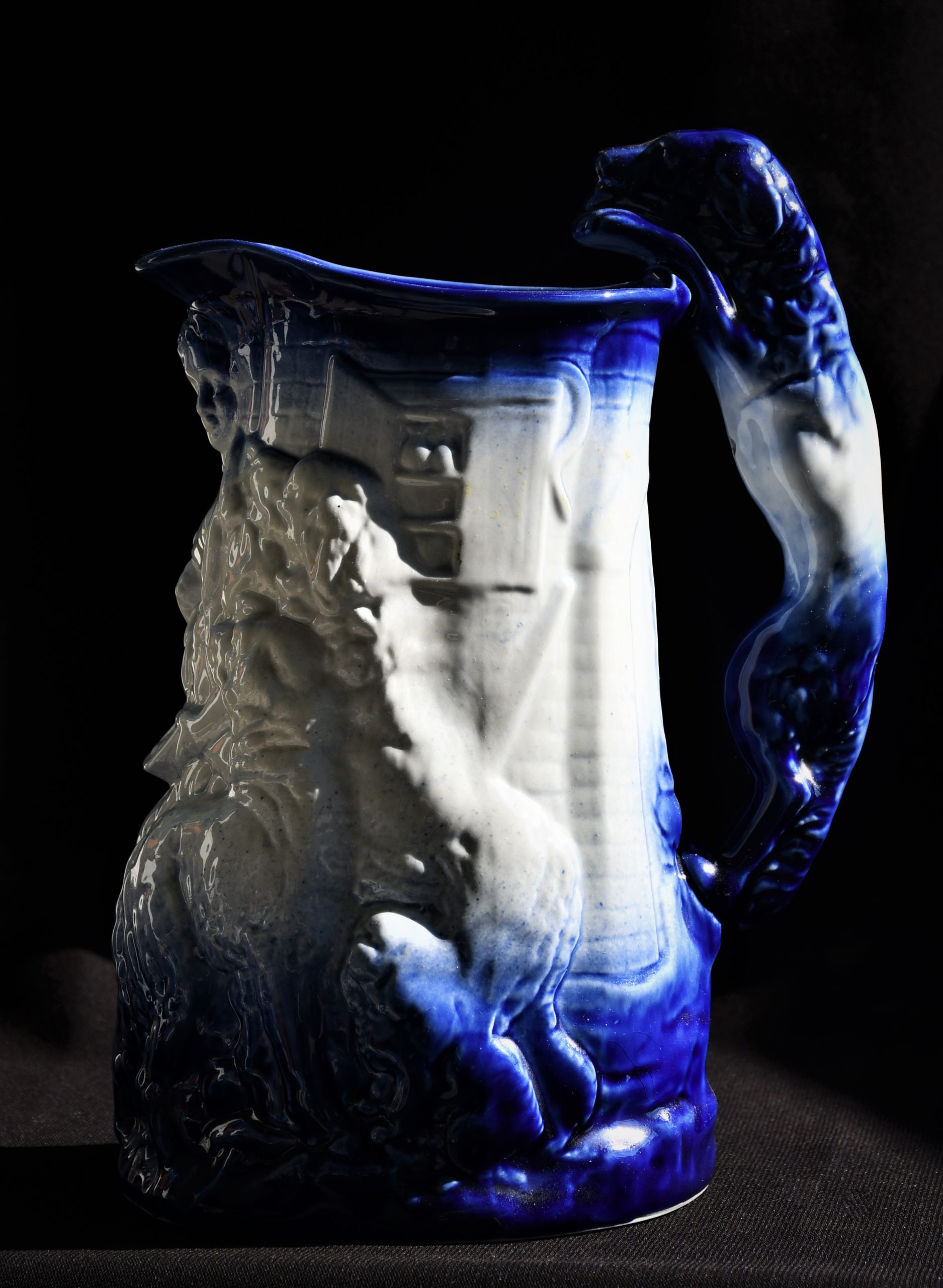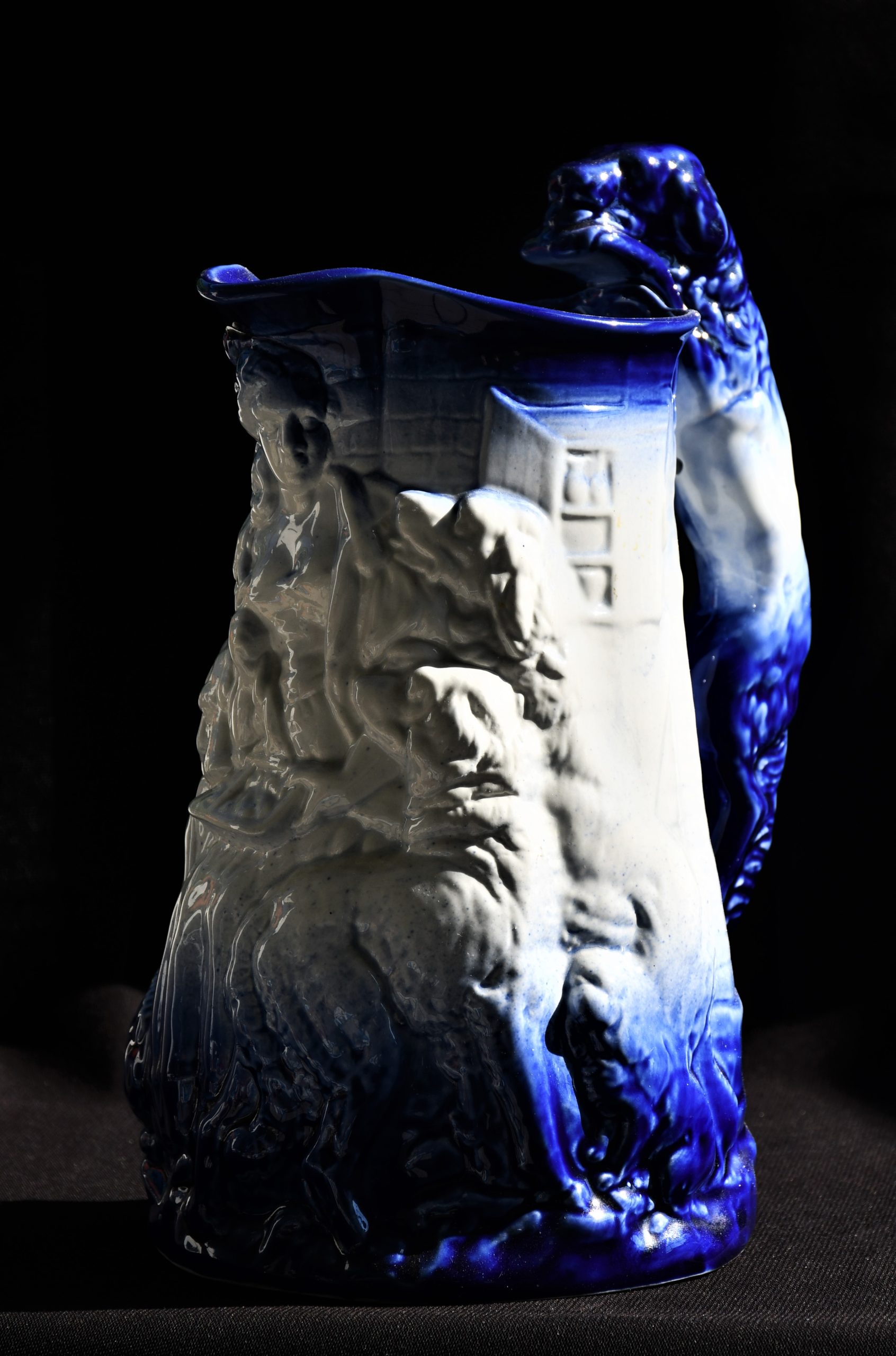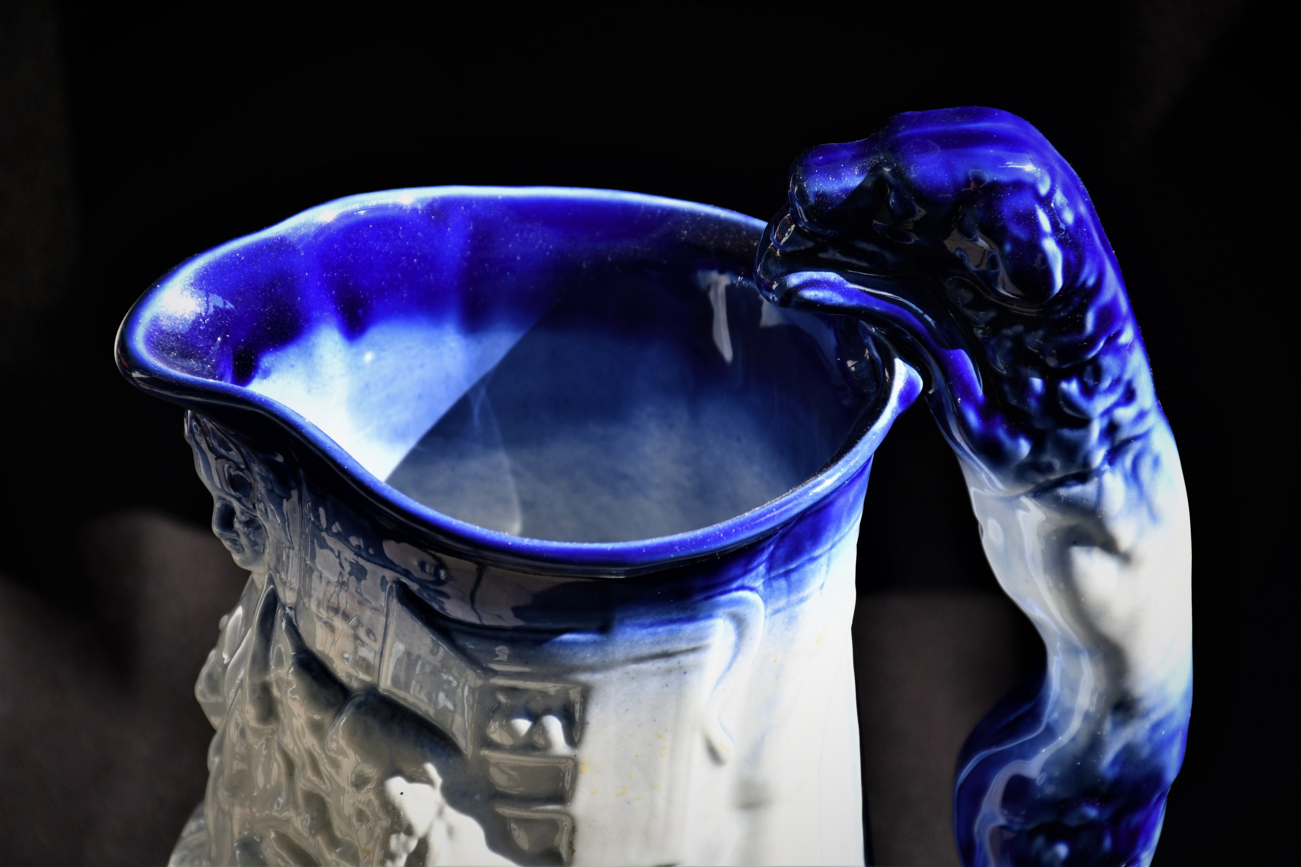 Нещо, което не можете да видите всеки ден. Впечатляваща английска керамична кана на “ Burleigh Ironstone Staffordshire England „. Винтидж – от периода 1950-59 г. Емблематична за стила на стафоршърдската керамика, известна по целия свят. Дизайнът се нарича „Feeding the Hounds“ (Храненето на кучетата). Изобразява млада жена, хранеща 4 кучета. Има и едно резервно гладно пале долу в дясно.:)