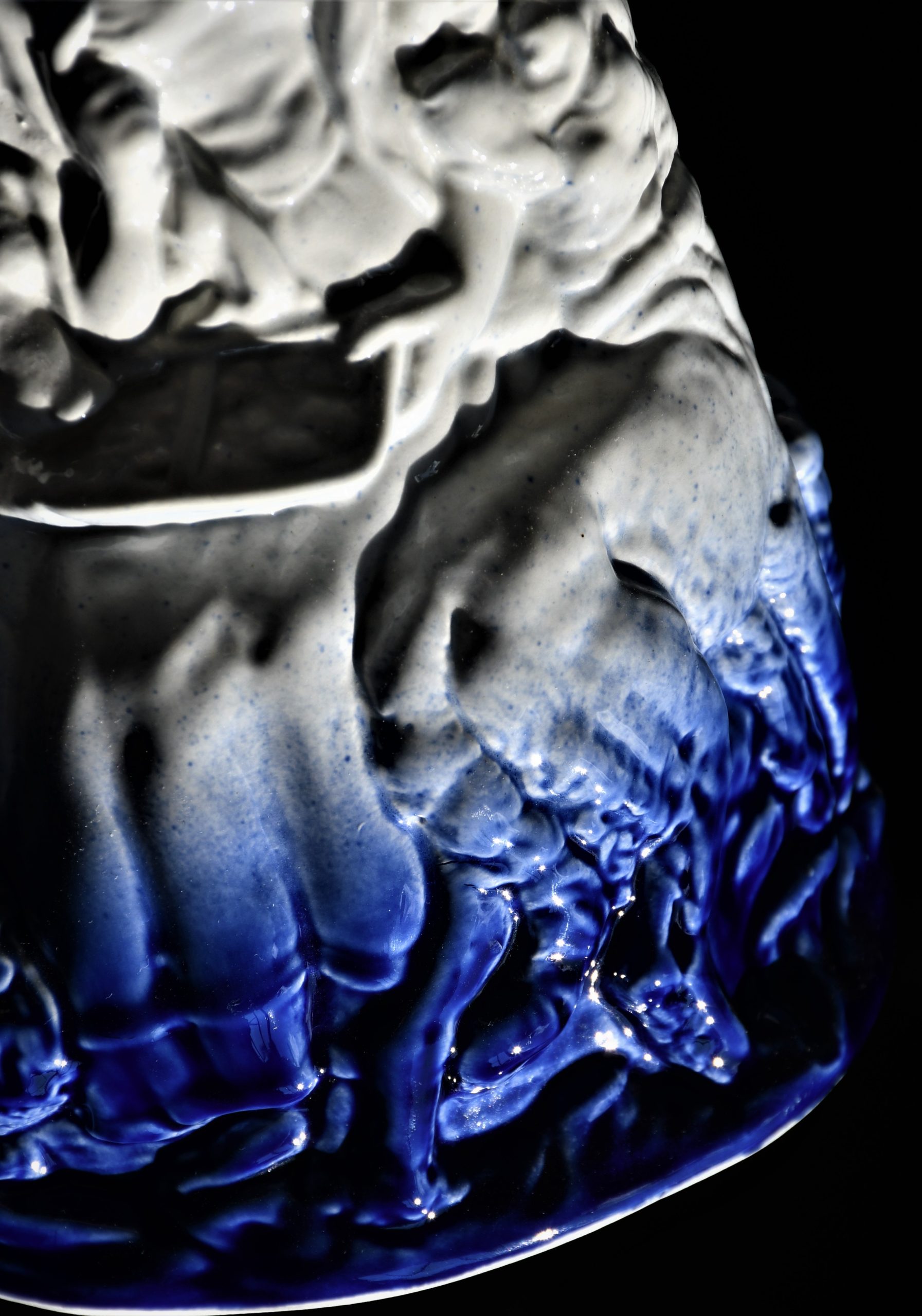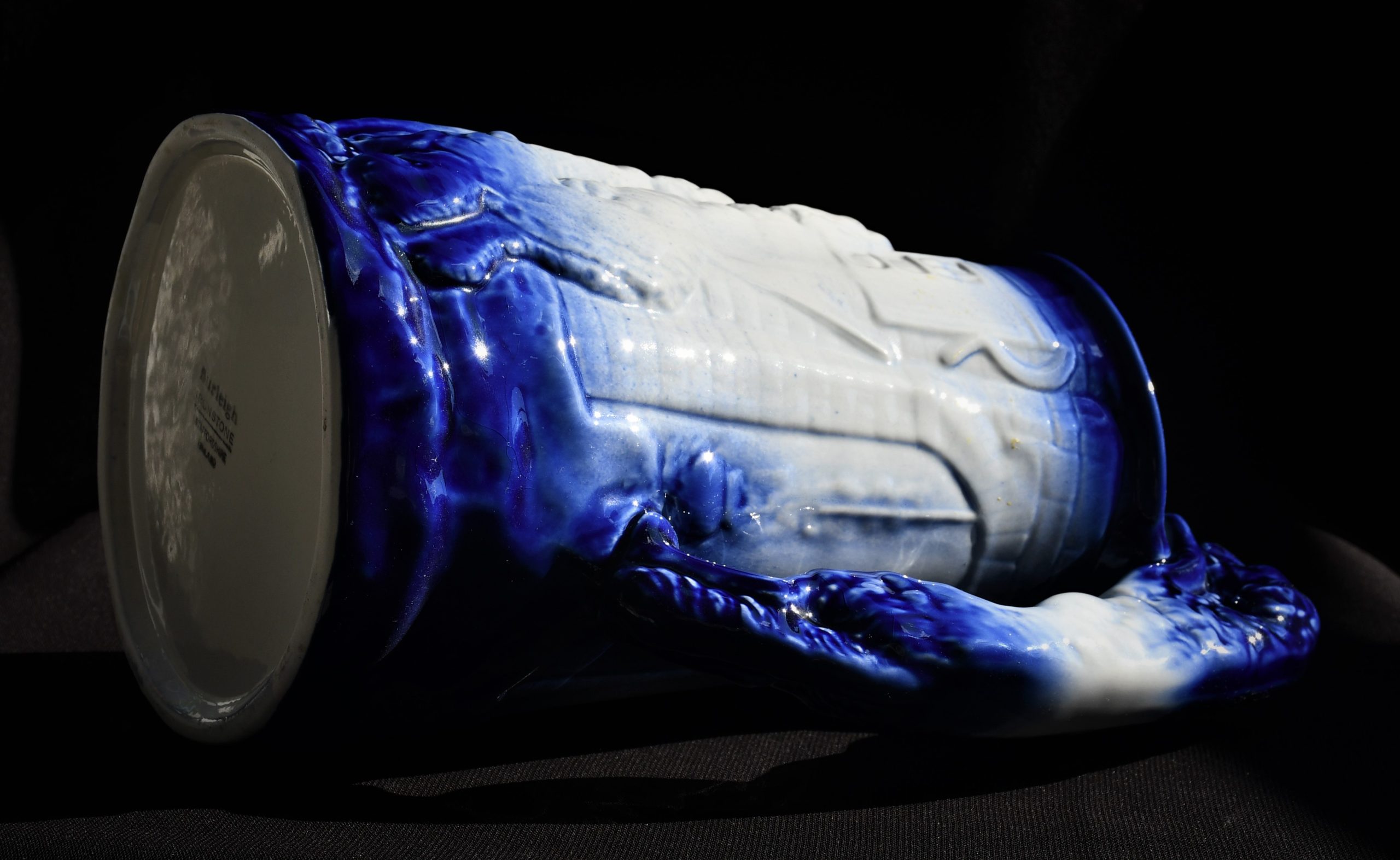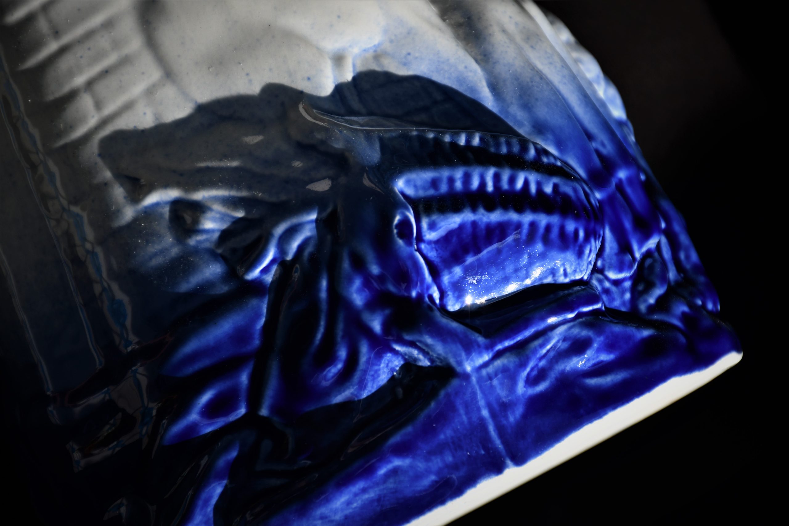 Впечатляващ интериорен предмет. Предмет като никой друг. Перфектна изработка. Ръчно оцветяван с индигова глазура.