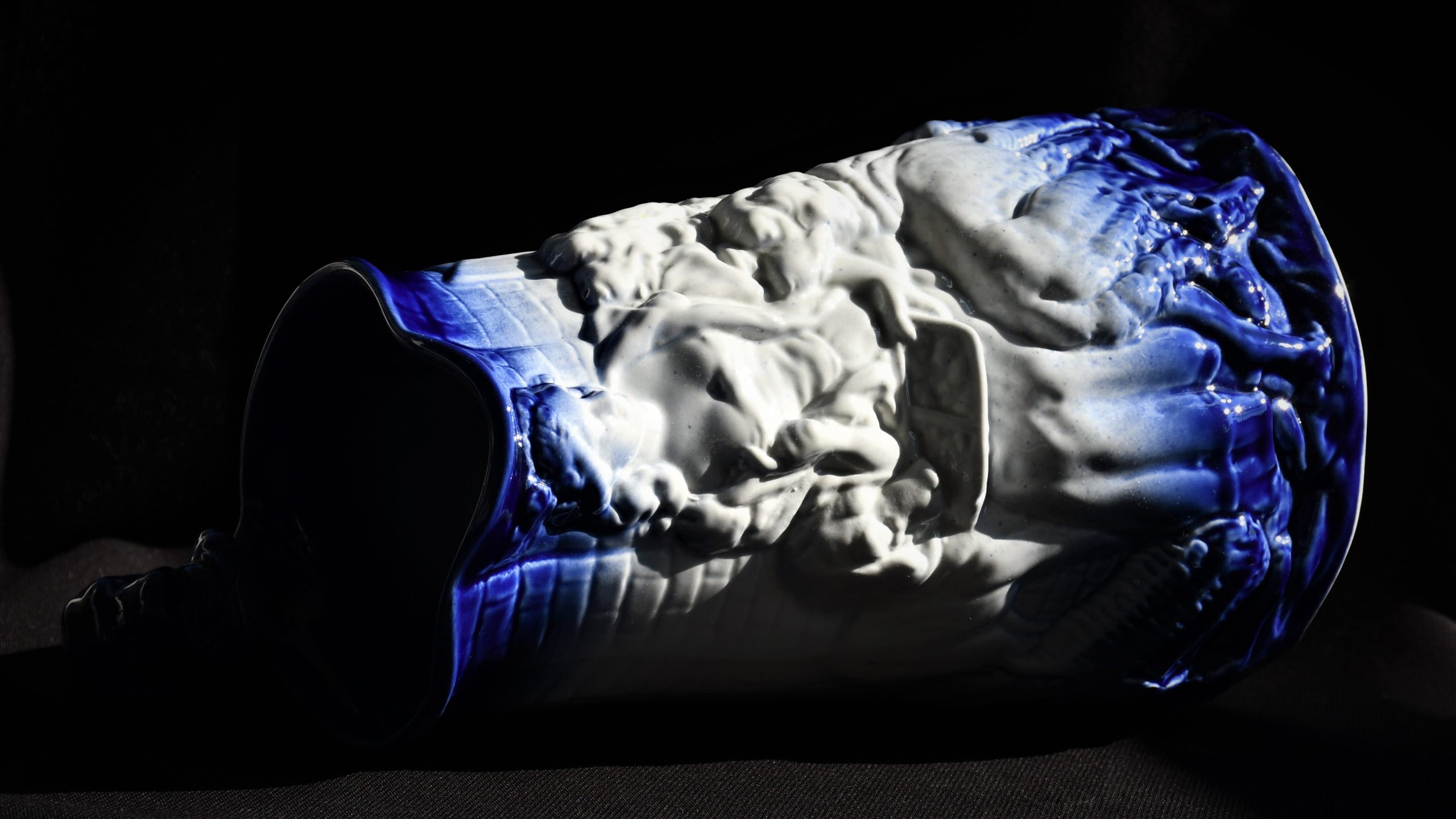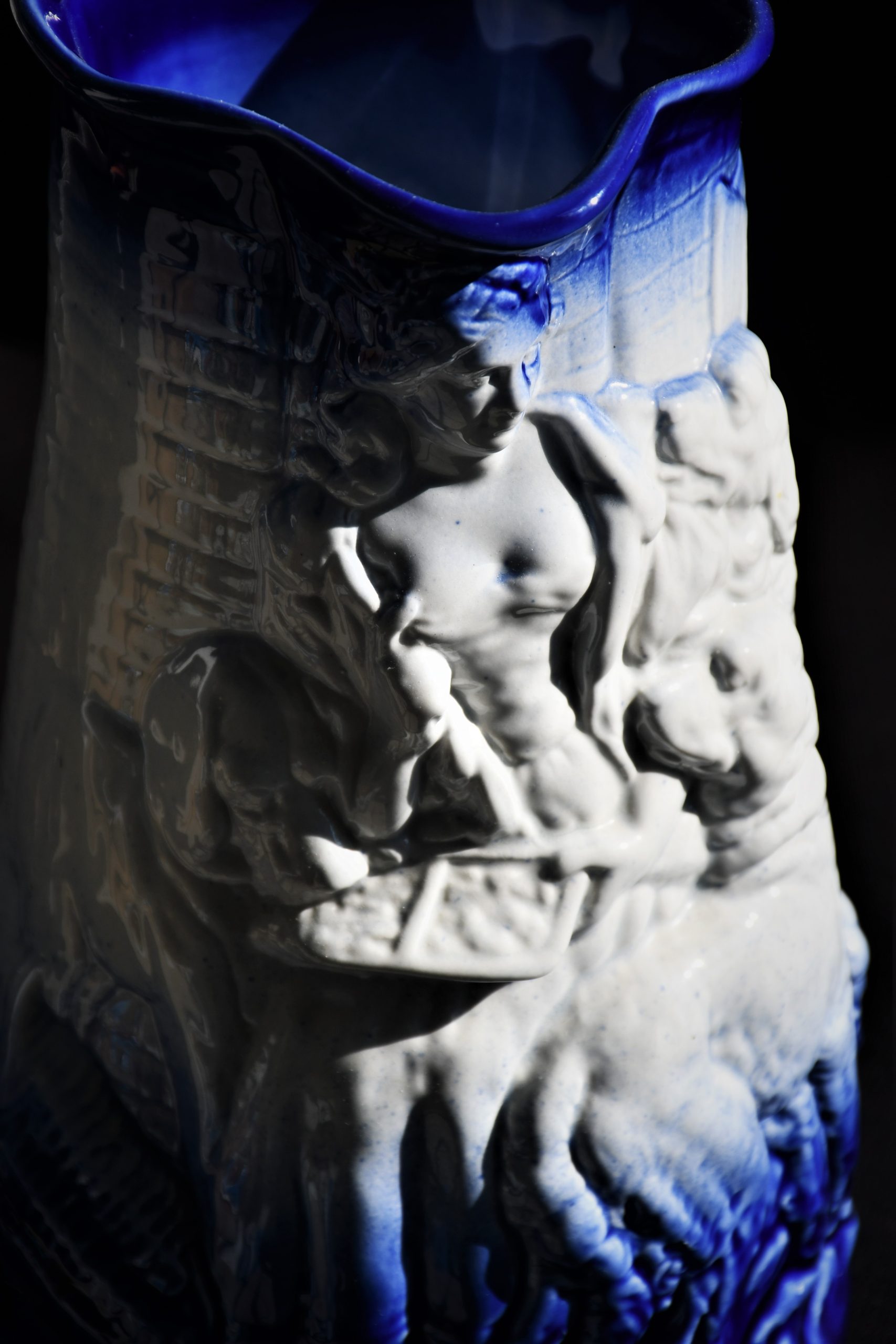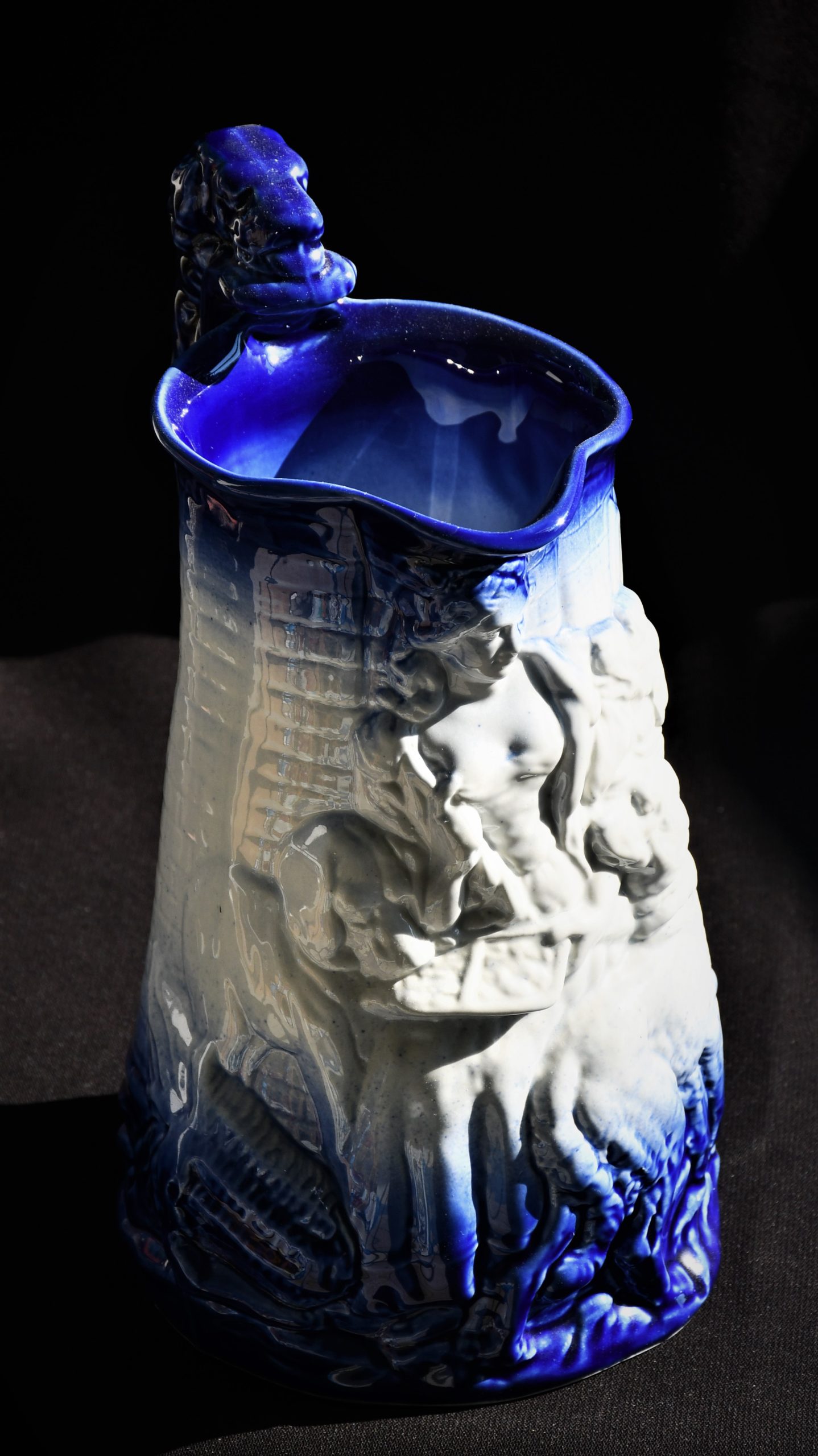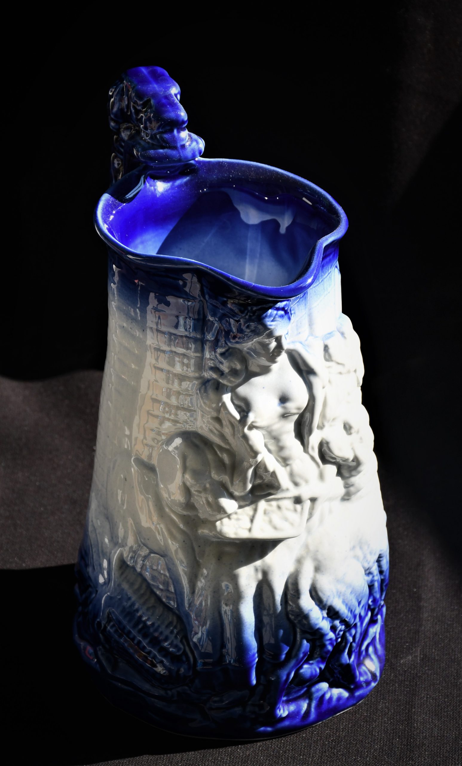Впечатляващ интериорен предмет. Предмет като никой друг. Перфектна изработка. Ръчно оцветяван с индигова глазура.