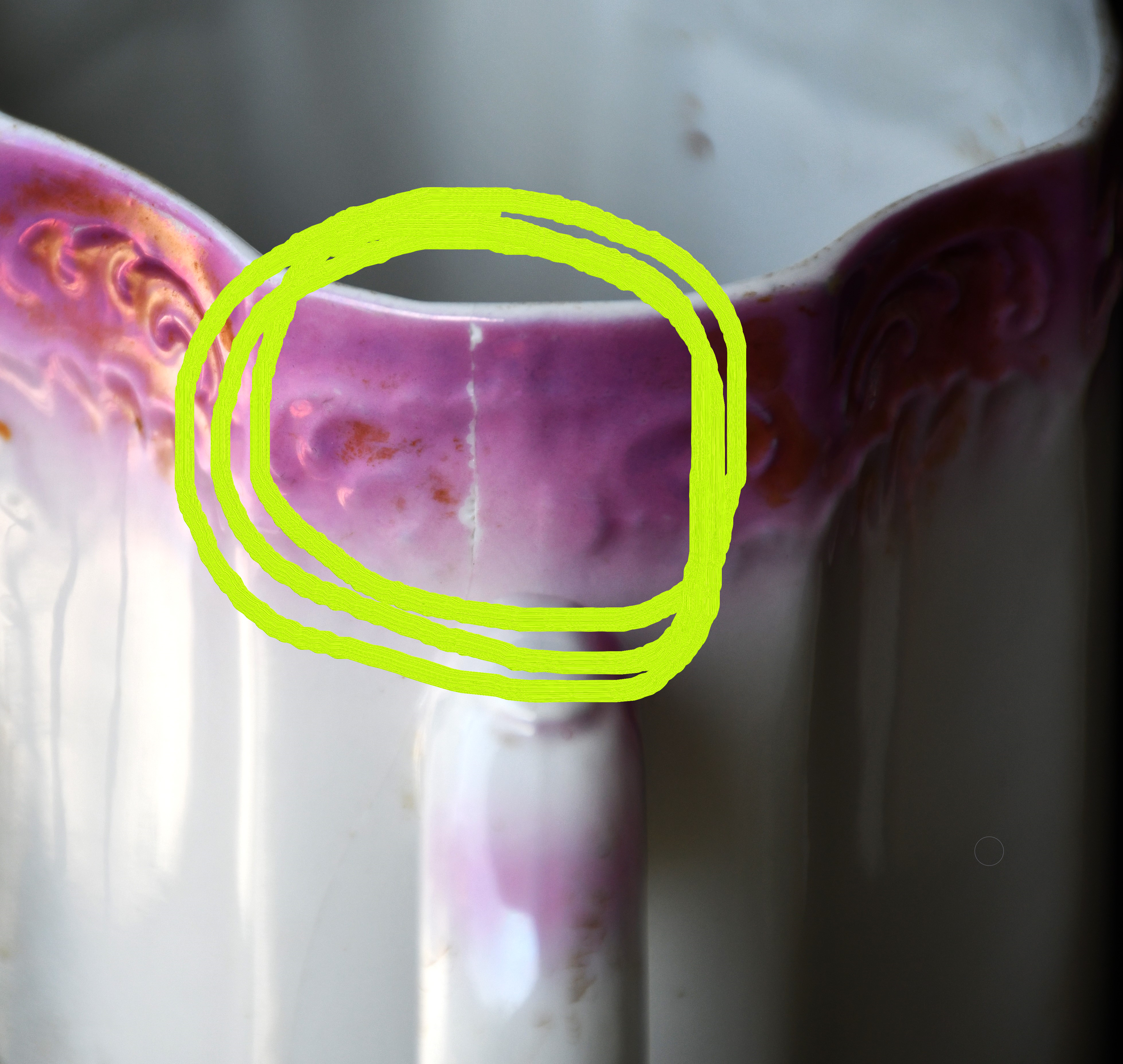 В отлична форма, с оглед на почтената възраст. Лека автентична патина и незначителни следи от отминалото време. Няма чипове и счупени елементи. Тънка фисура забелязана над дръжката – маркирана. Трудно забележима, не влияе върху цялостната импресия на предмета.