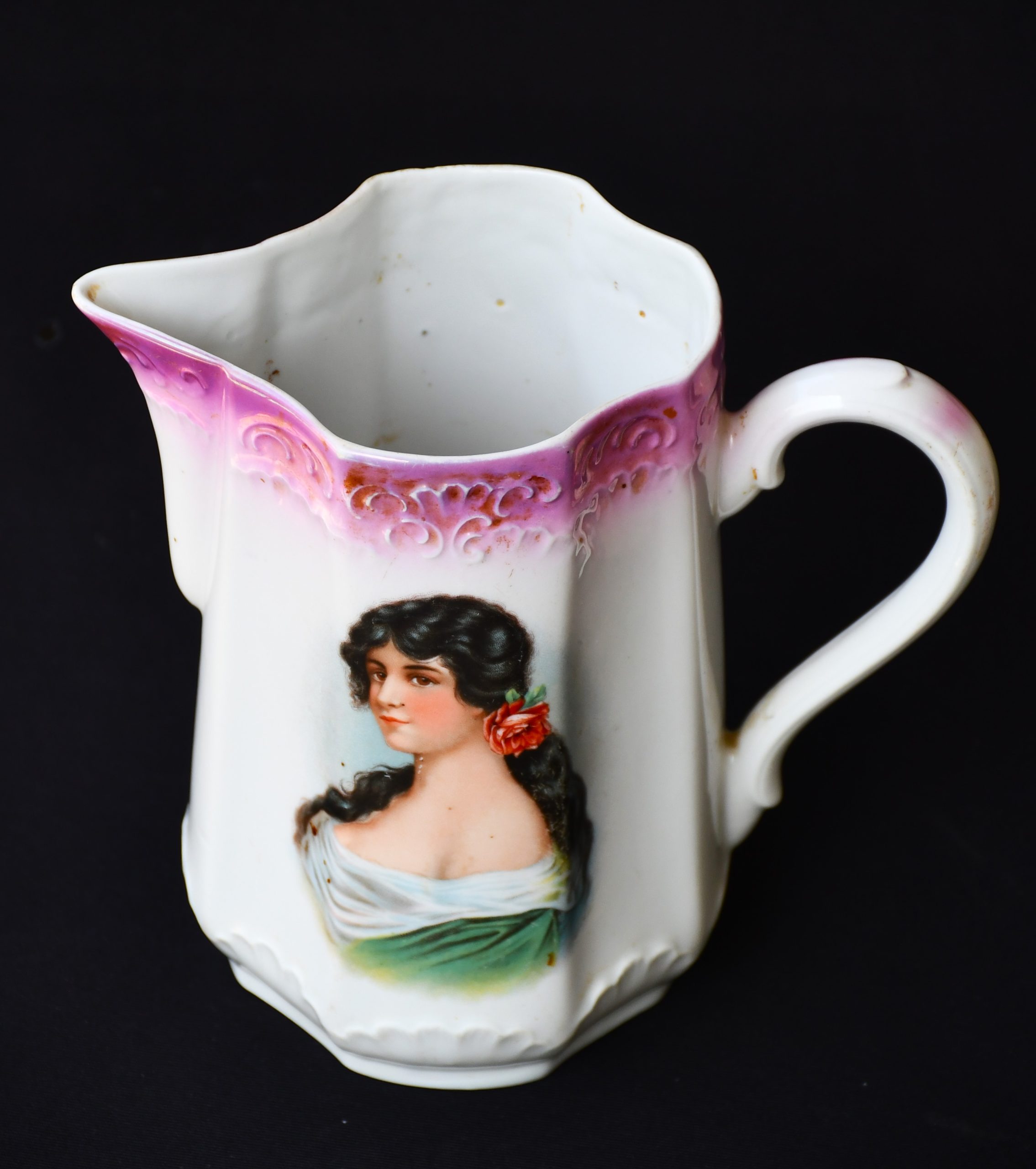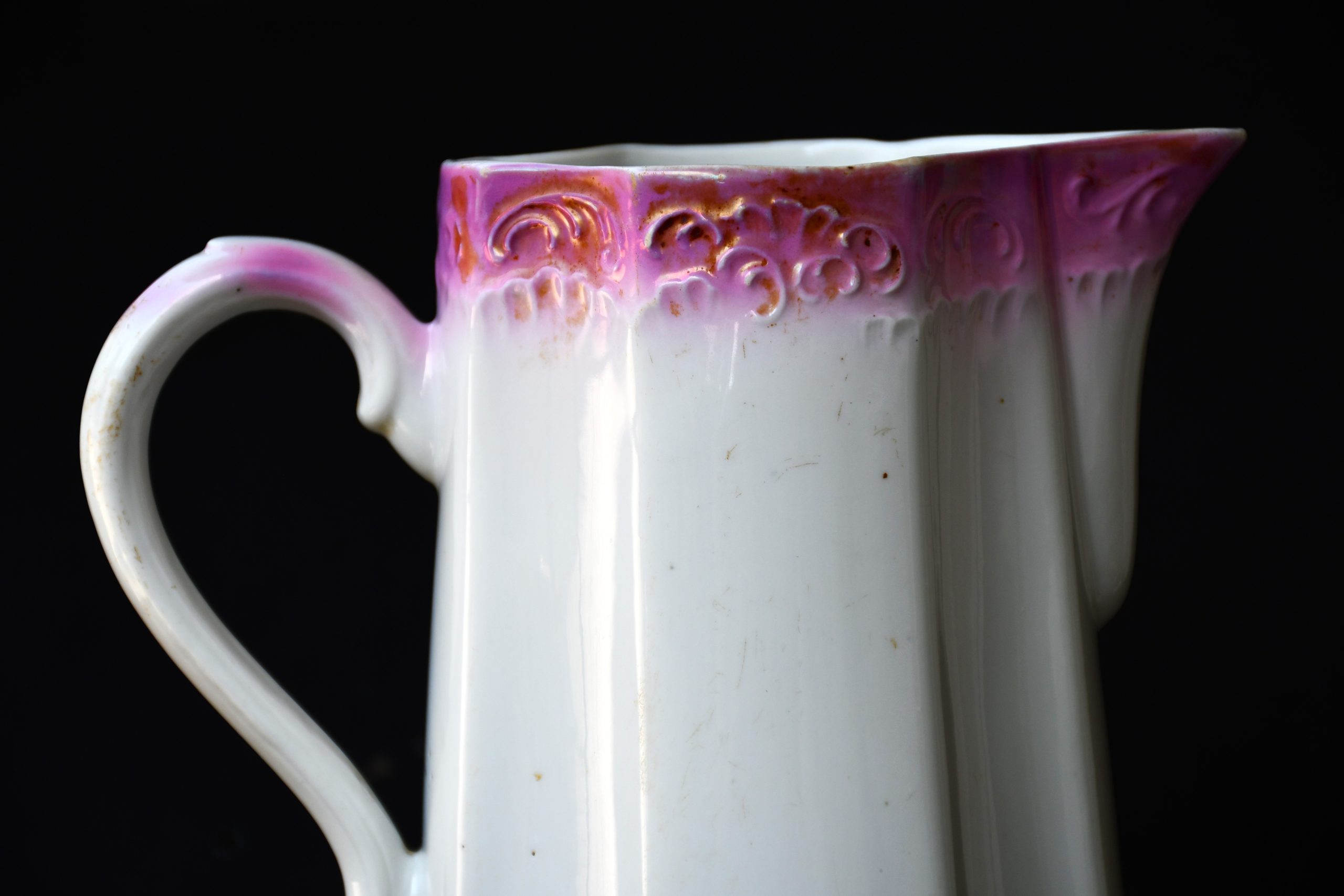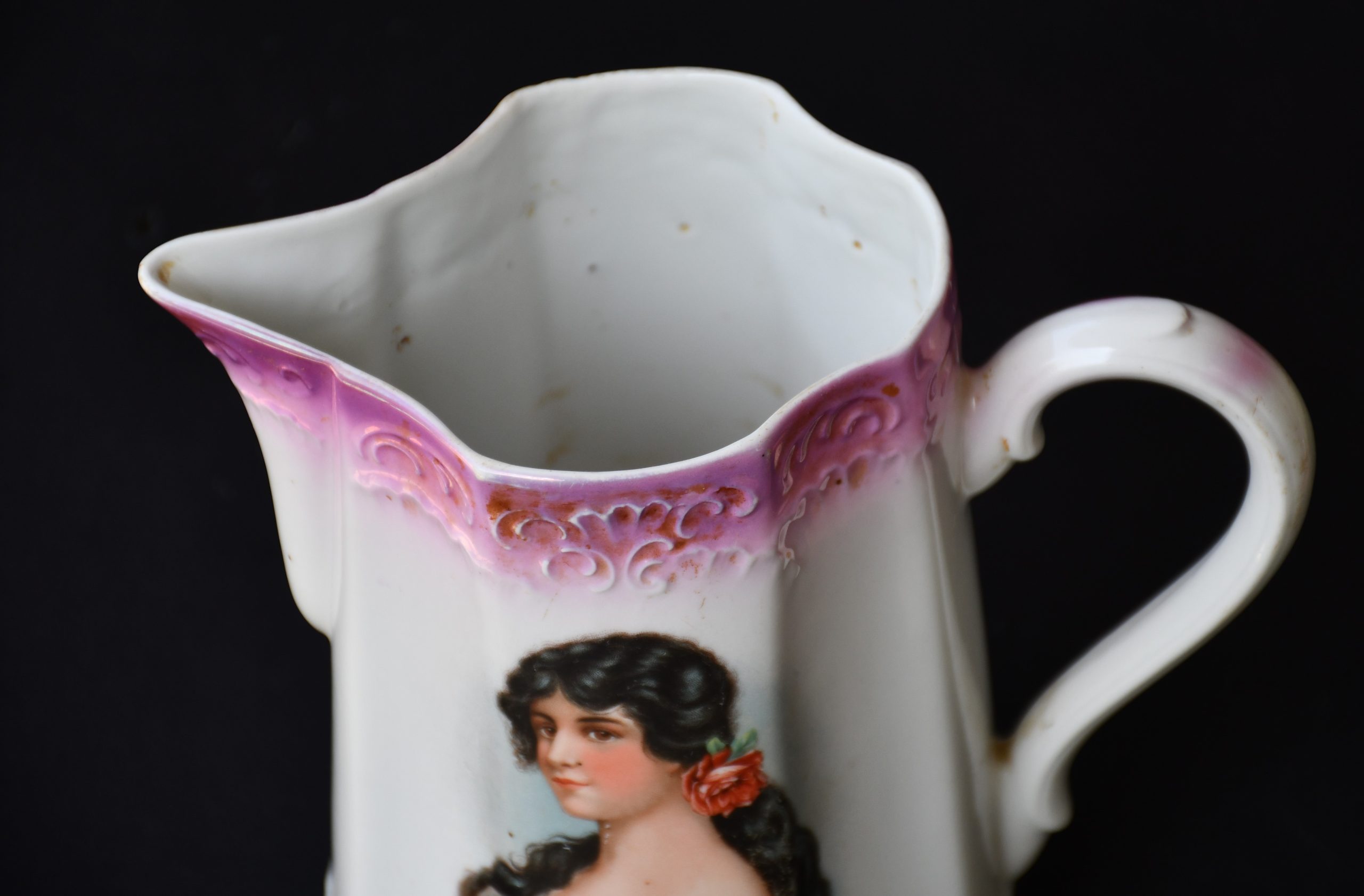 Оригинална антична кана, изключително декоративна, датирана от периода Belle Époque. Порцелан. Не е маркирана. Предполагаемо – Франция.