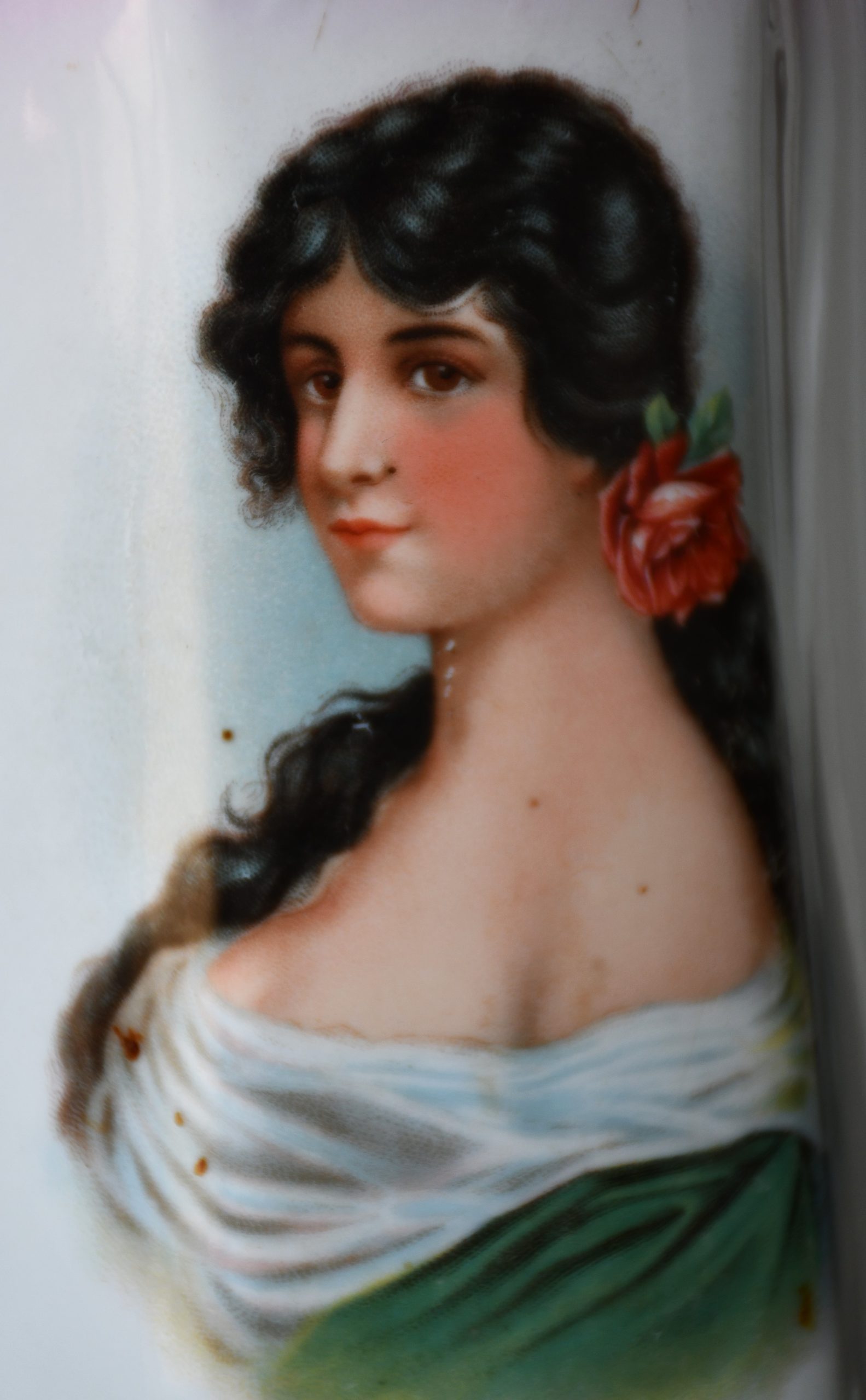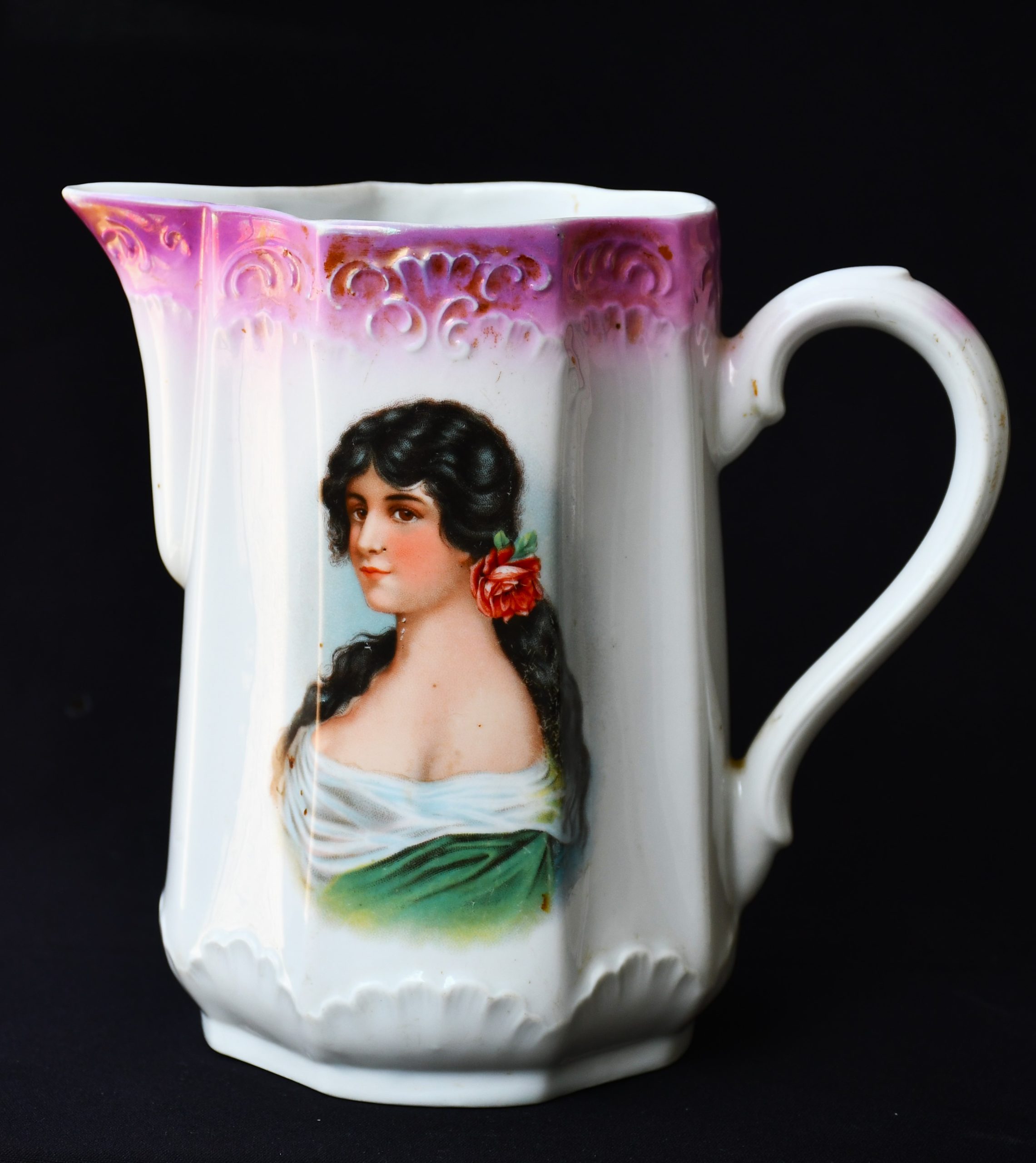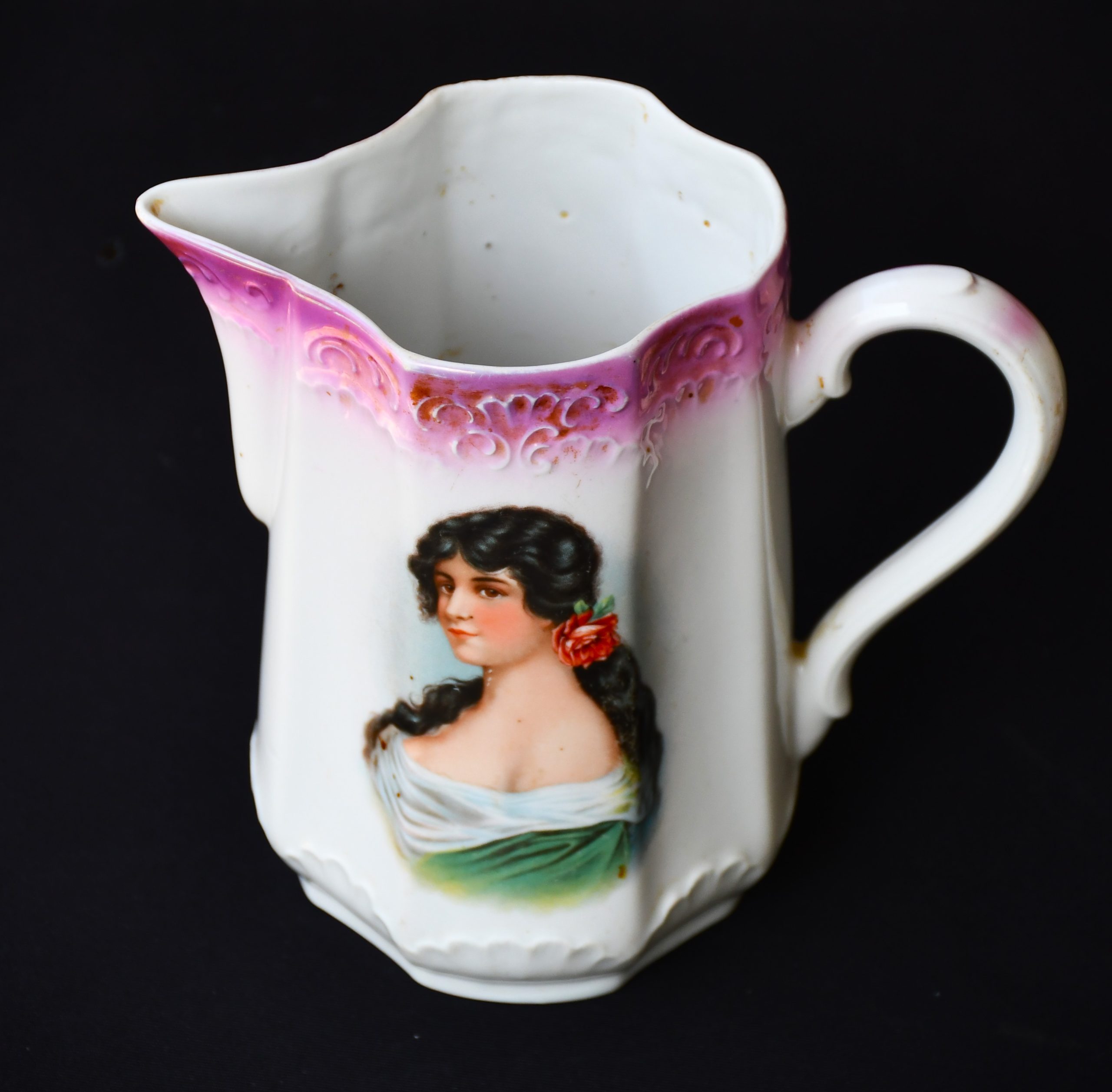 Оригинална антична кана, изключително декоративна, датирана от периода Belle Époque. Порцелан. Не е маркирана. Предполагаемо – Франция.
