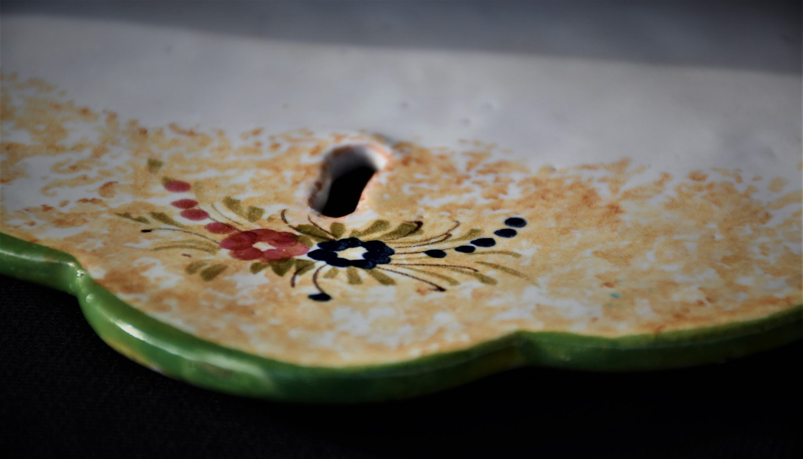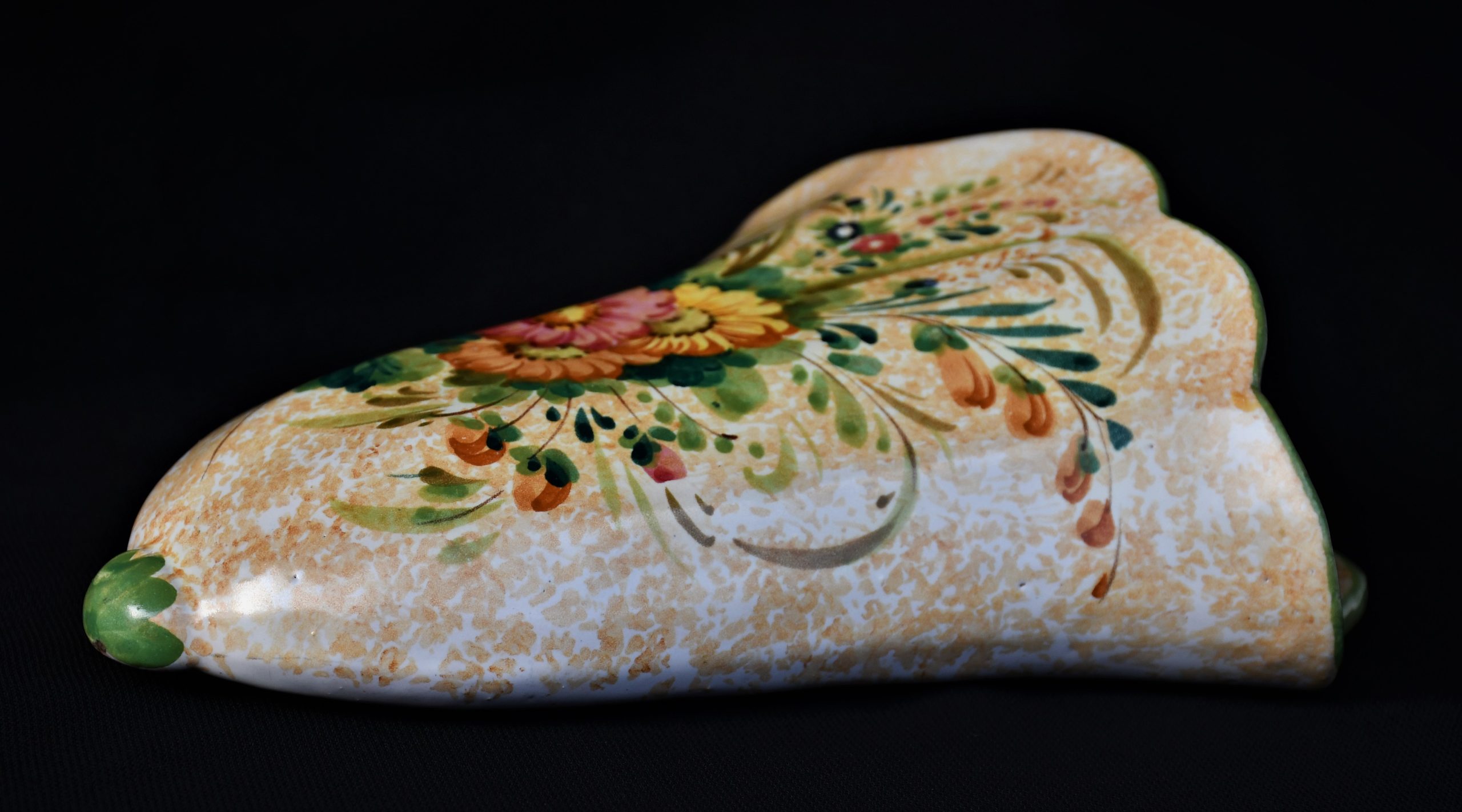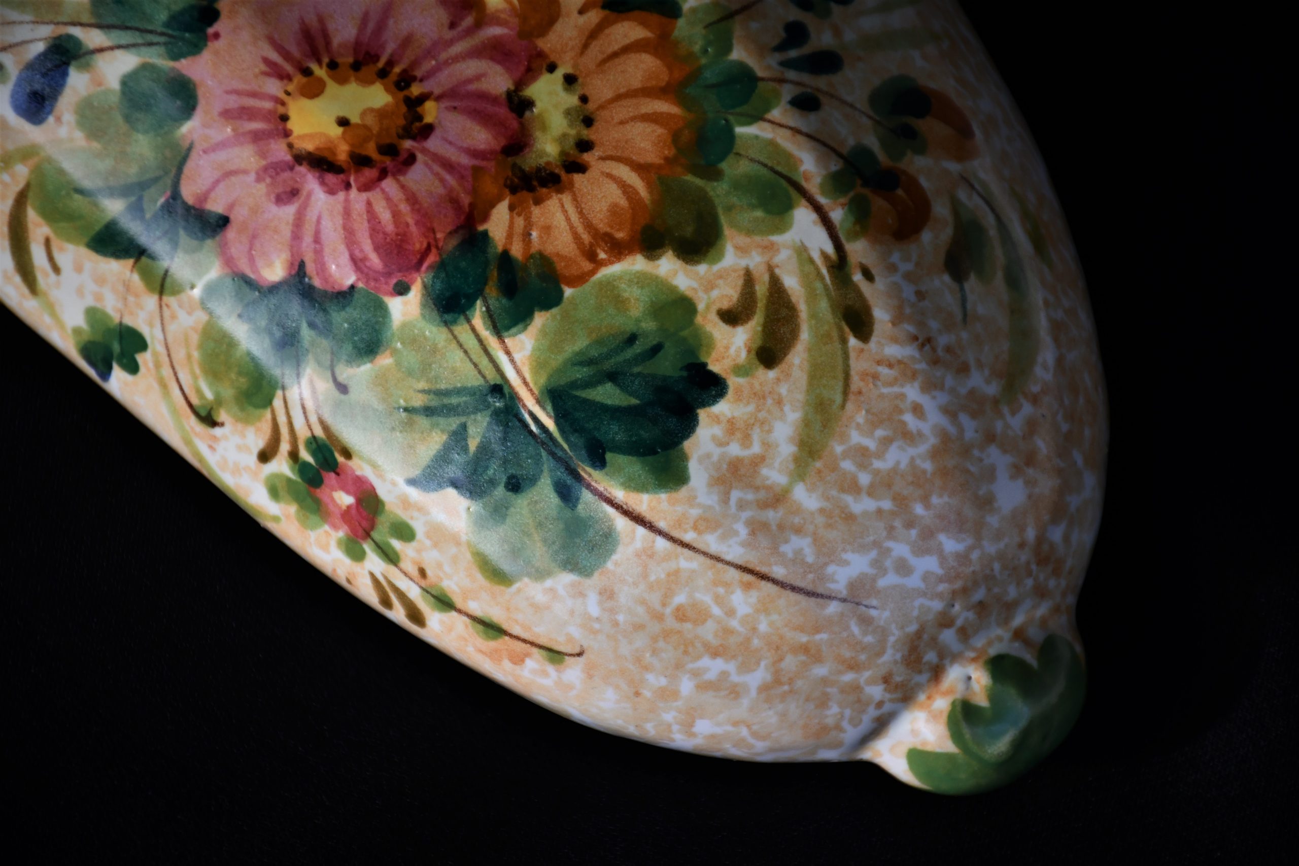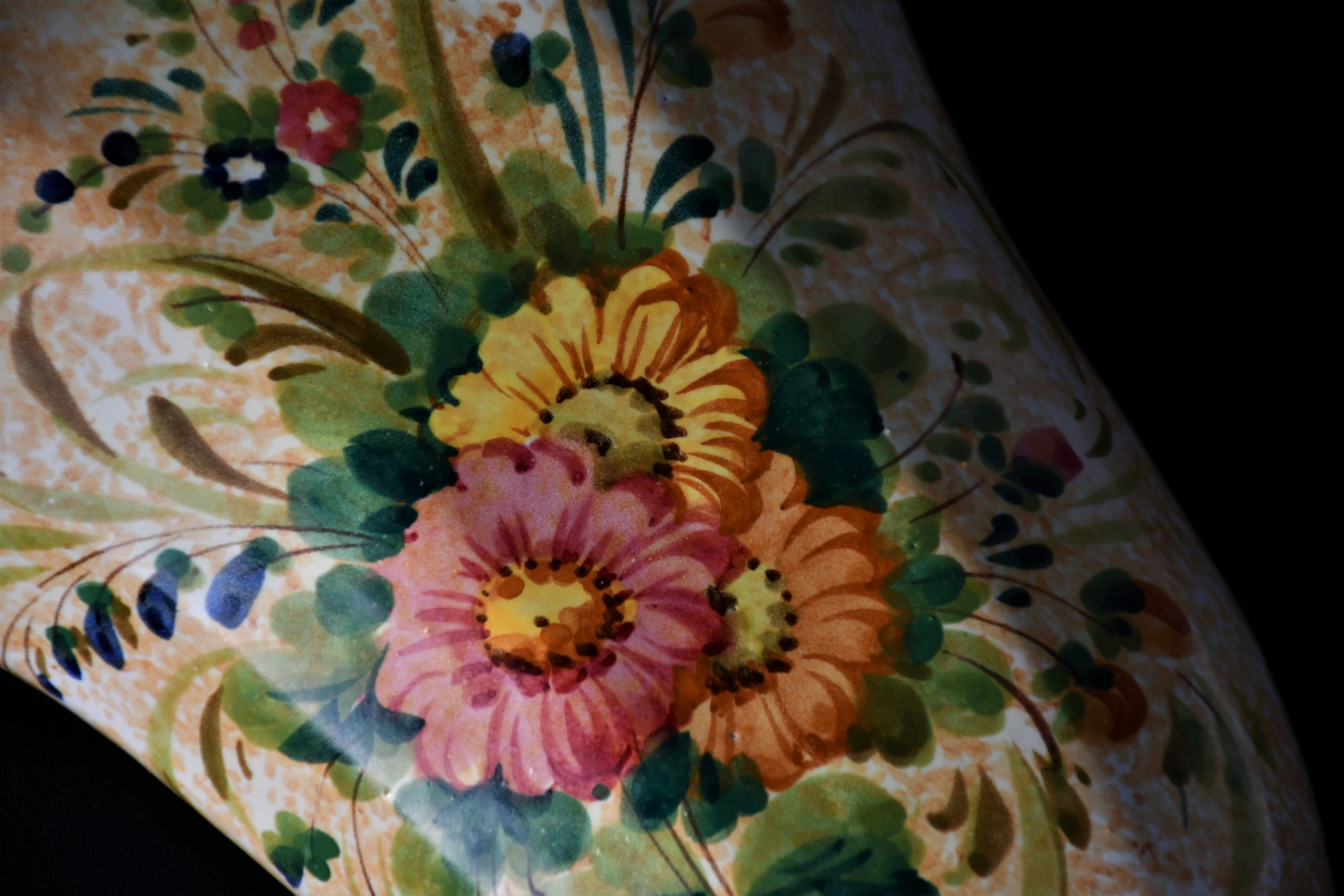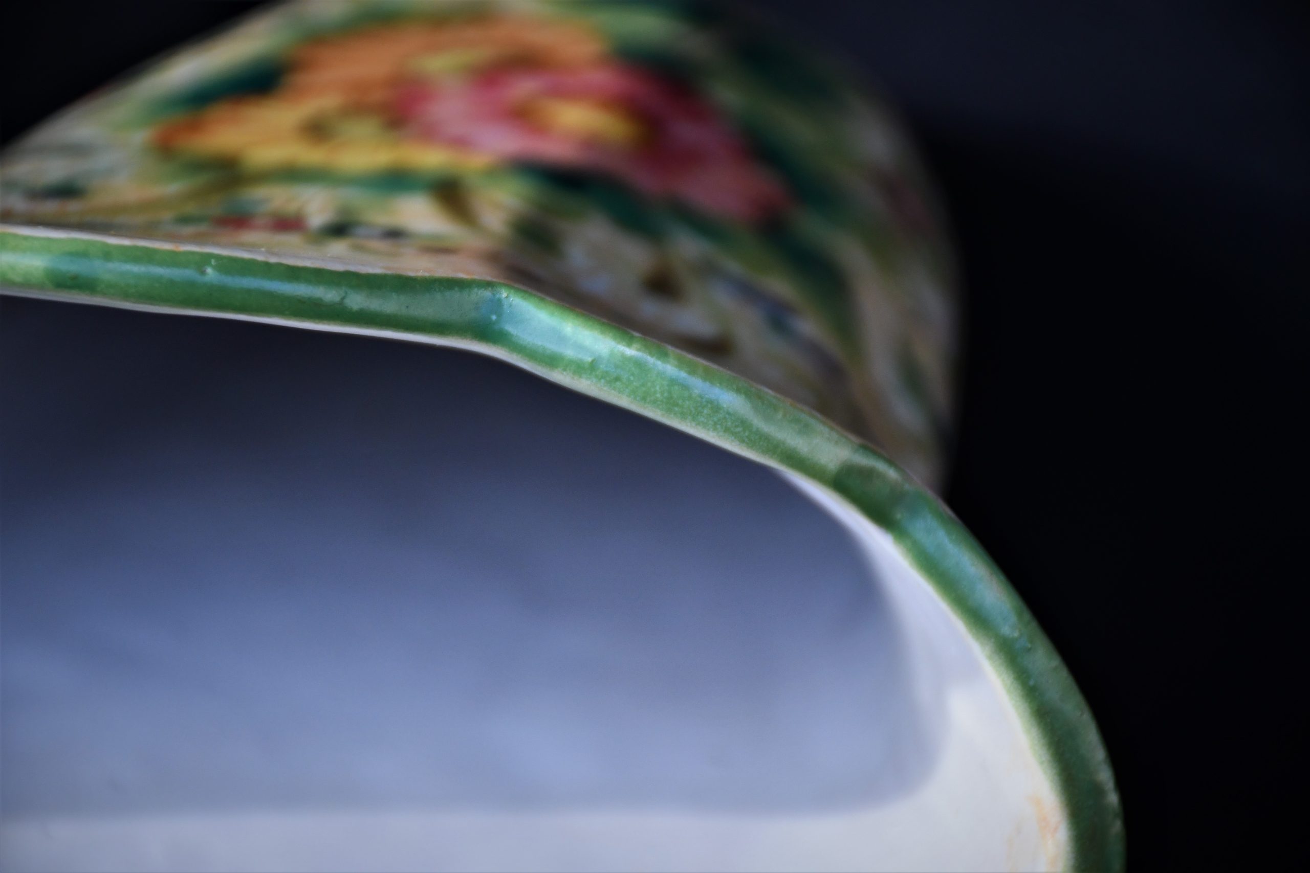 Впечатляващ предмет, богато декориран и в отлична форма. Флорални мотиви на лицевата страна. Изцяло ръчно рисуван. Много рядка находка.