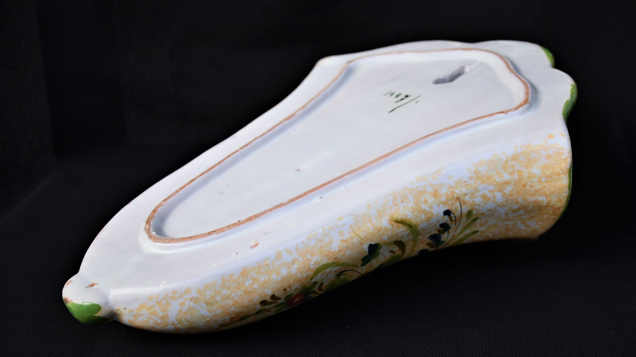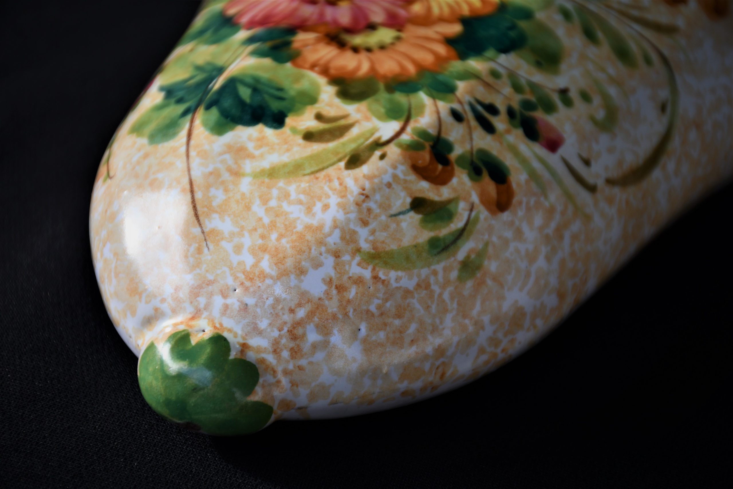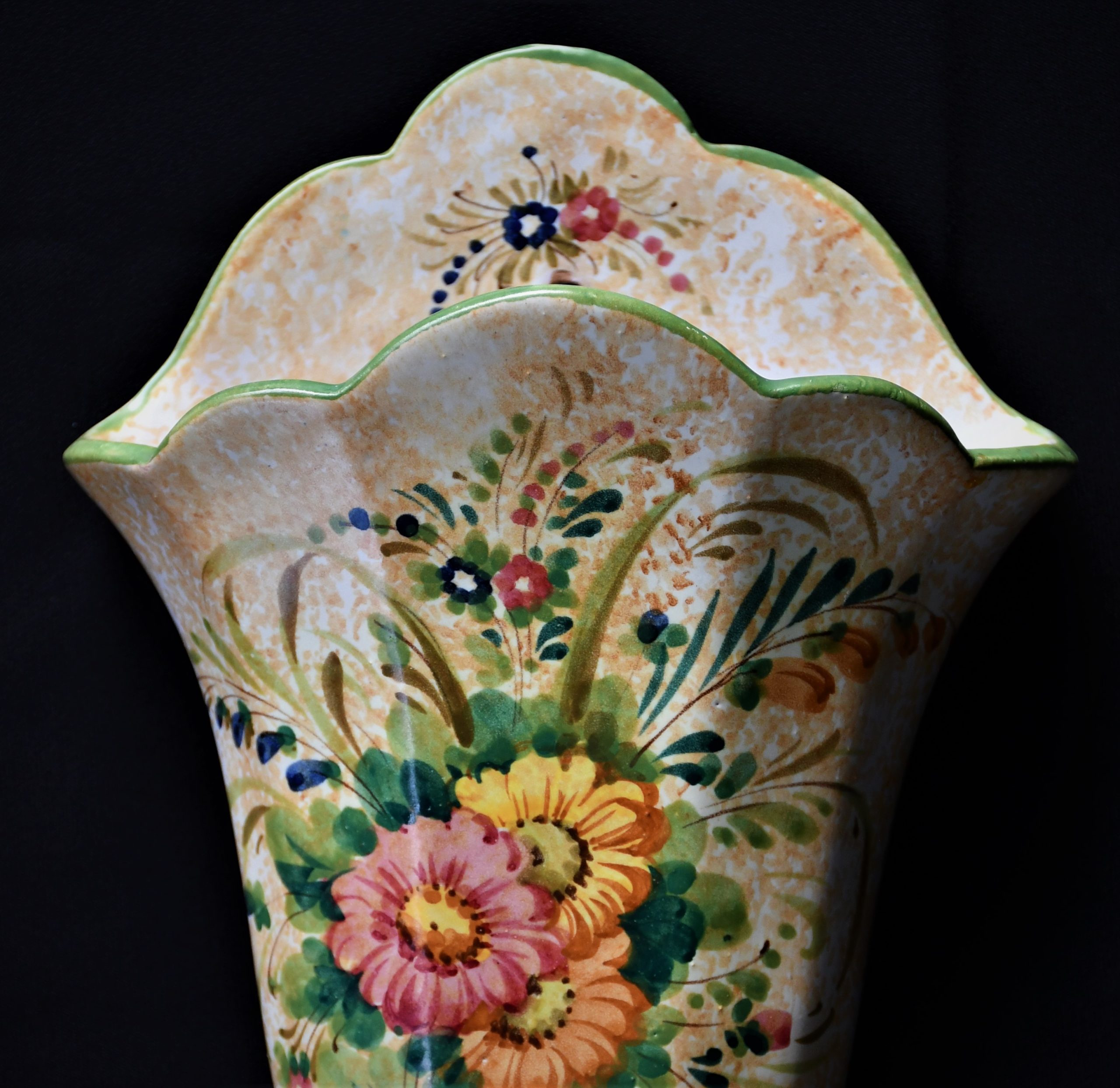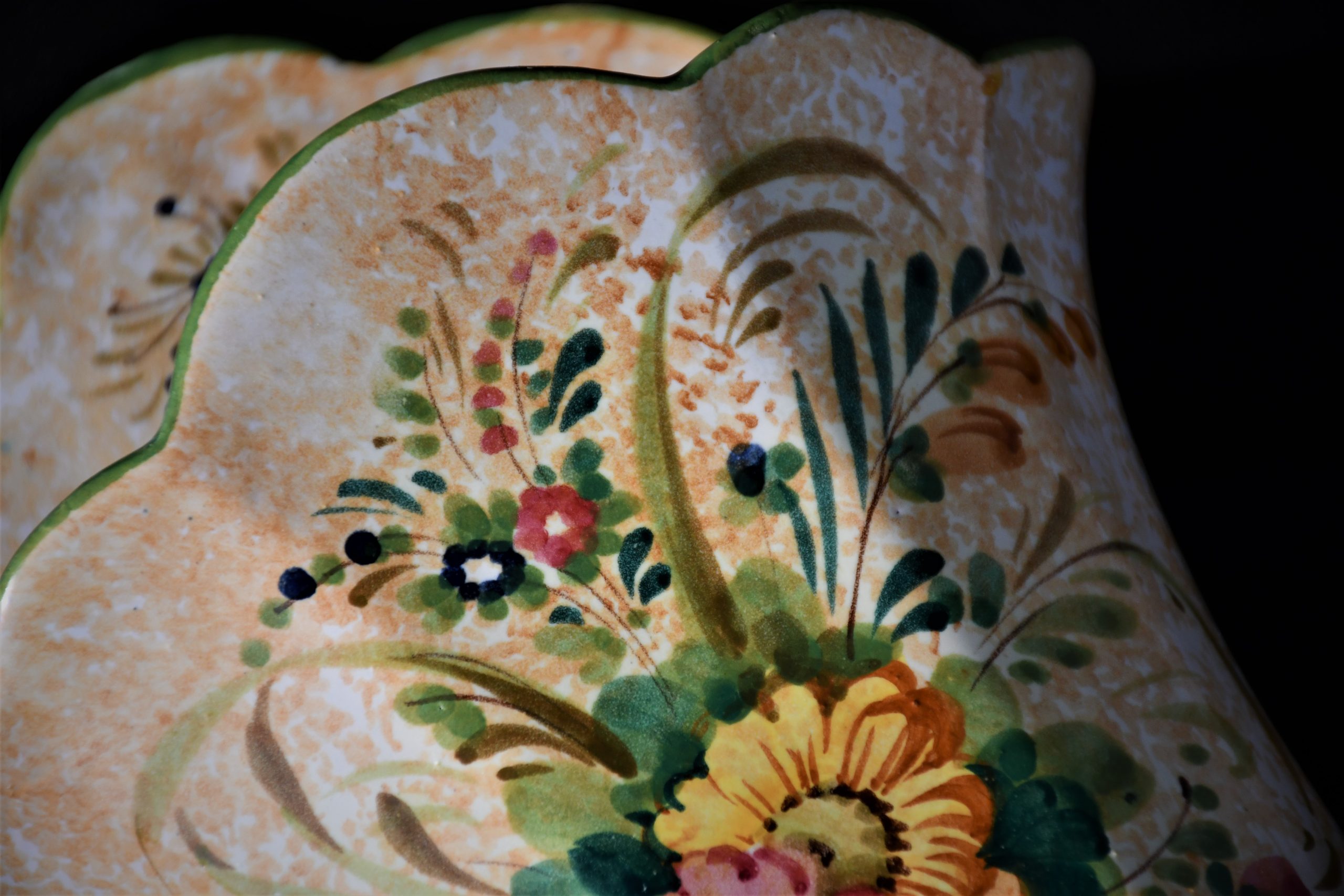 Превъзходна и изключително декоративна стенна ваза. Глазирана керамика в традиционния тоскански стил. Богато украсена с изображения на цветя. Рядка находка.
