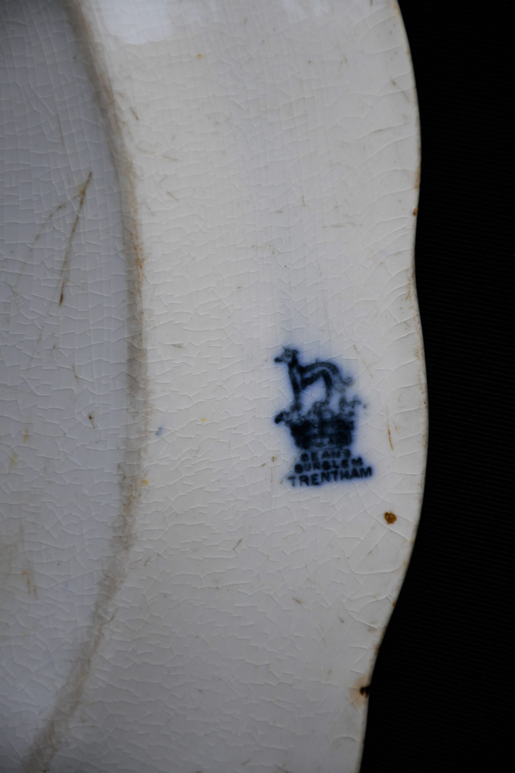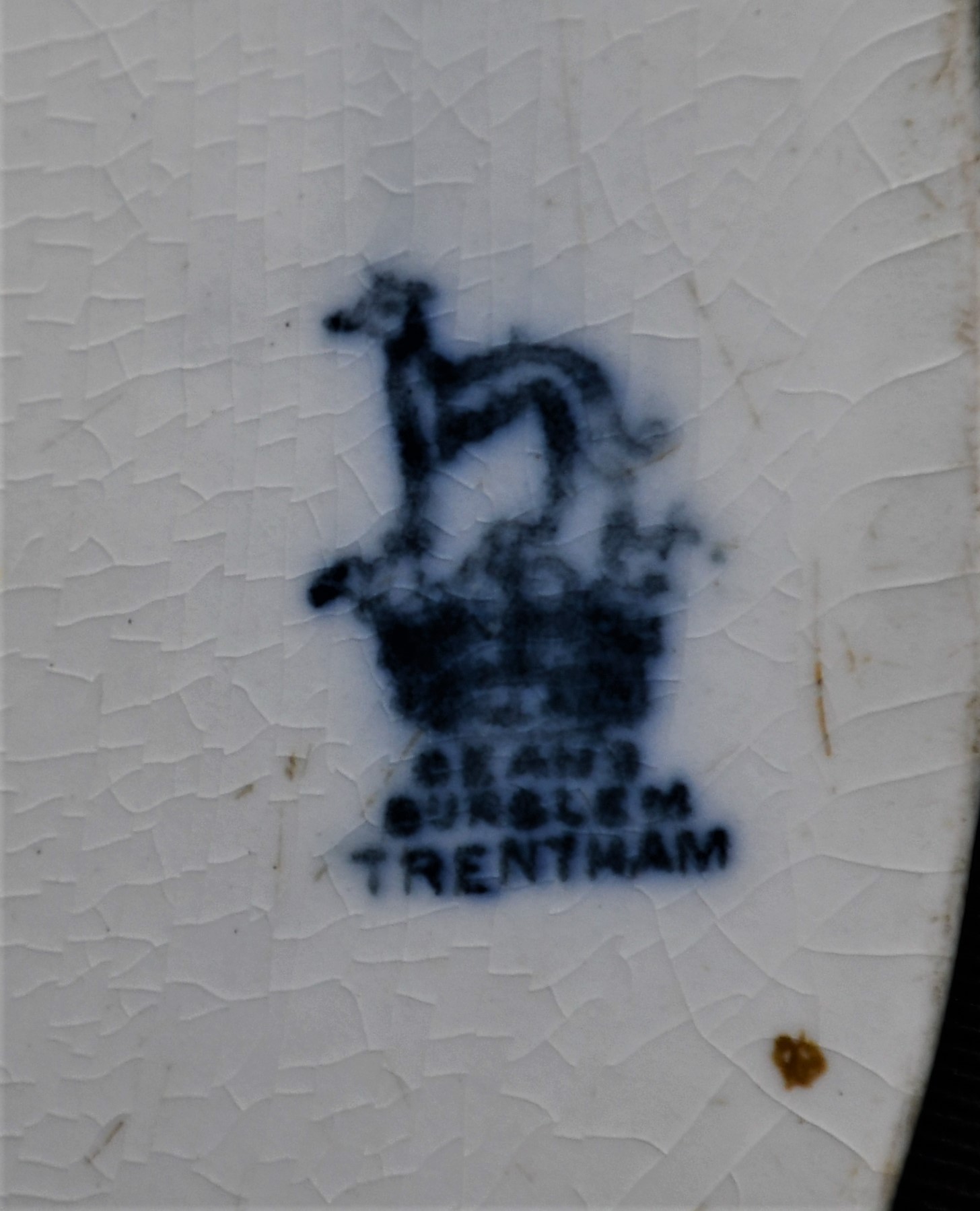 Антична колекционна чиния, Англия. Средата на 19-и век. Изработена от Trentham Burslem. Много рядко лого с хрътка.