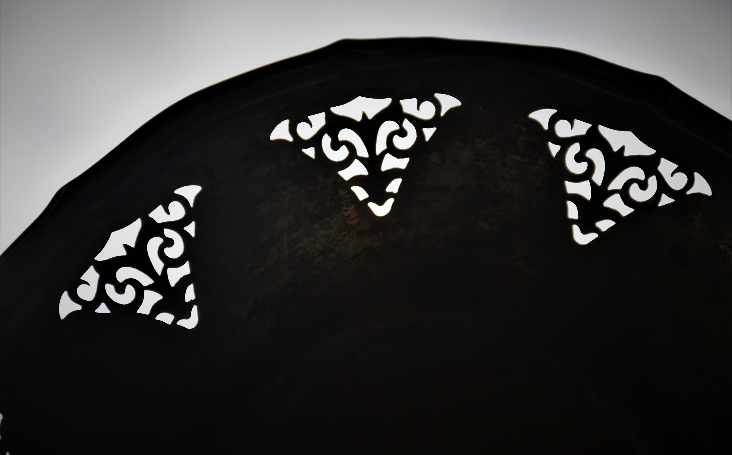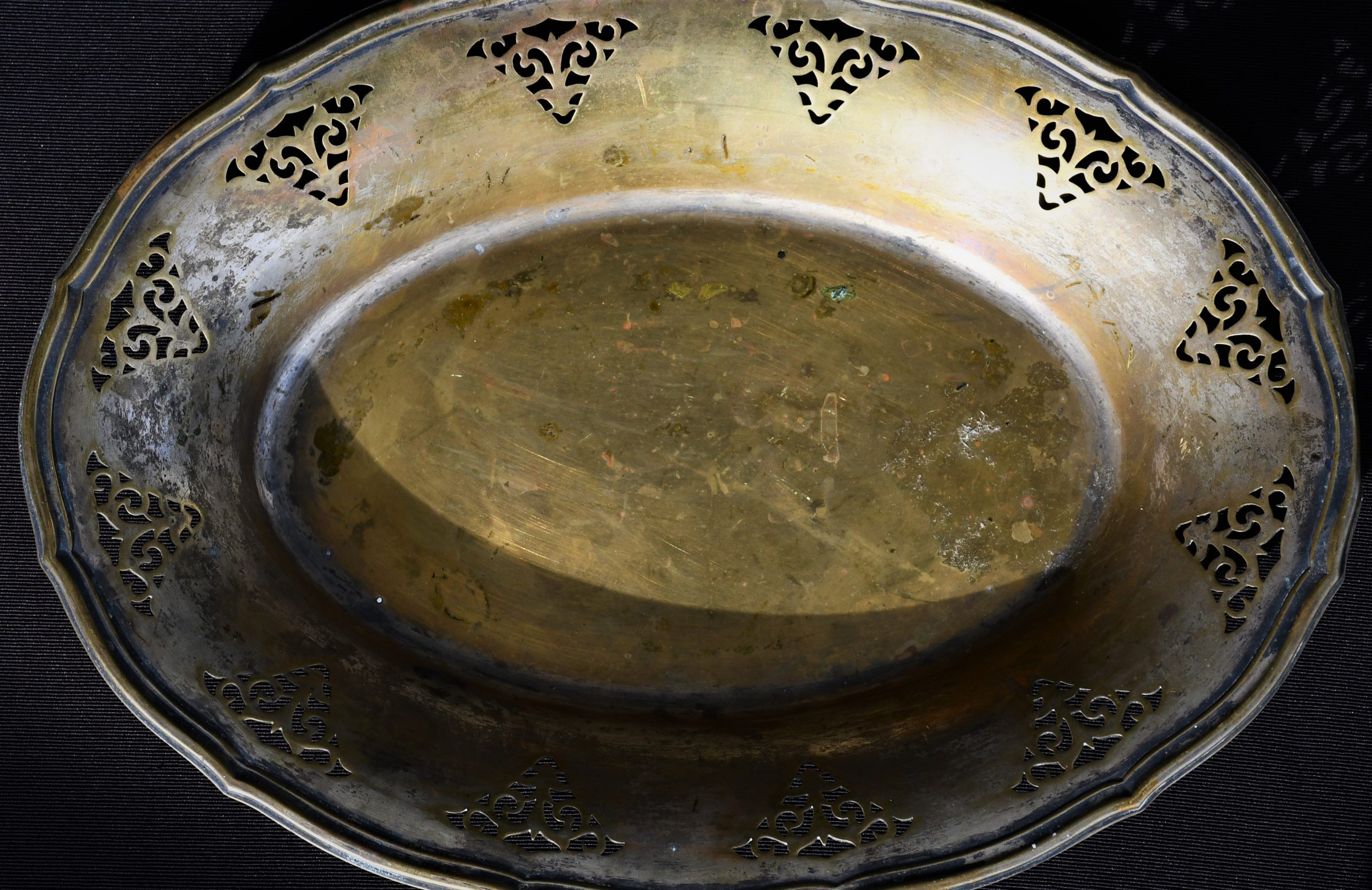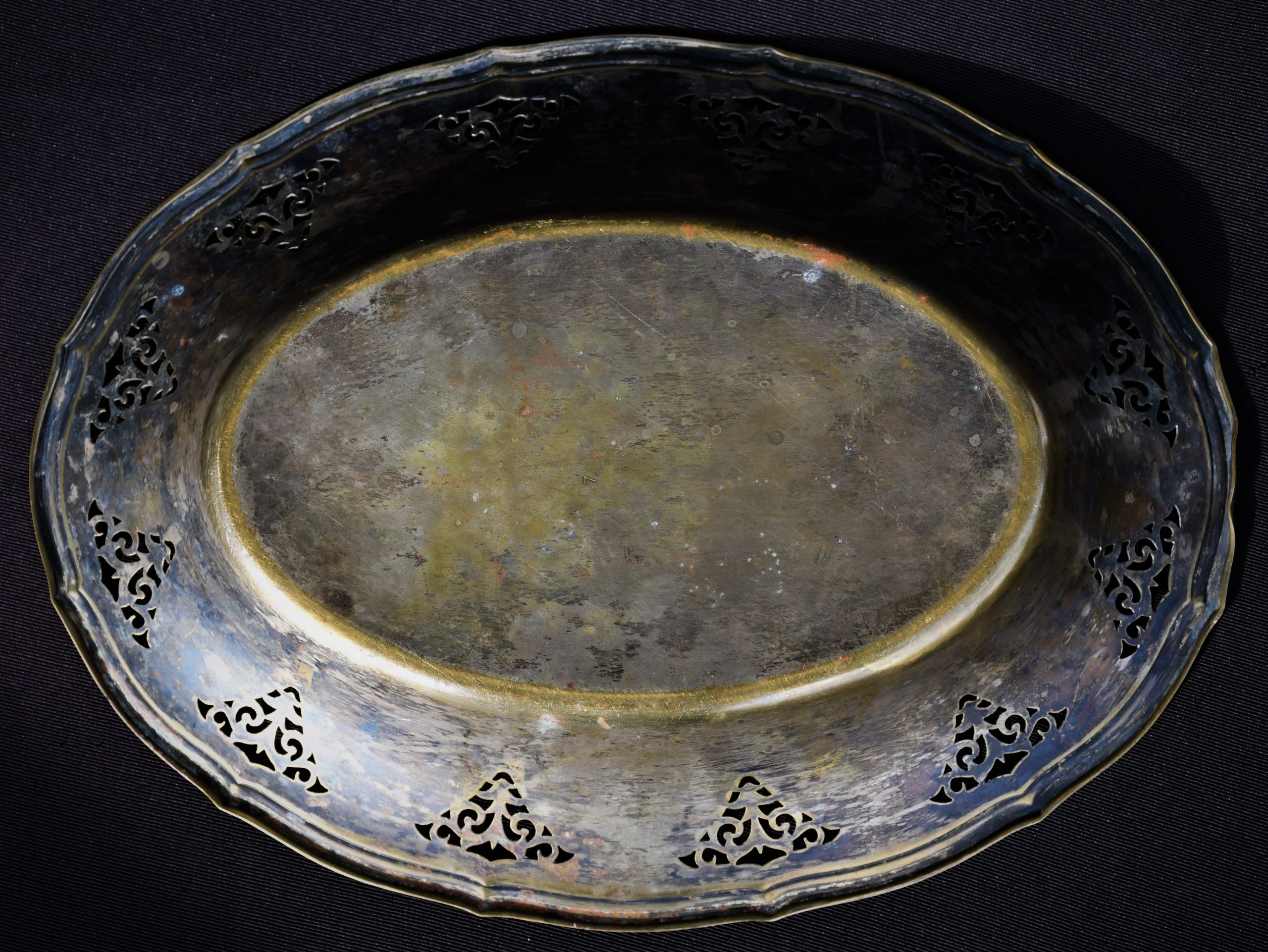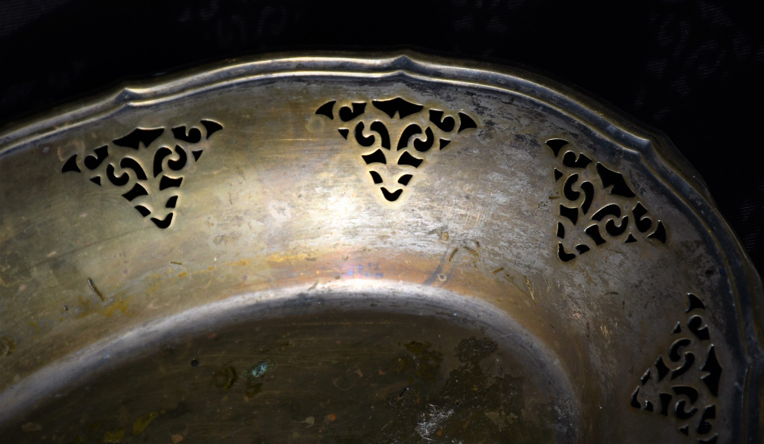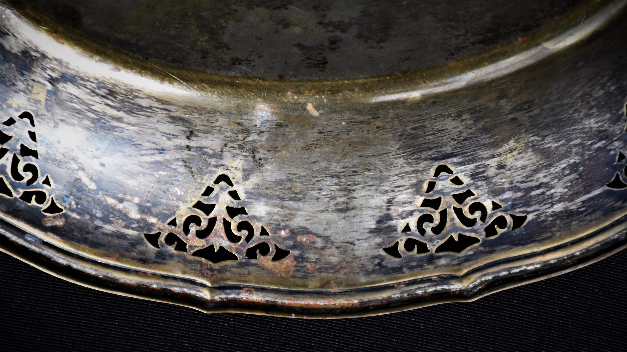Стилна колекционна чиния, Швеция. Началото на 20-и век. Изработена от щанцован месинг с декоративни прорези. Следи от посребряване.