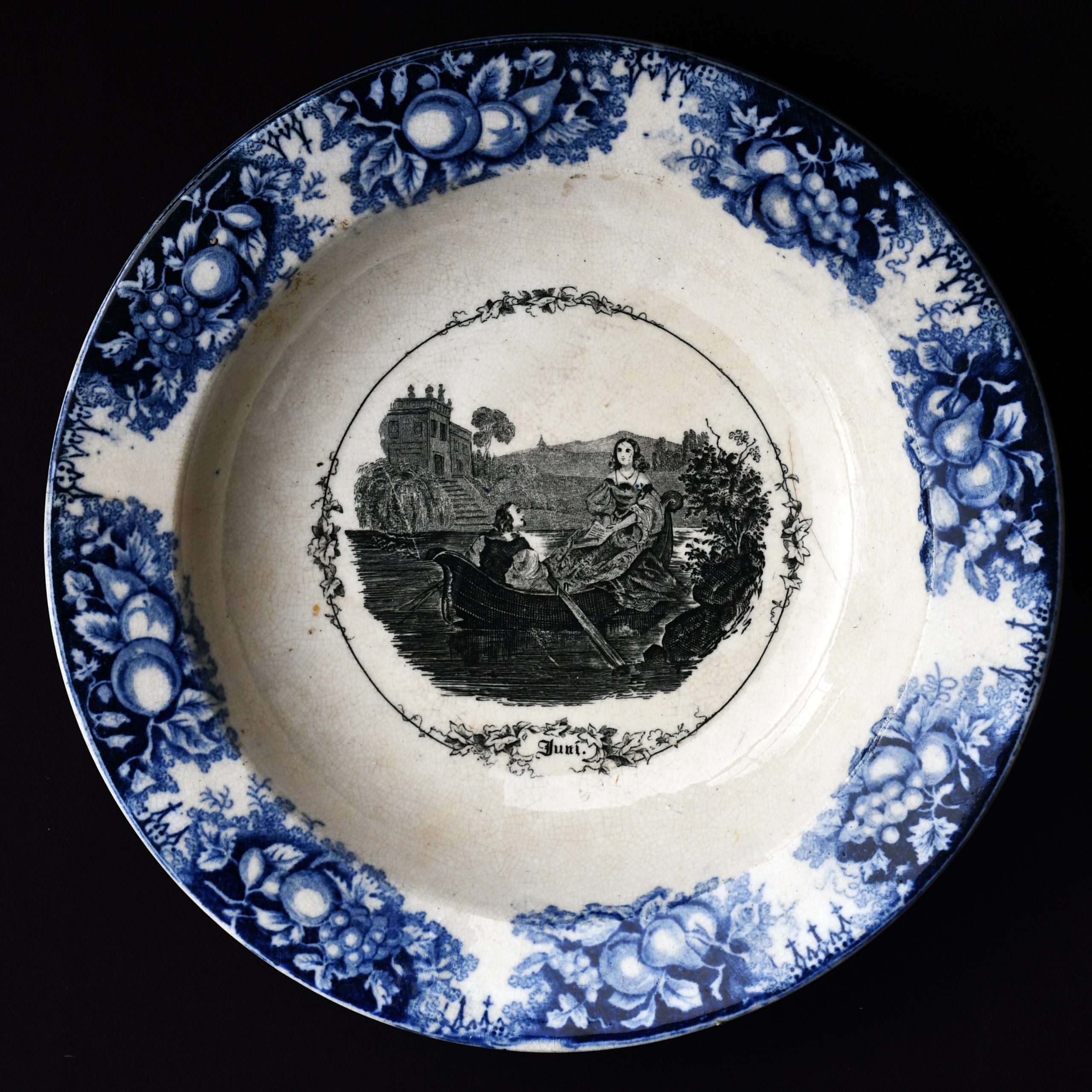 Антична чиния – празна, но пълна с романтика… Трансферен печат в два цвята – черно и синьо. Датировка ок. 1840 – 1869 г.