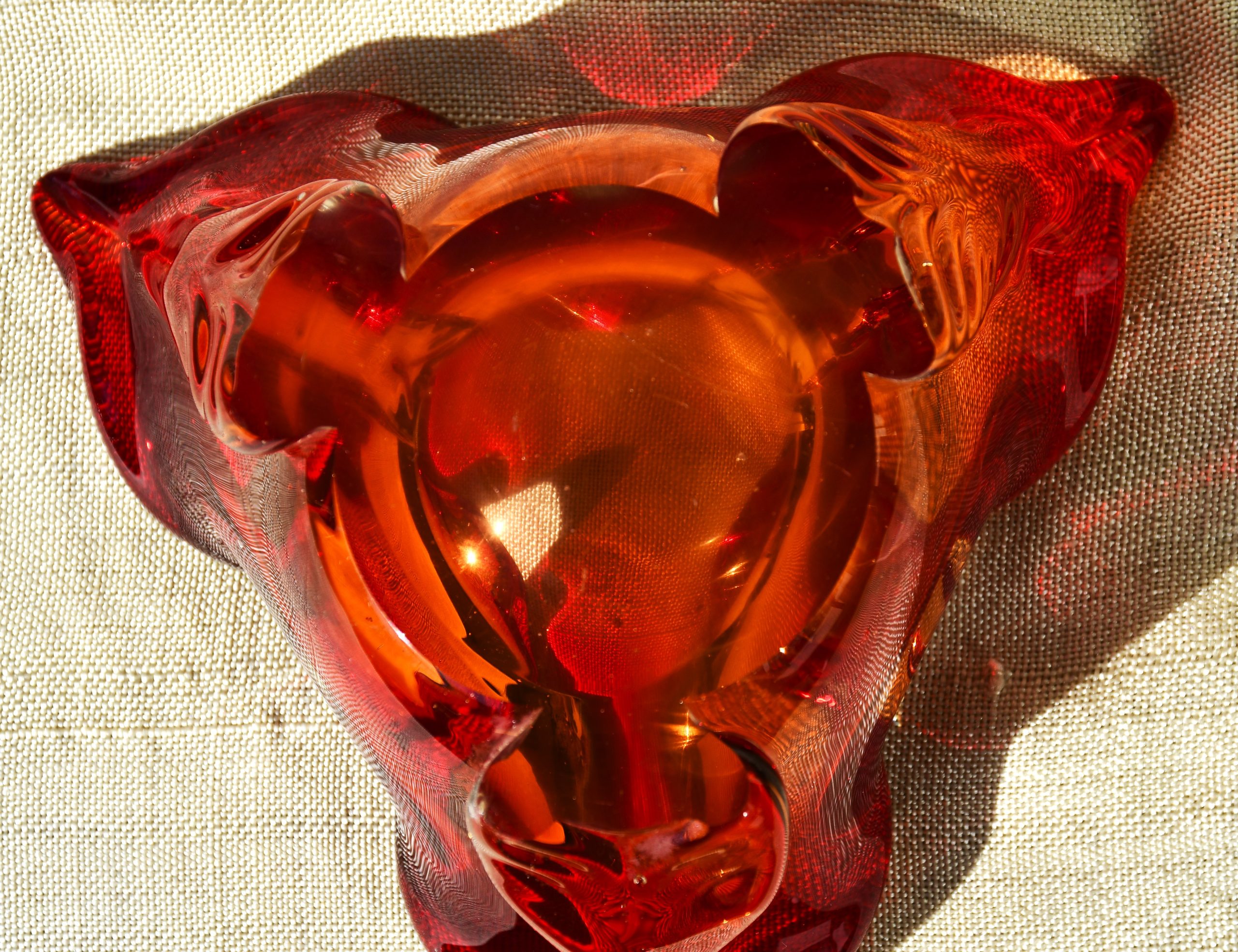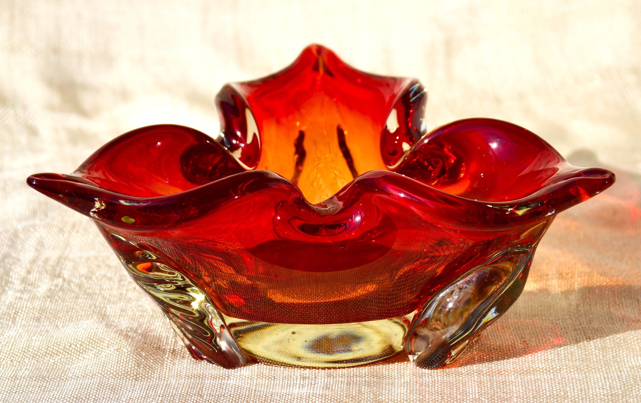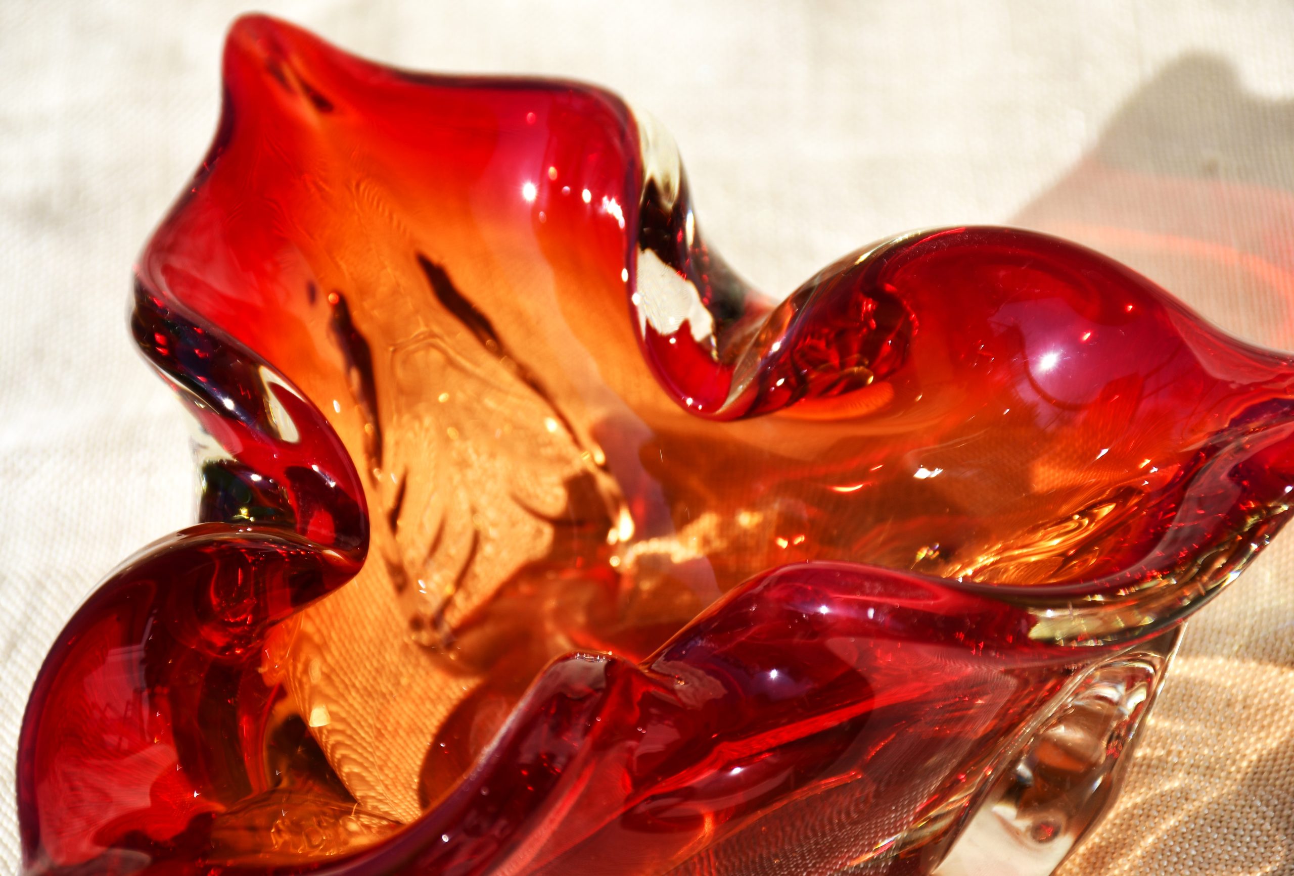 Много красив стъклен пепелник от средата на 20 в., художествено стъкло. Предполагаемо – Мурано, Италия.