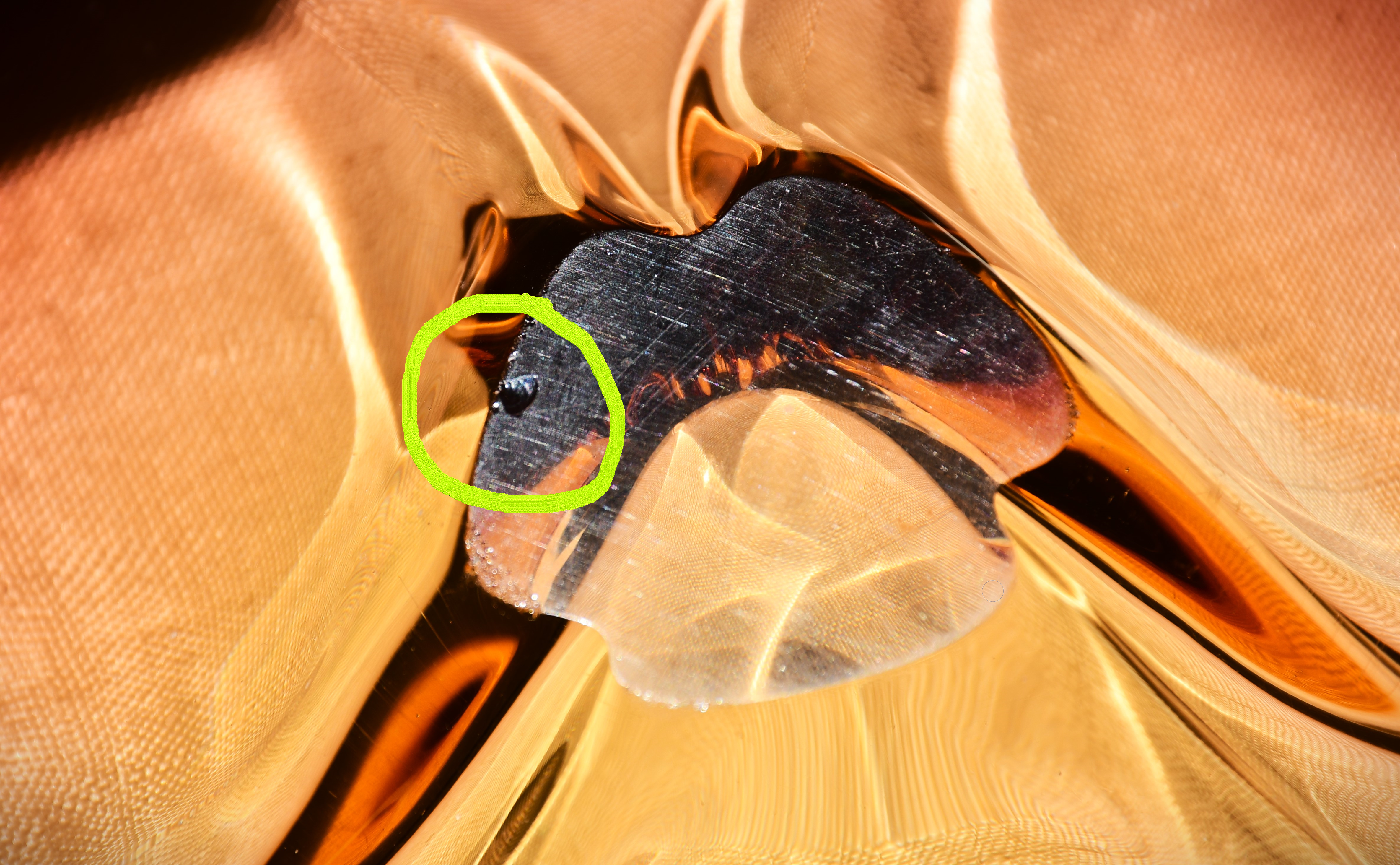 В чудесно общо състояние, съвсем леки следи от изминалото време – наистина незначителни. Дребна люспа върху ръба на базата, невидима в нормално положение. (Маркирана в името на коректността.) Малки несъвършенства вътре в стъклото, резултат от ръчния метод на изработка.