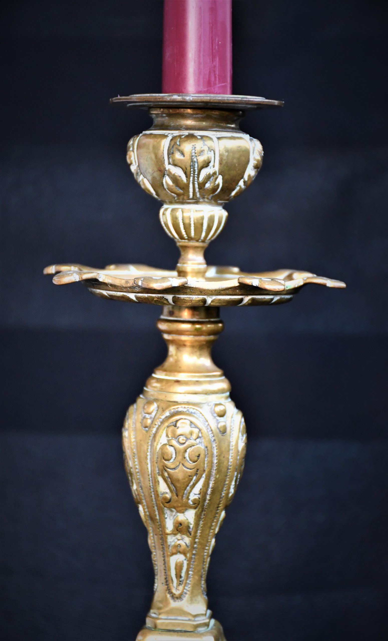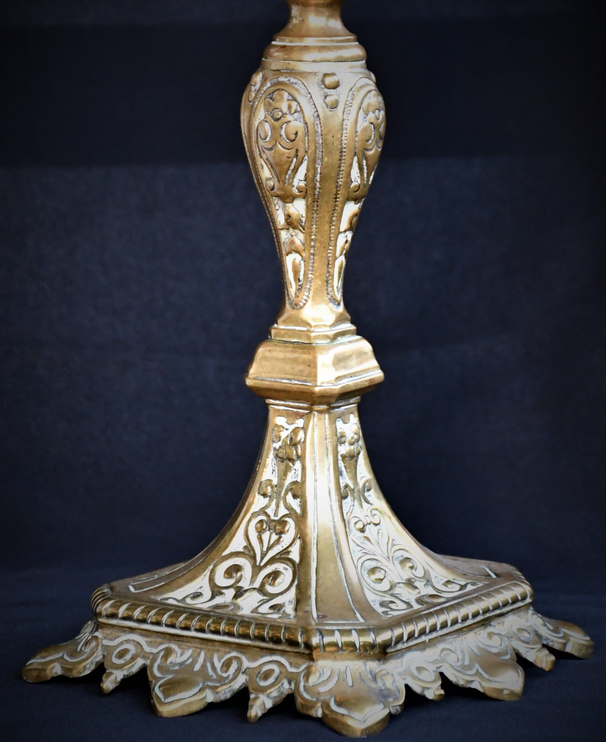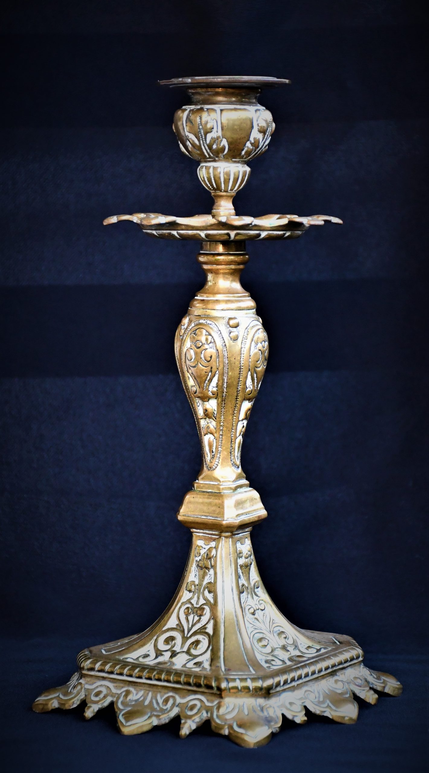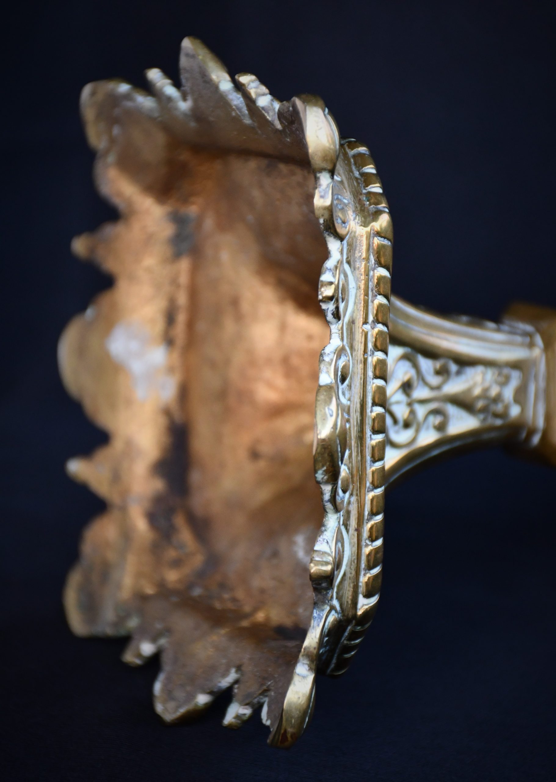 Стар италиански свещник, богато декориран, солиден бронз.