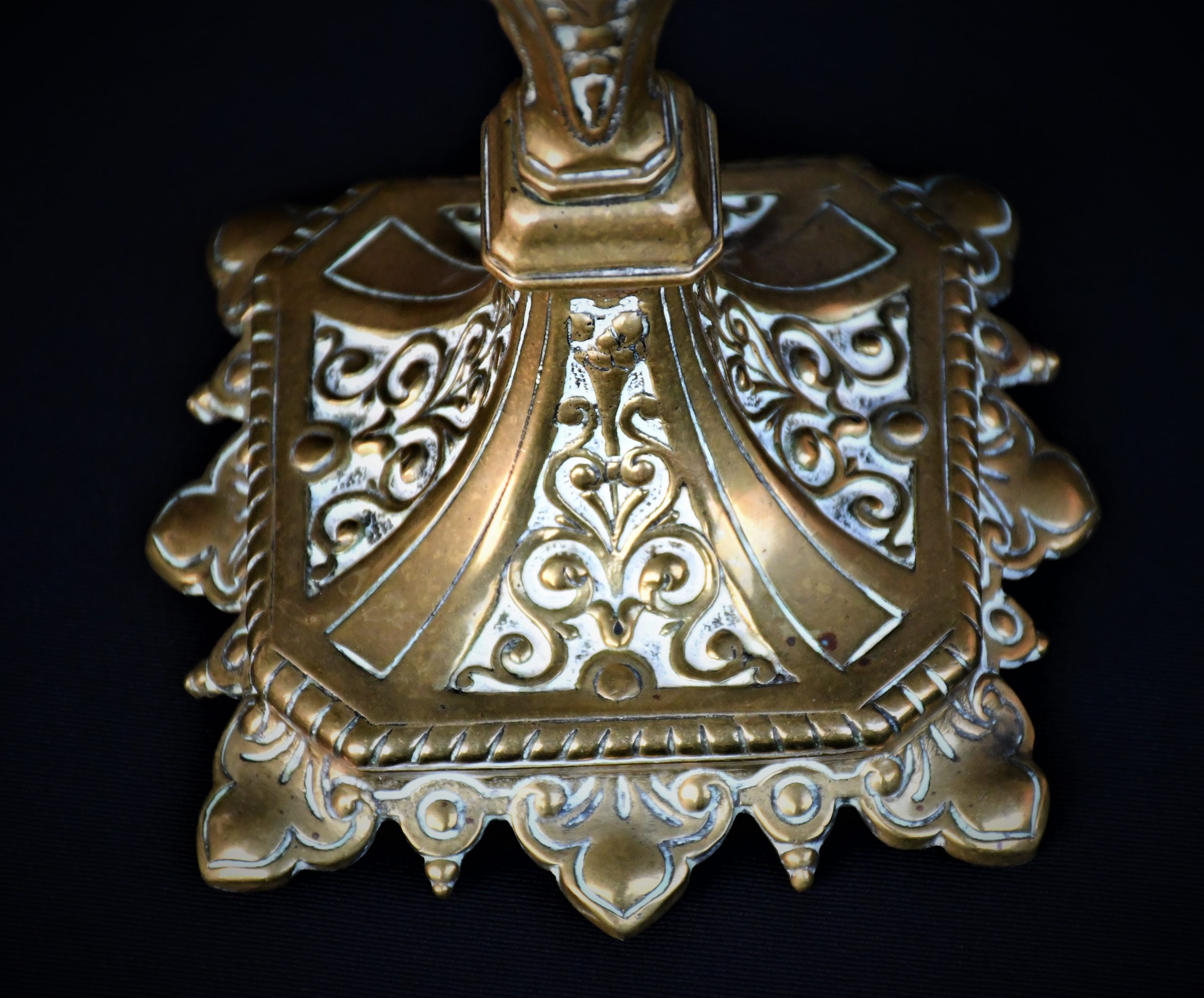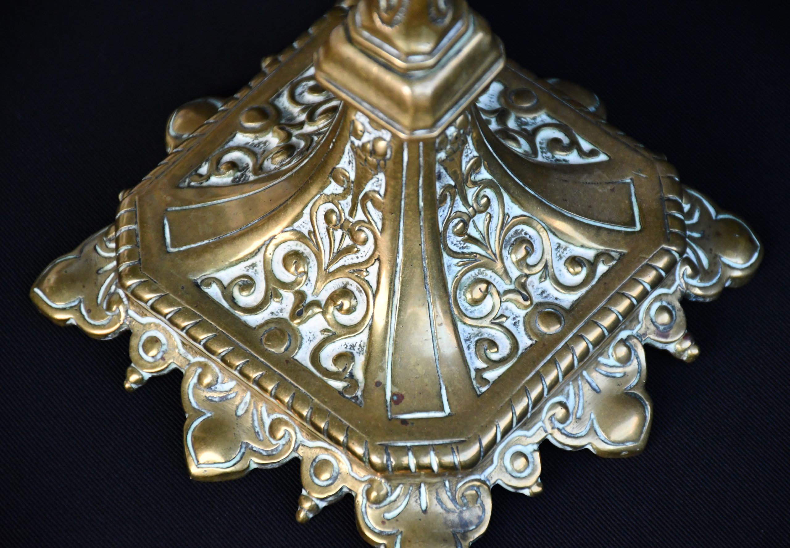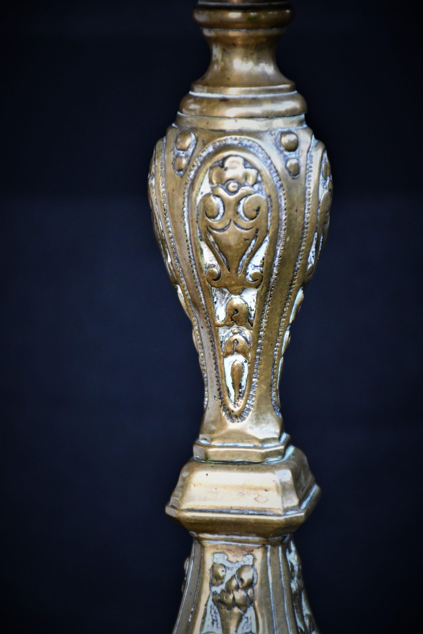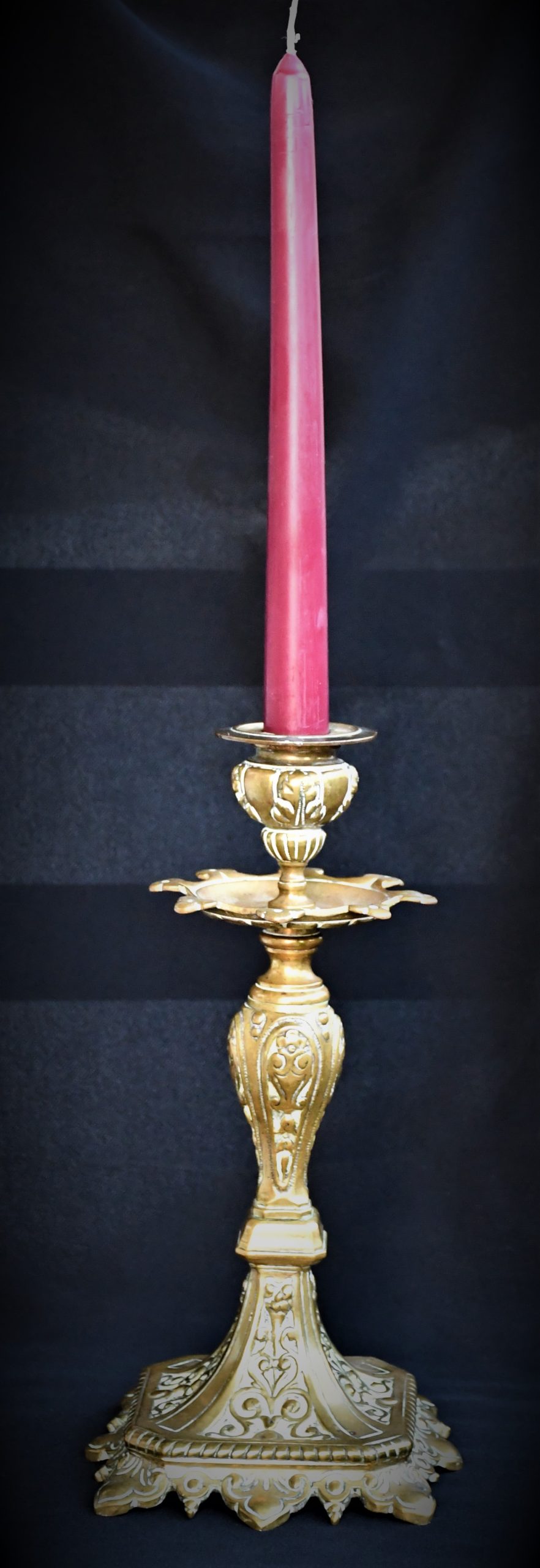 Стар италиански свещник, богато декориран, солиден бронз.