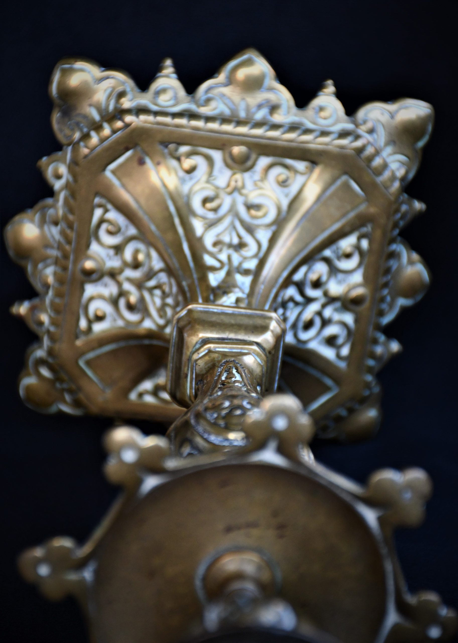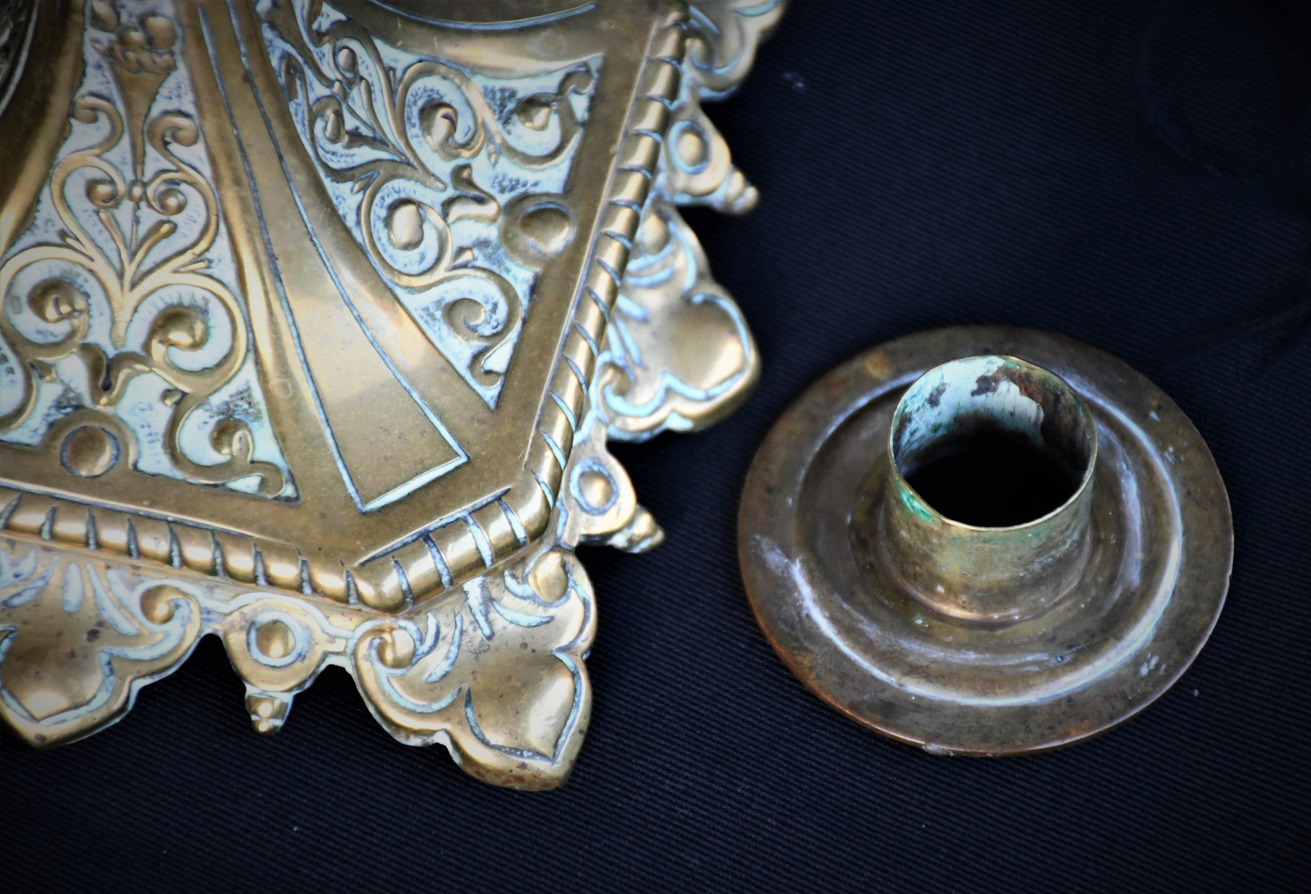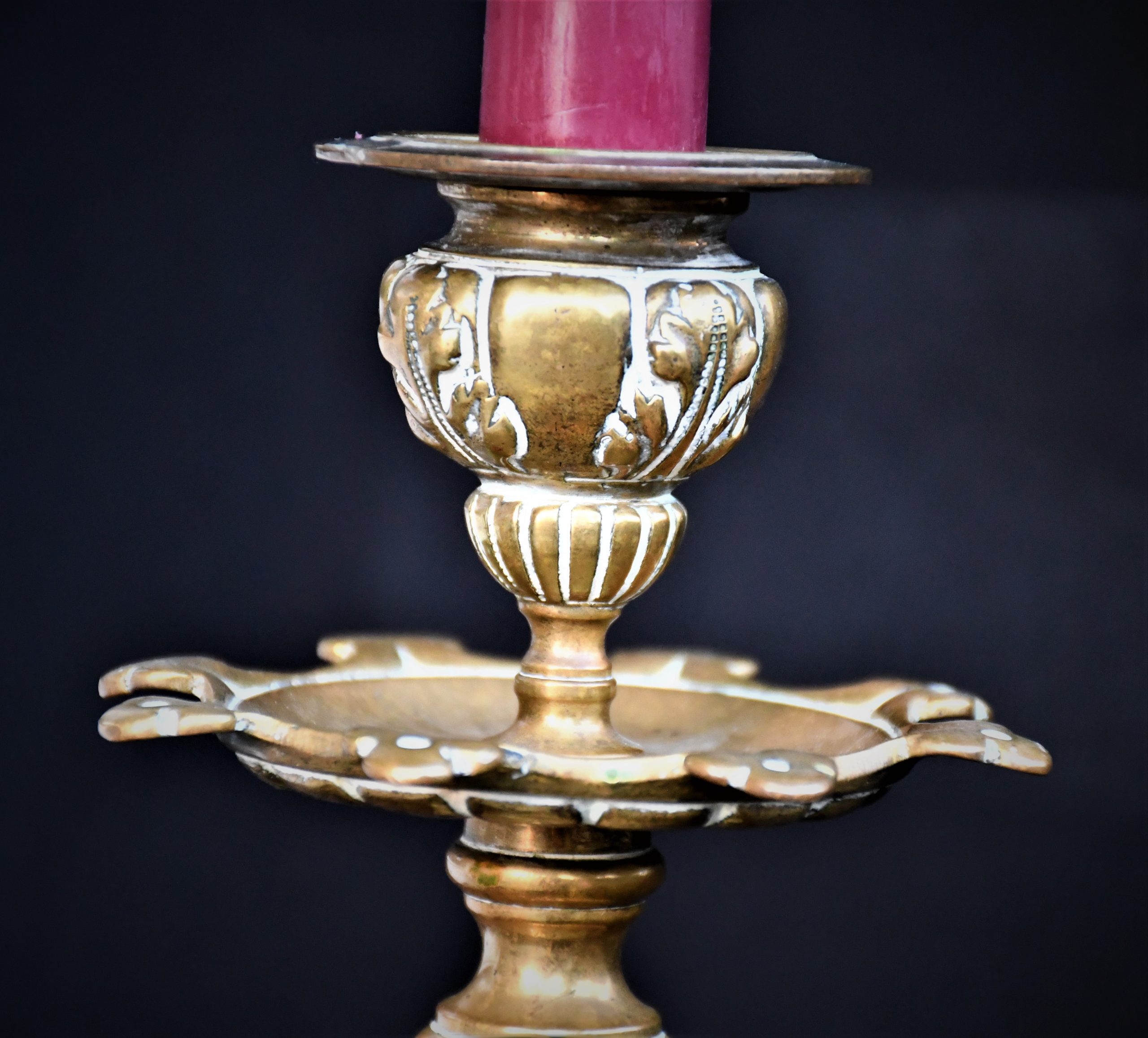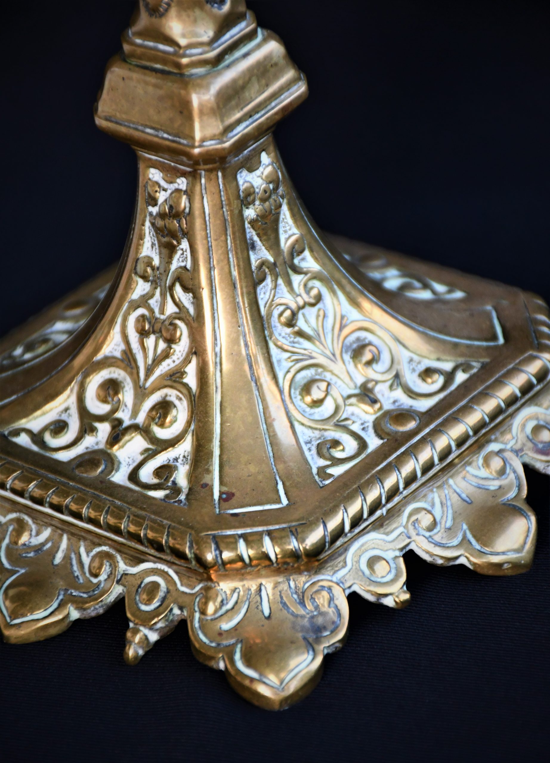 Стар италиански свещник, богато декориран, солиден бронз.