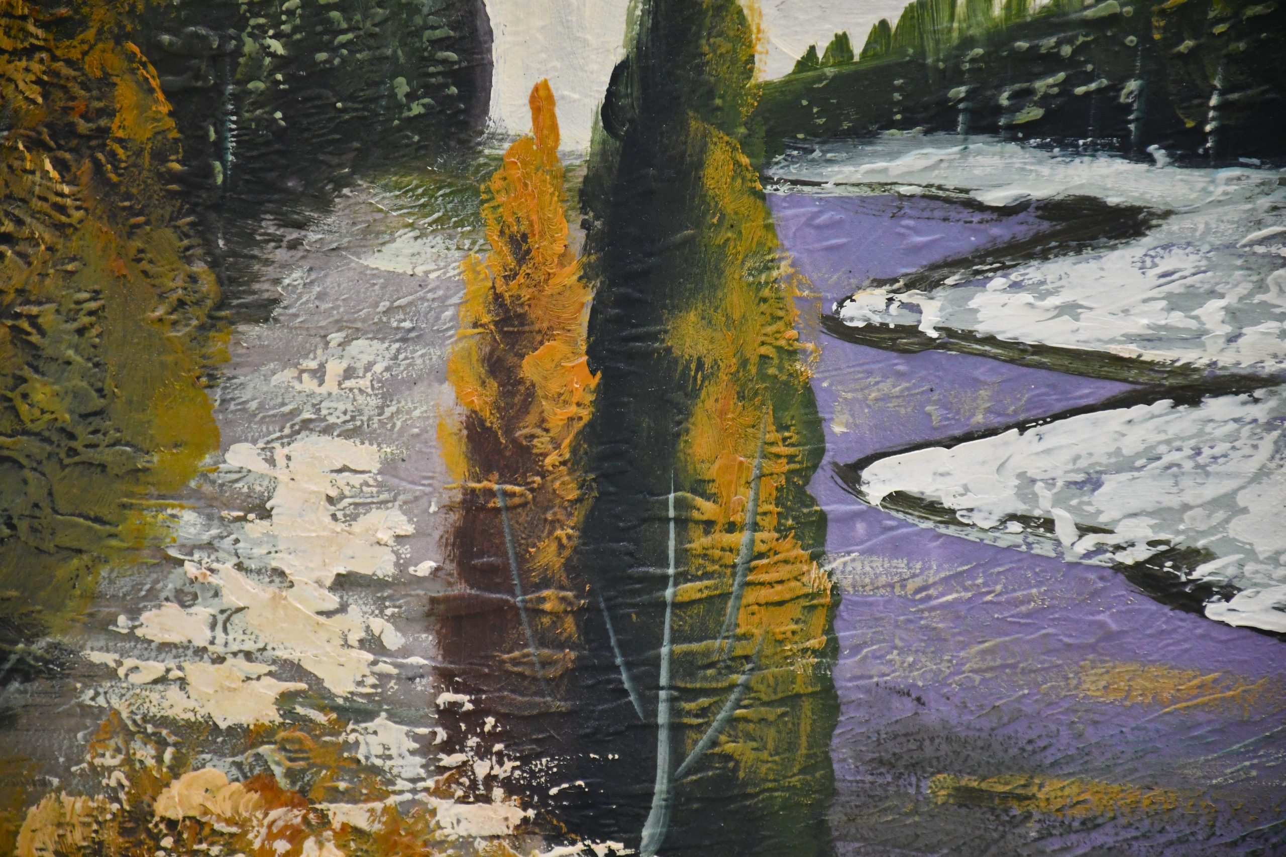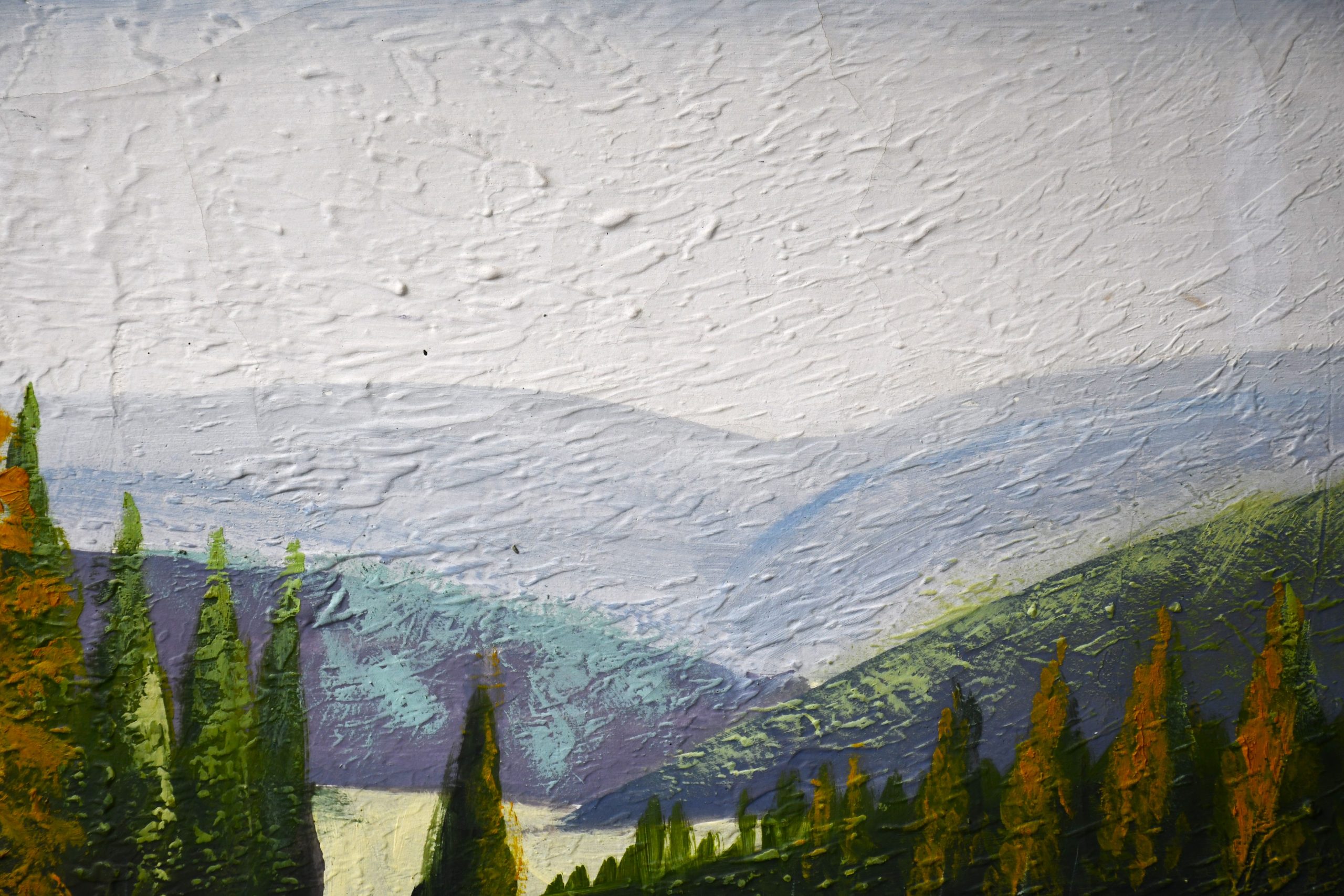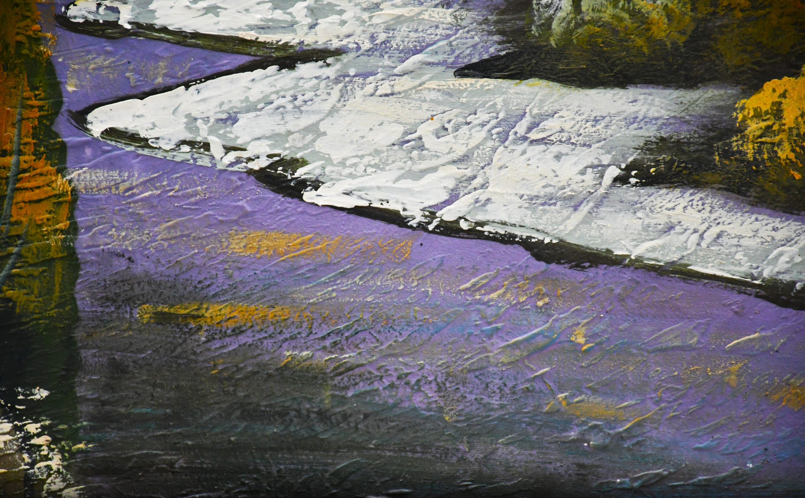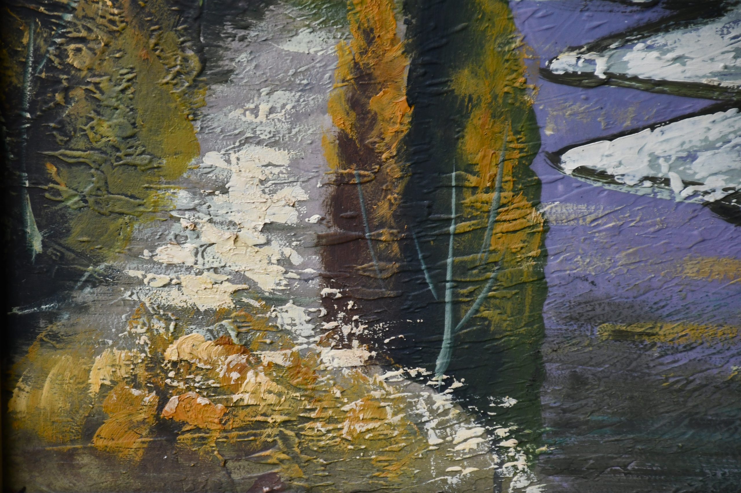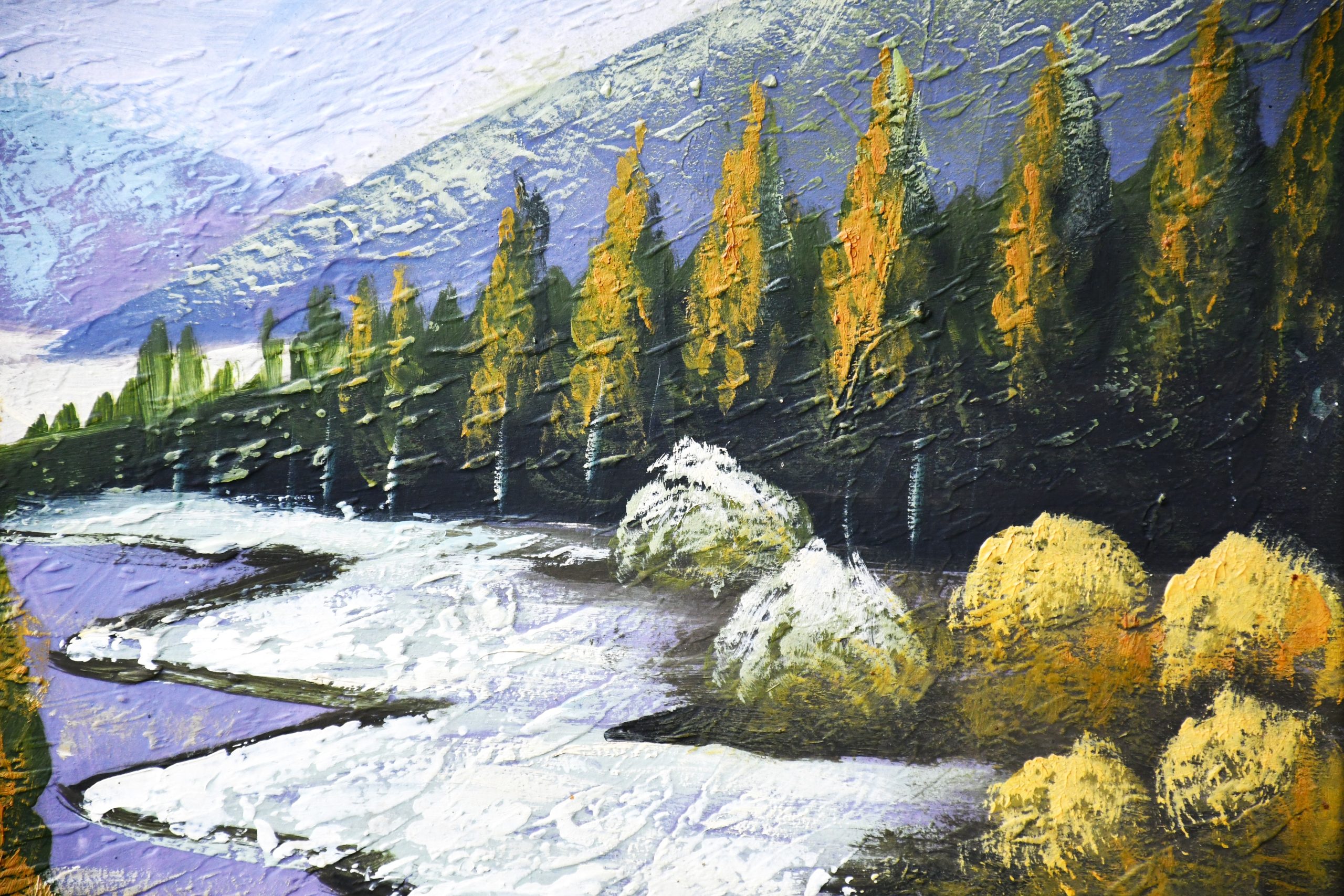 Българска школа (70те) – „Пейзаж с река“, маслени бои върху платно, не е подписана.