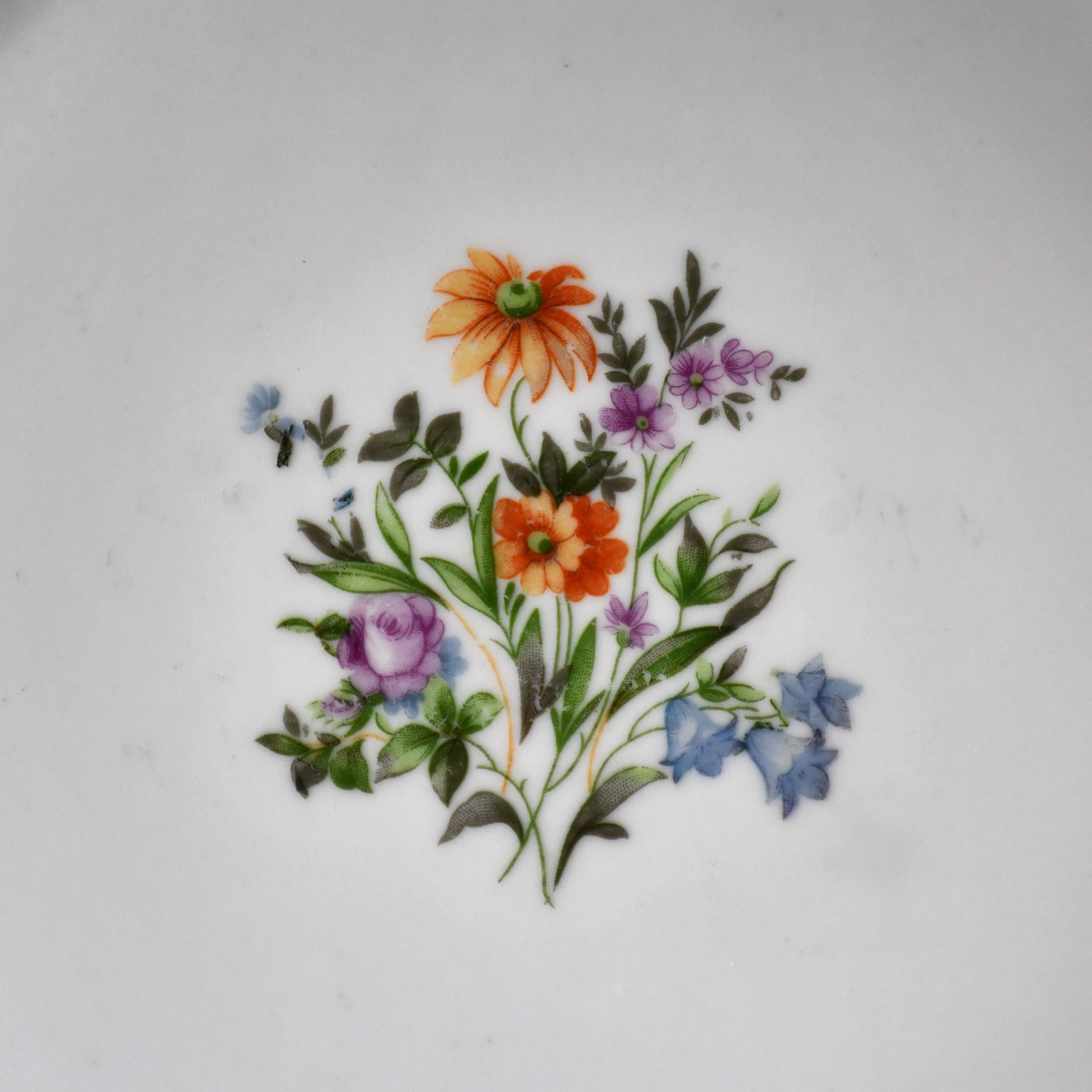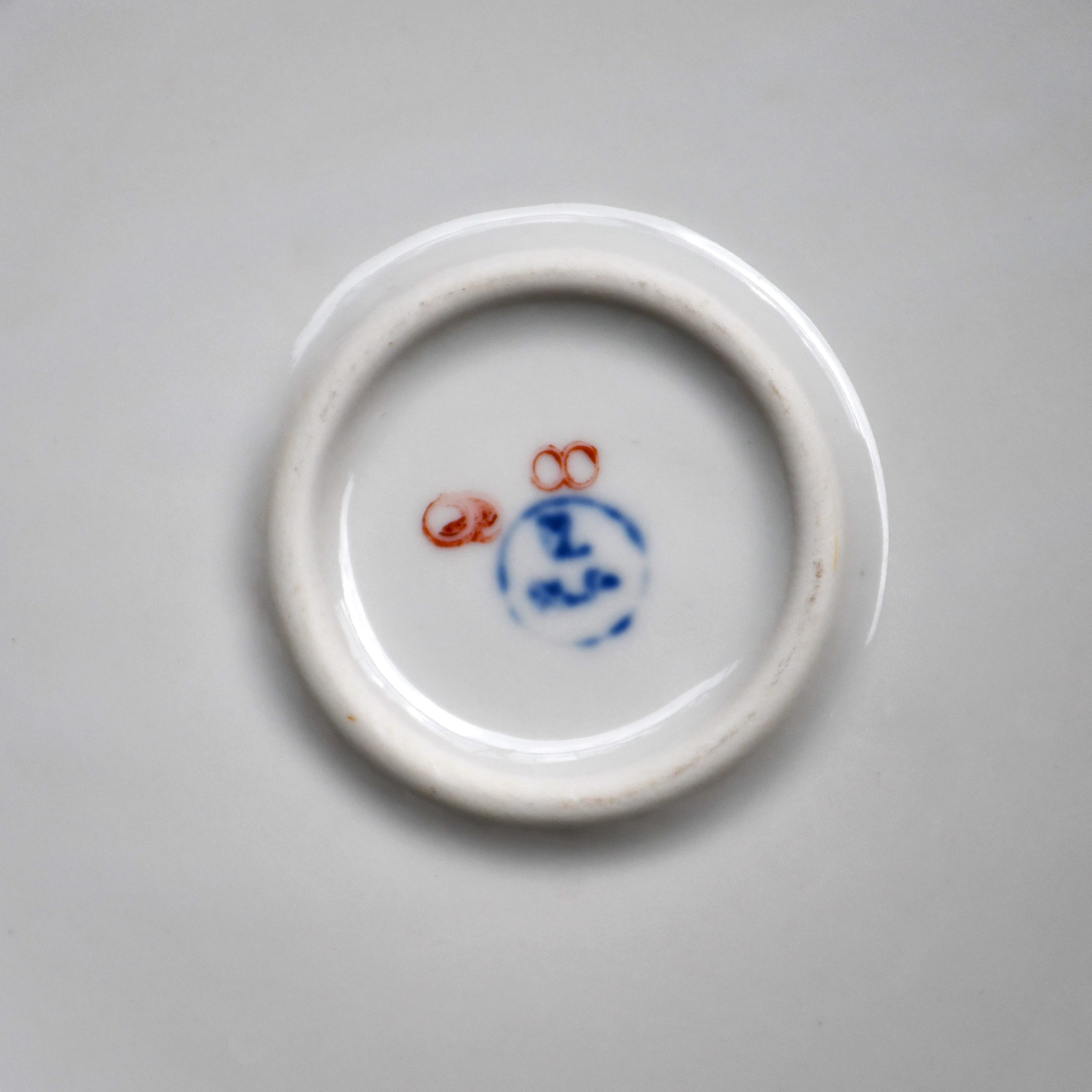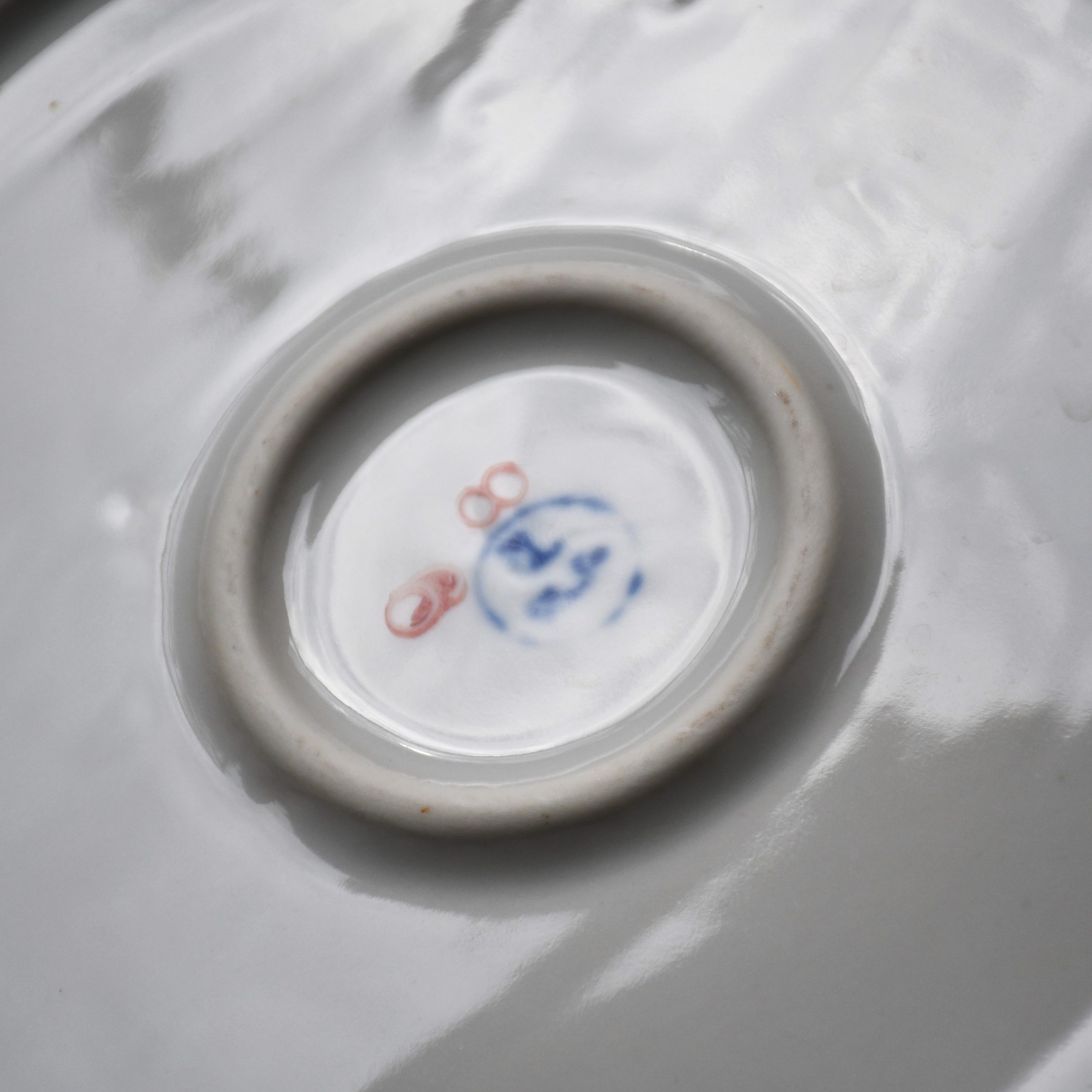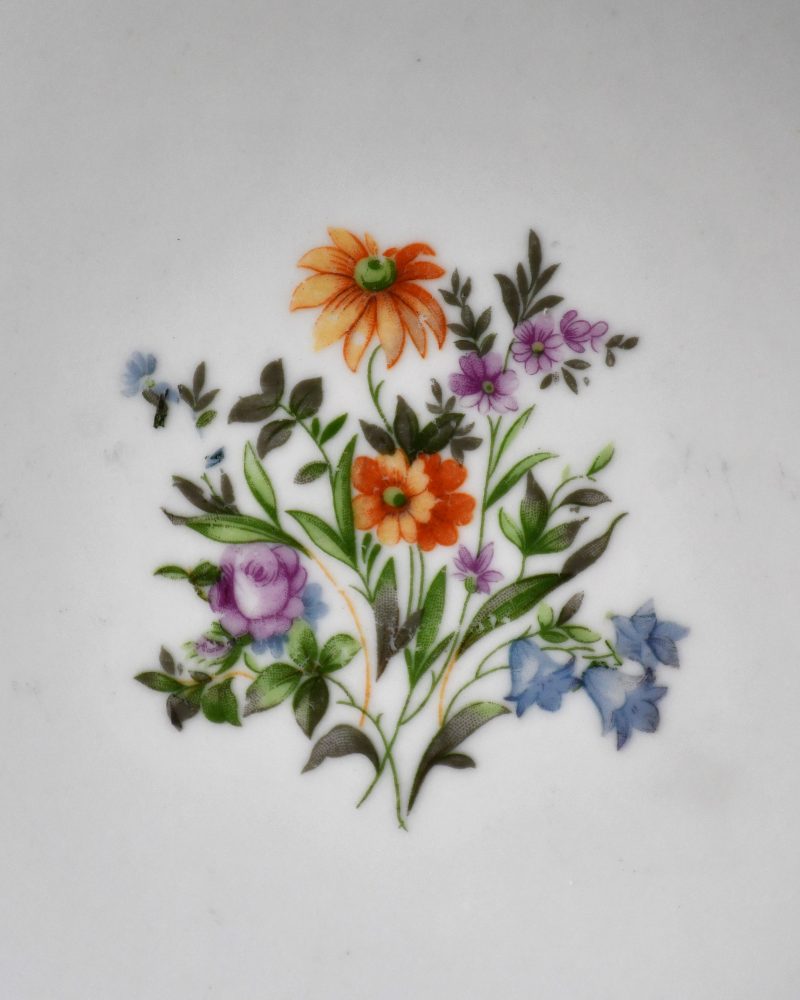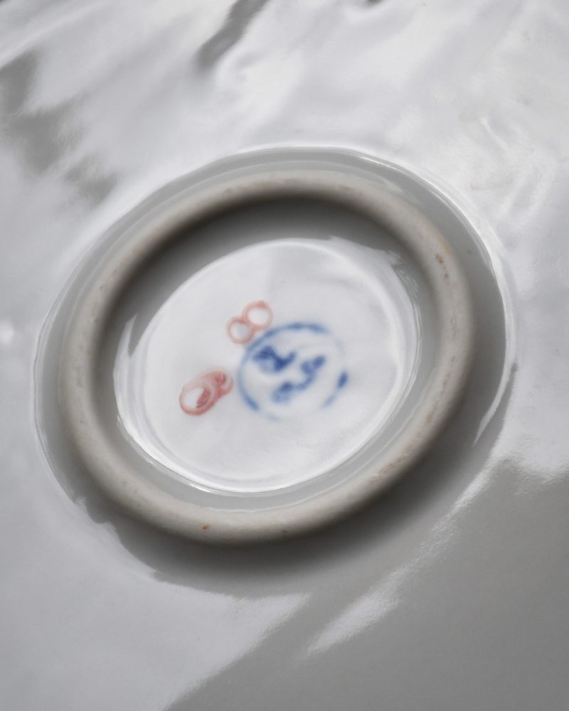 Бяла, с много елегантна флорална декорация и ръчно рисувана в тъмно червено. Маркирана на дъното с логото в синьо.