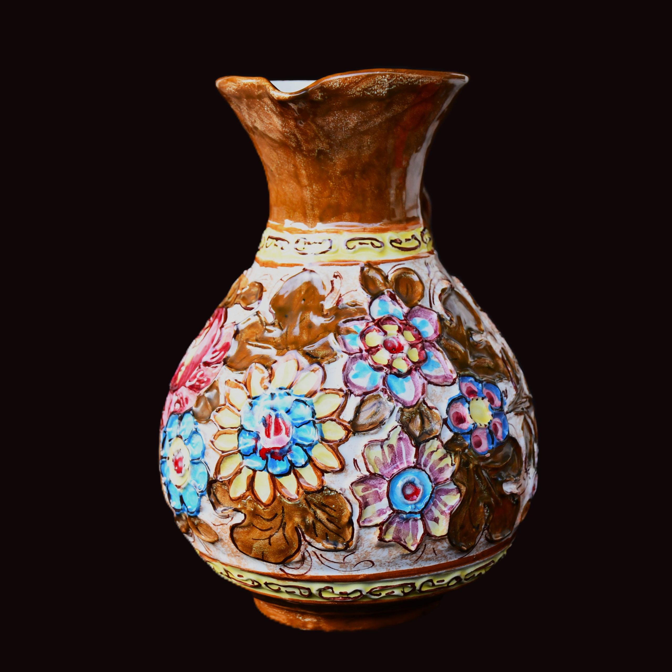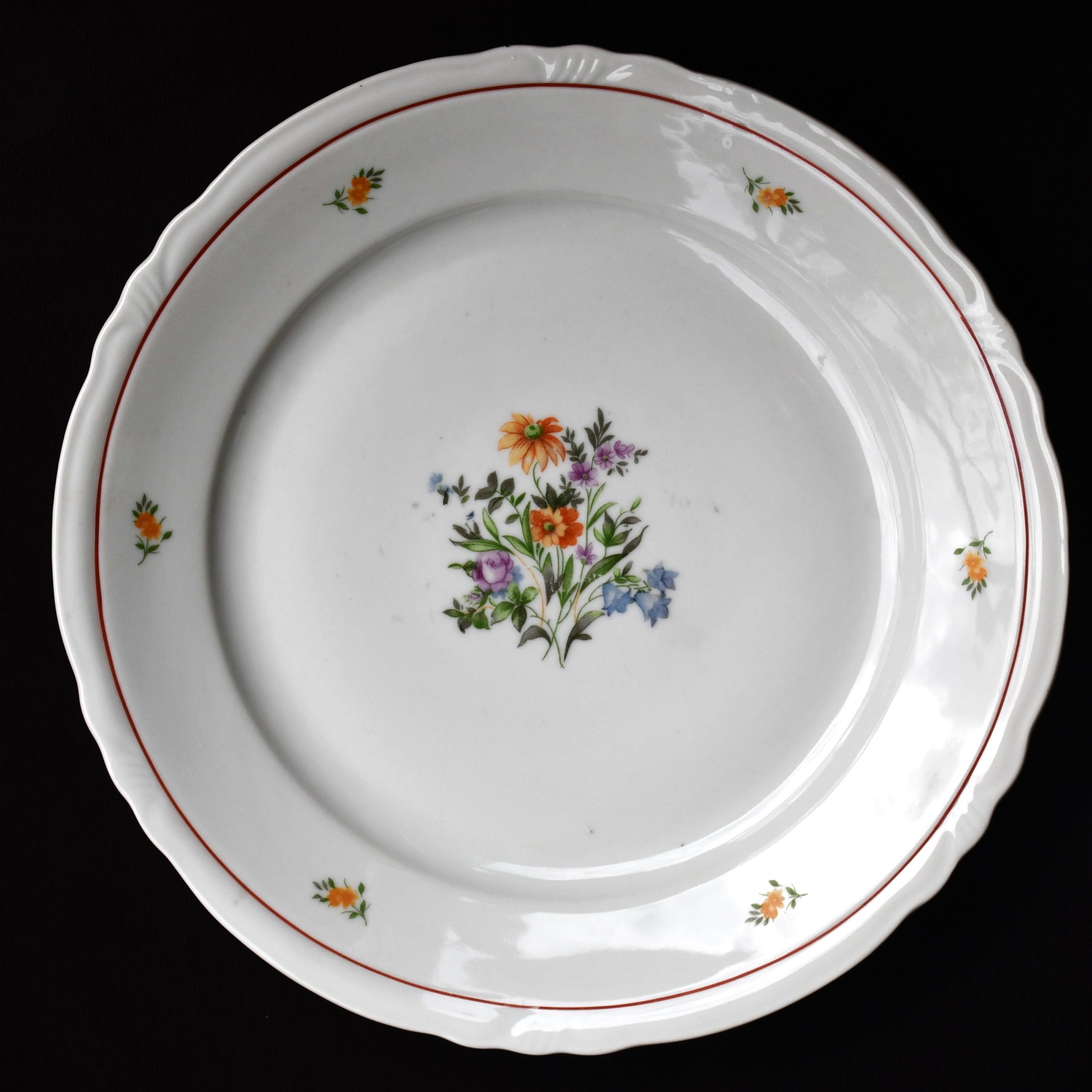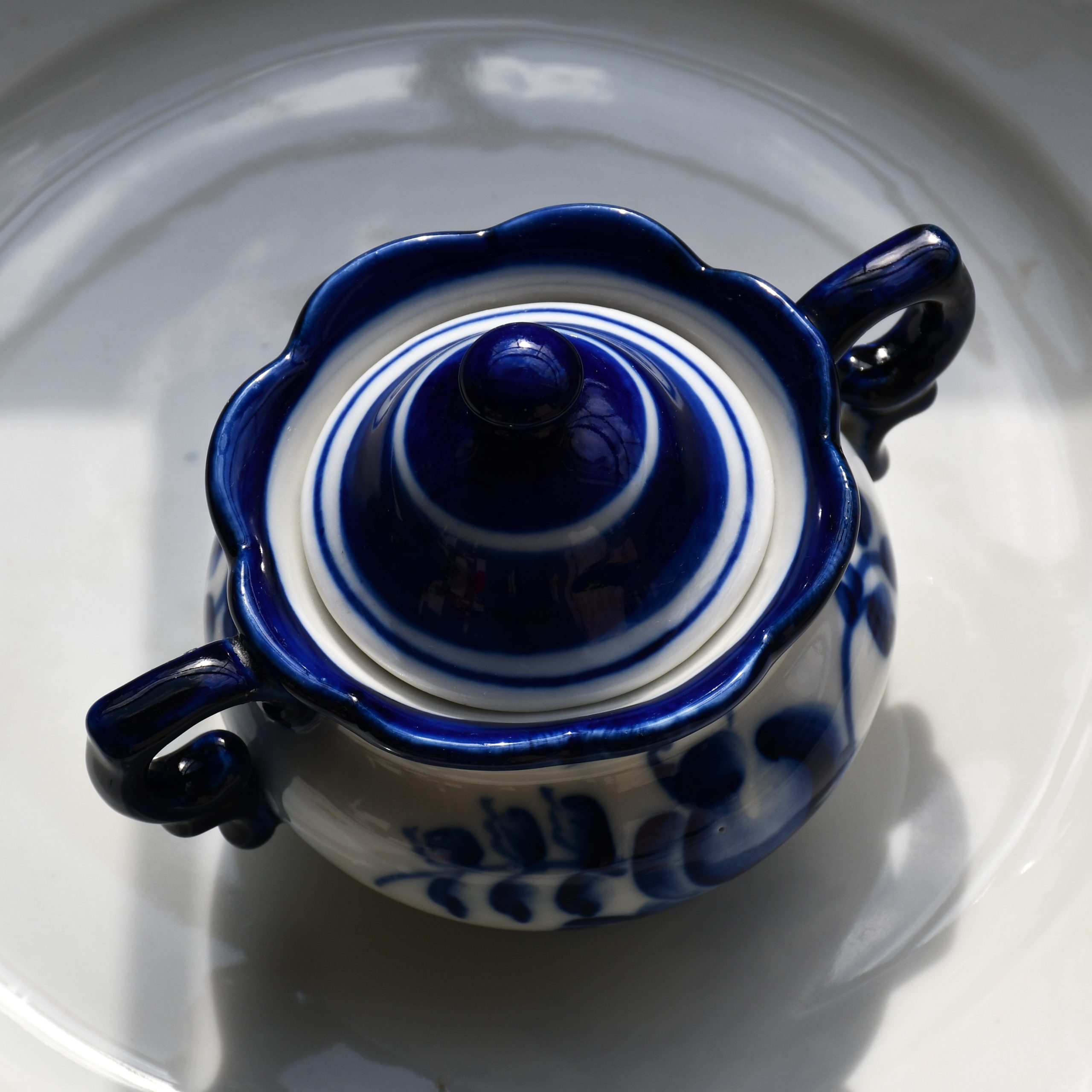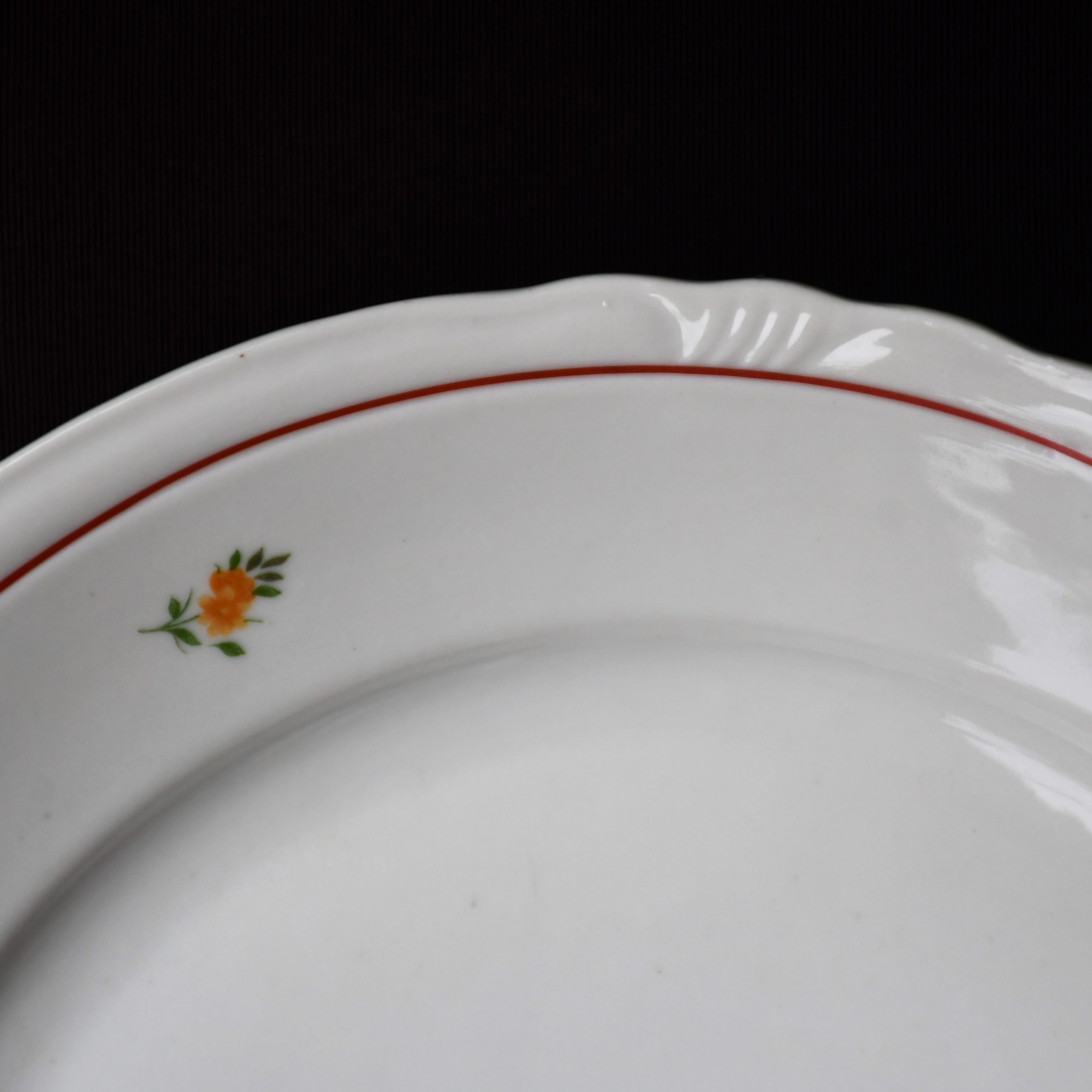 Бяла, с много елегантна флорална декорация и ръчно рисувана в тъмно червено. Маркирана на дъното с логото в синьо.