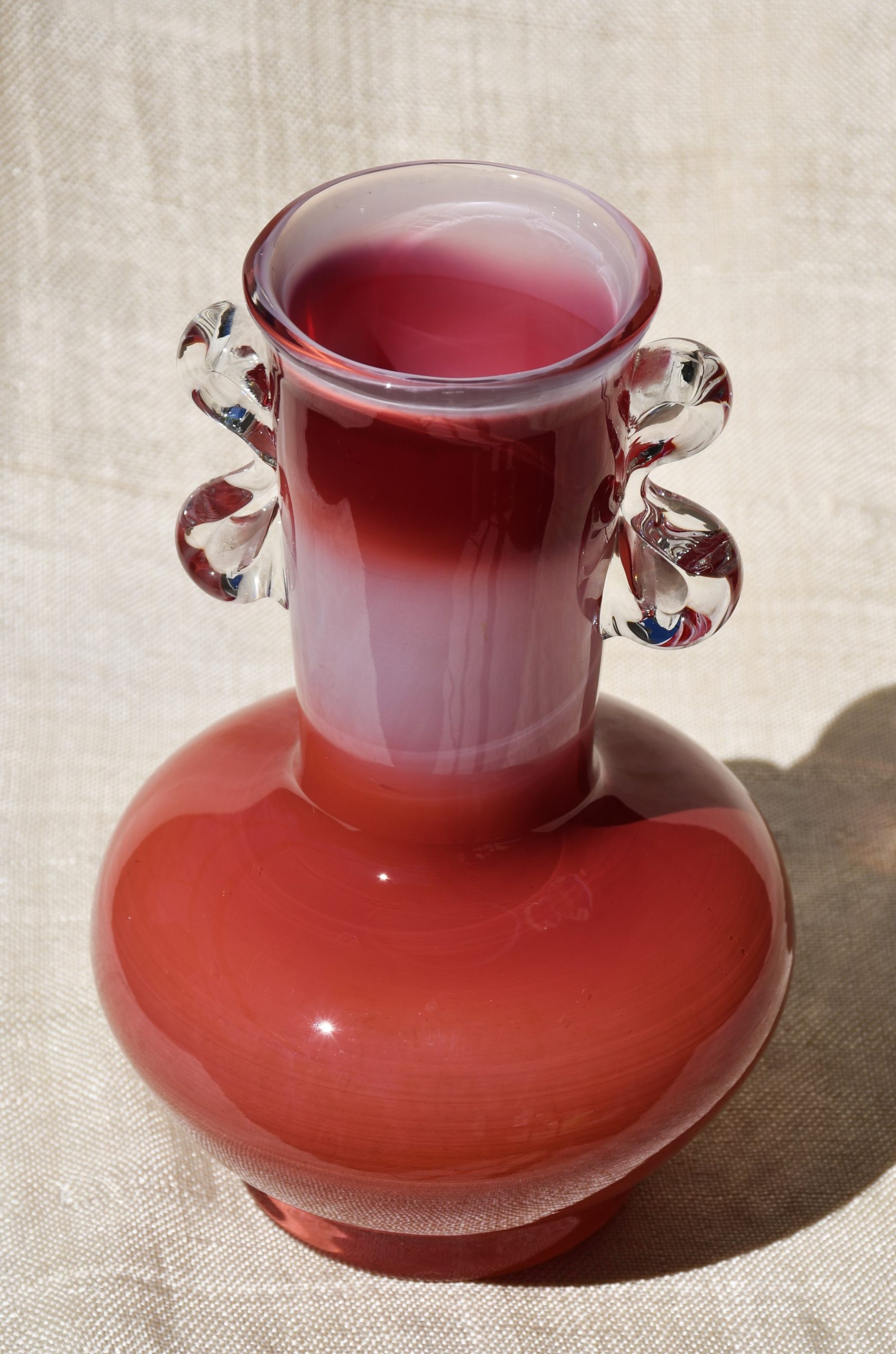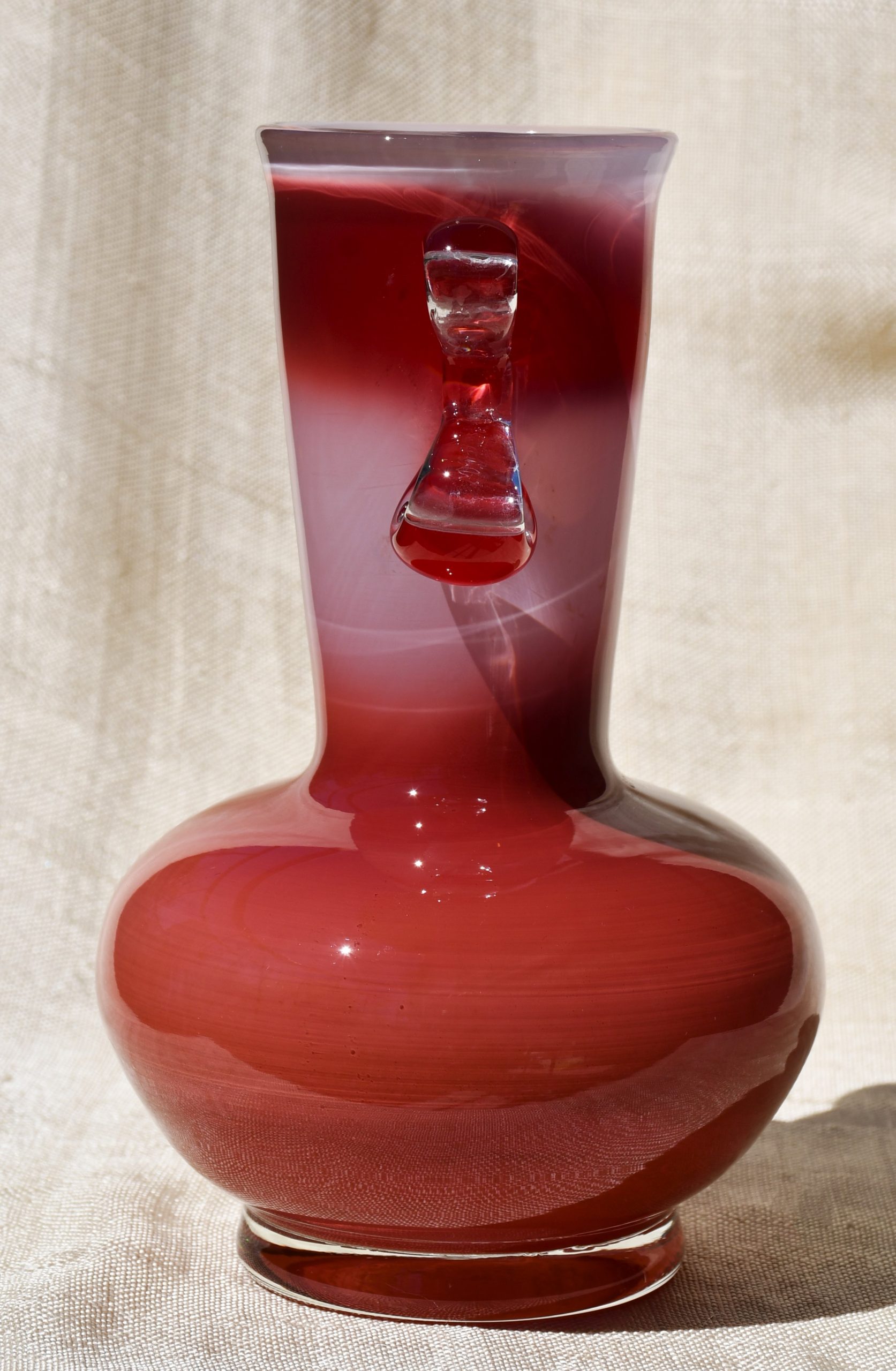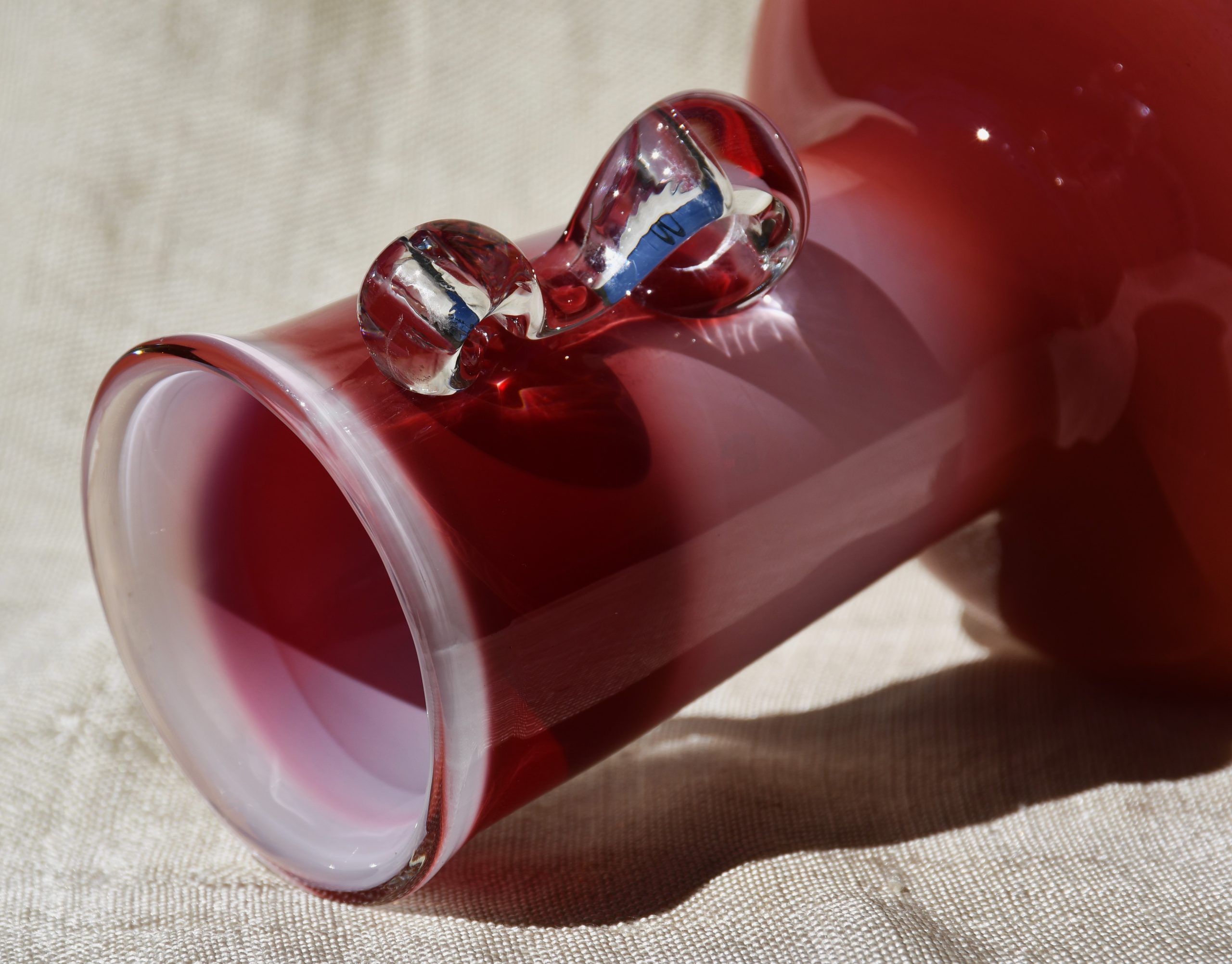 Изцяло ръчна работа. В изчистени MCM форми, неочаквани цветове и безупречно владеене на занаята. Сомерсо технология. Апликациите са направени от прозрачно стъкло. Предмет с душа и топло присъствие в пространството на стаята.