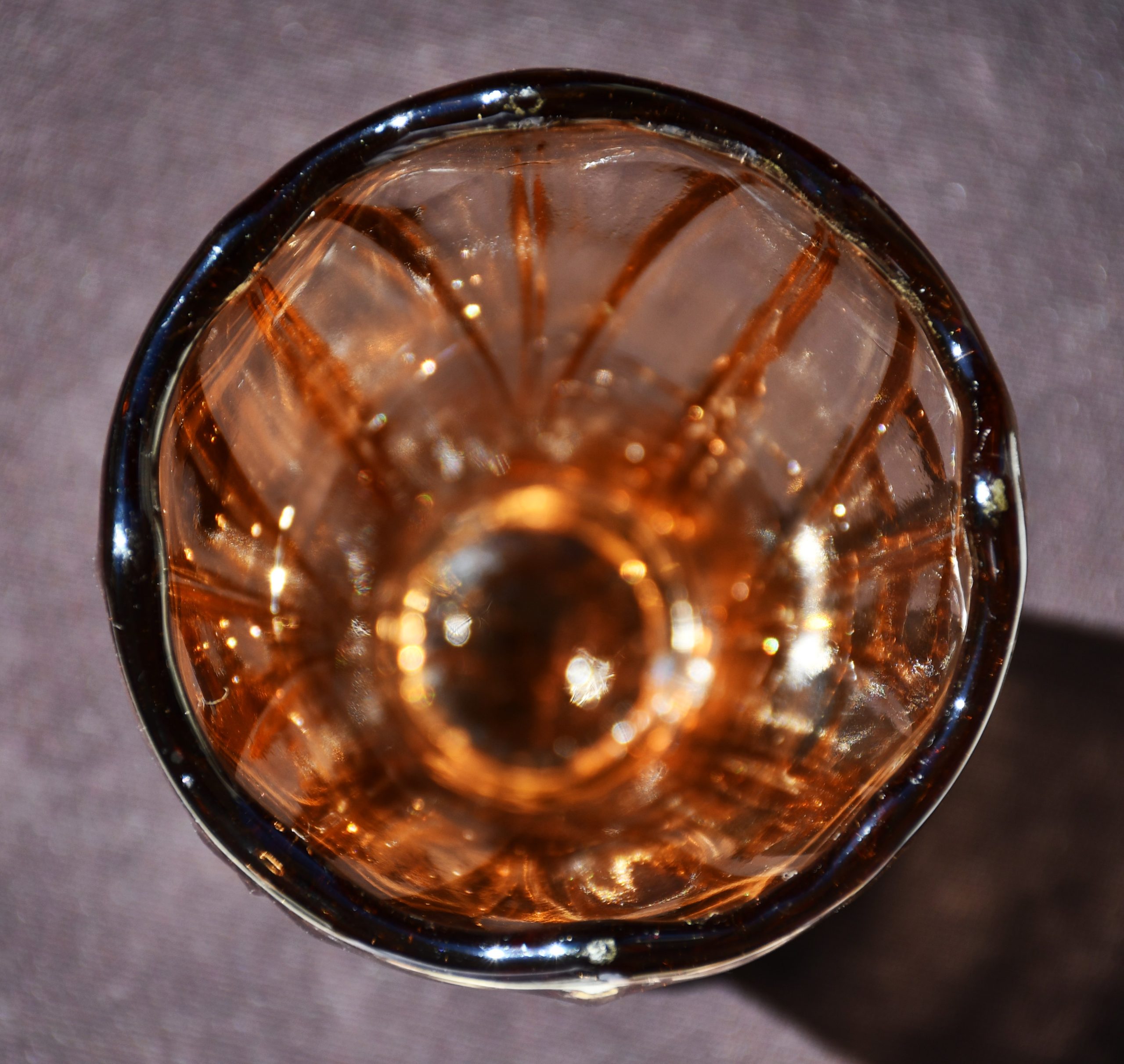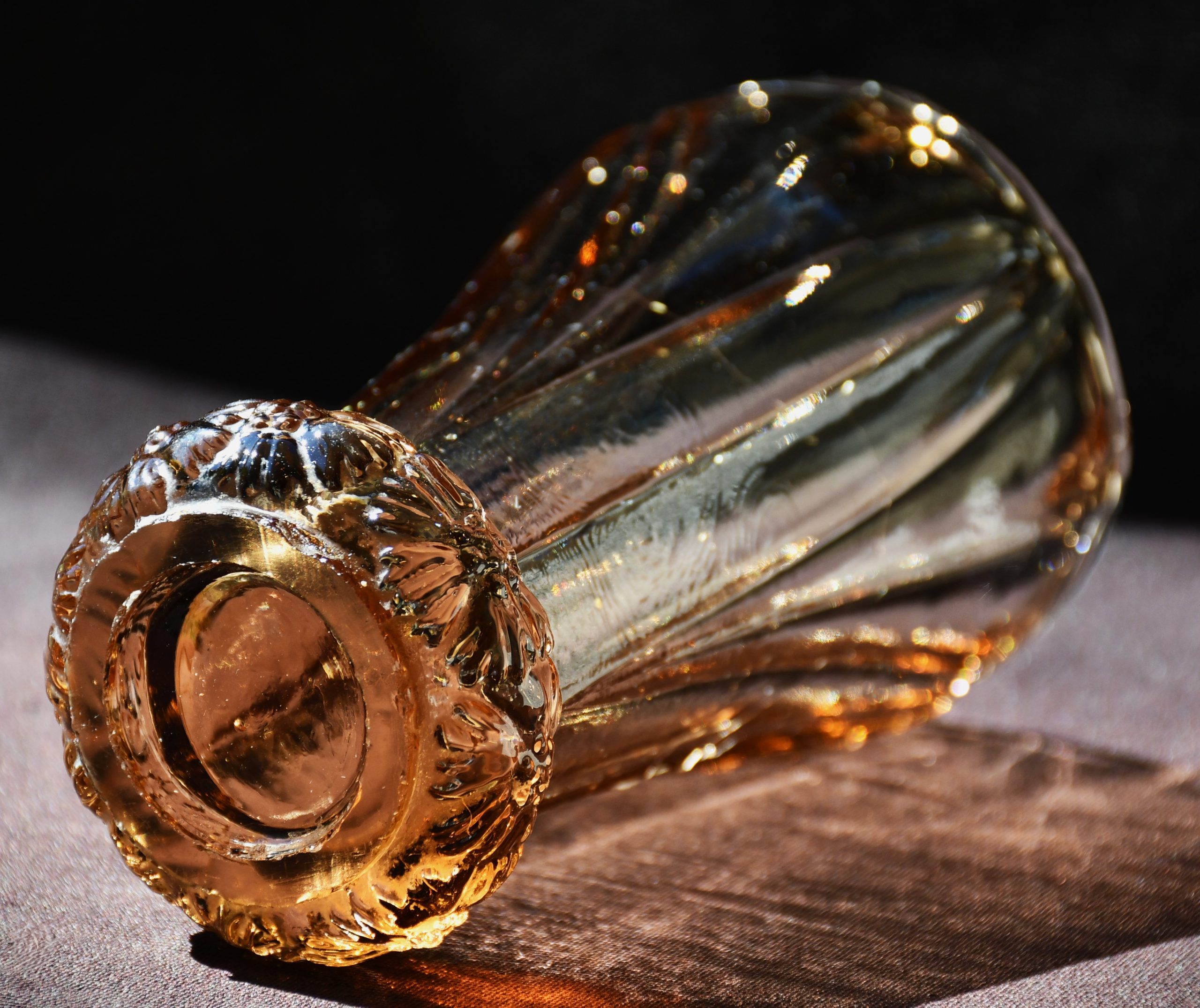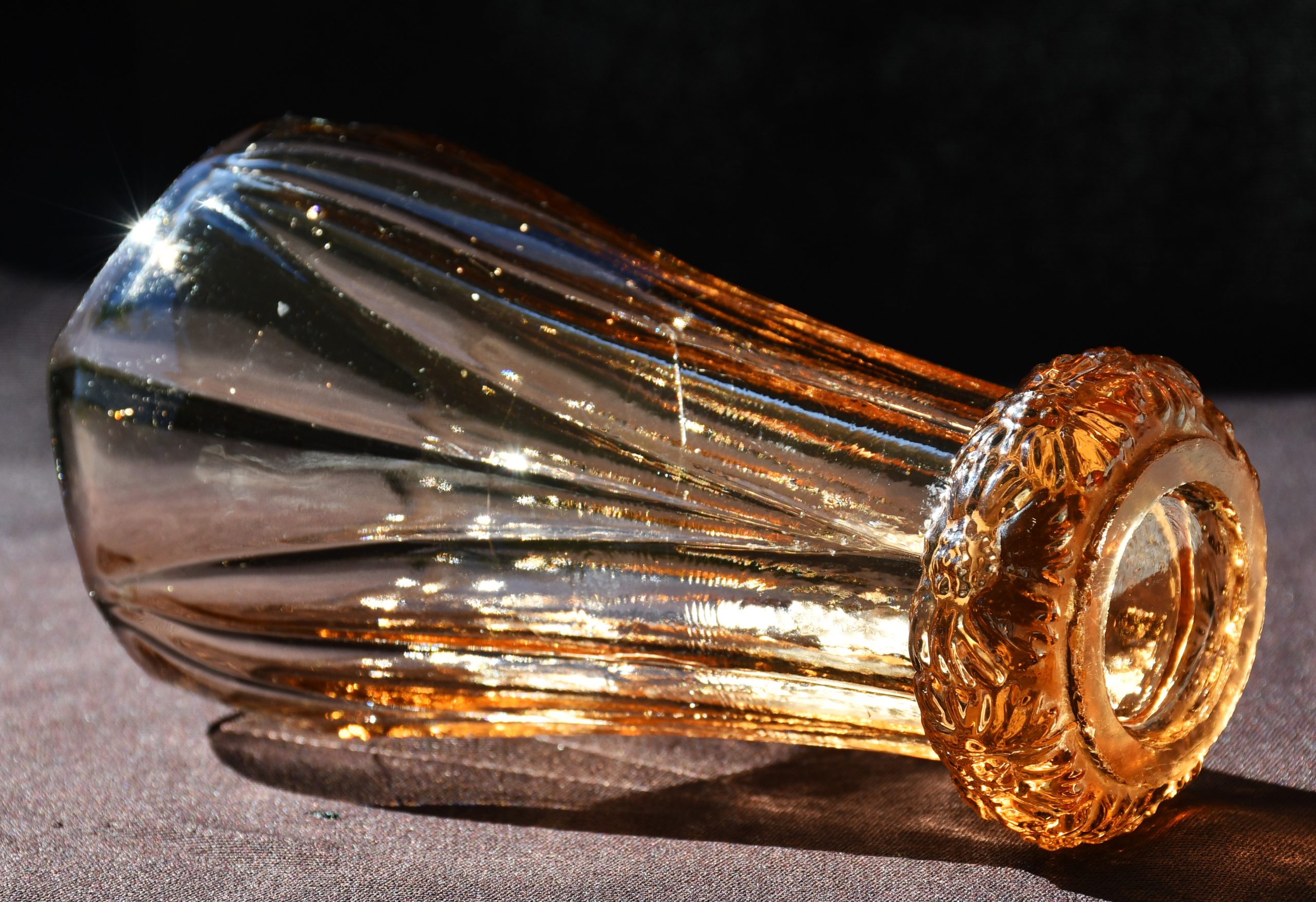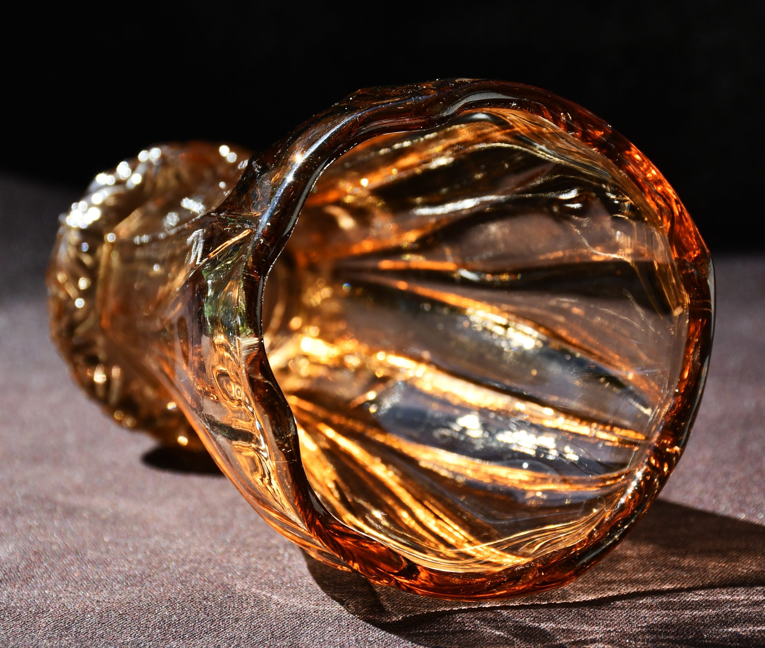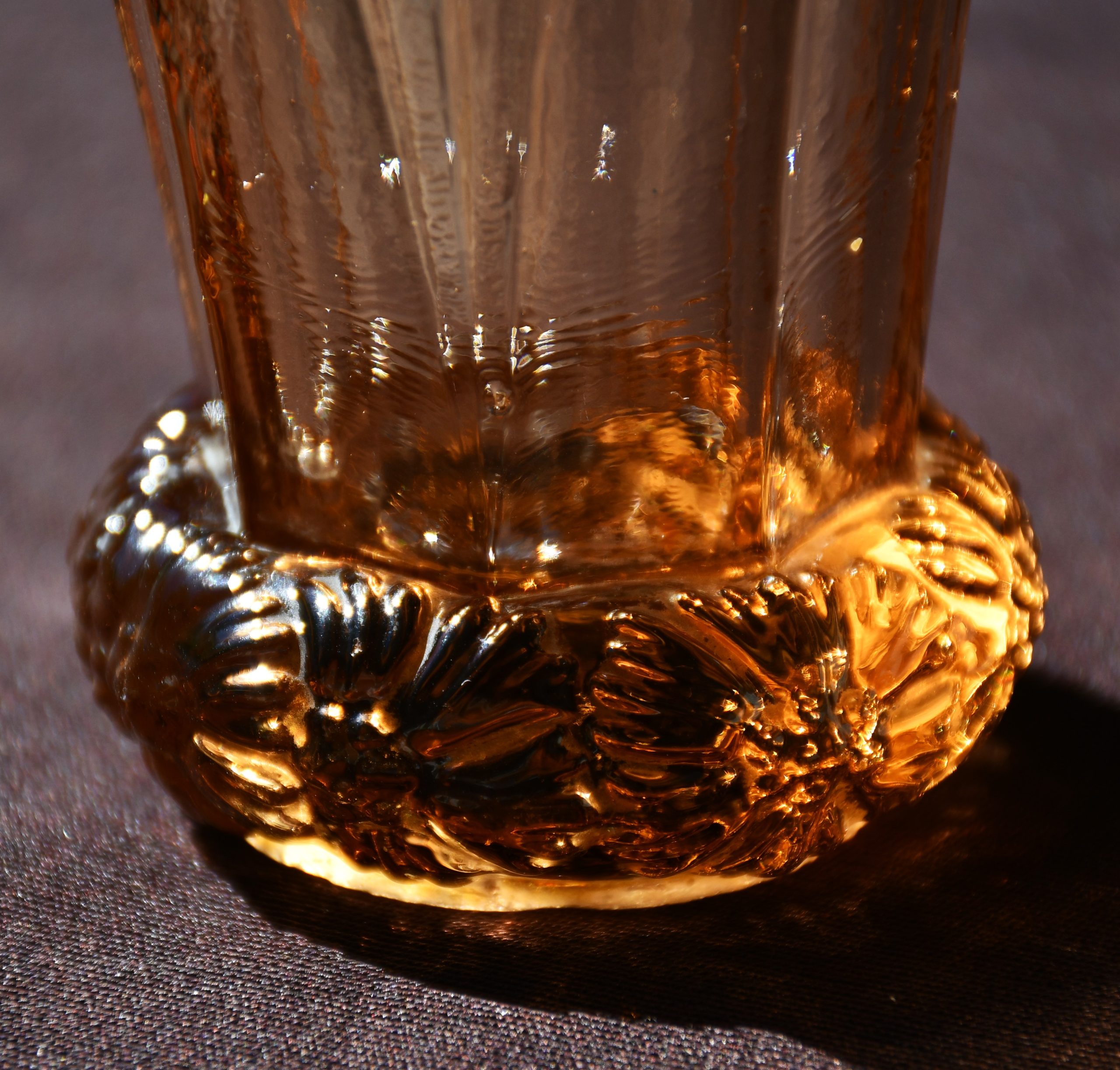 „Bohemia“ – Vintage ваза Art Deco в стила на Kurt Schlevogt – пресовано стъкло. Цвят amber/rosaline.