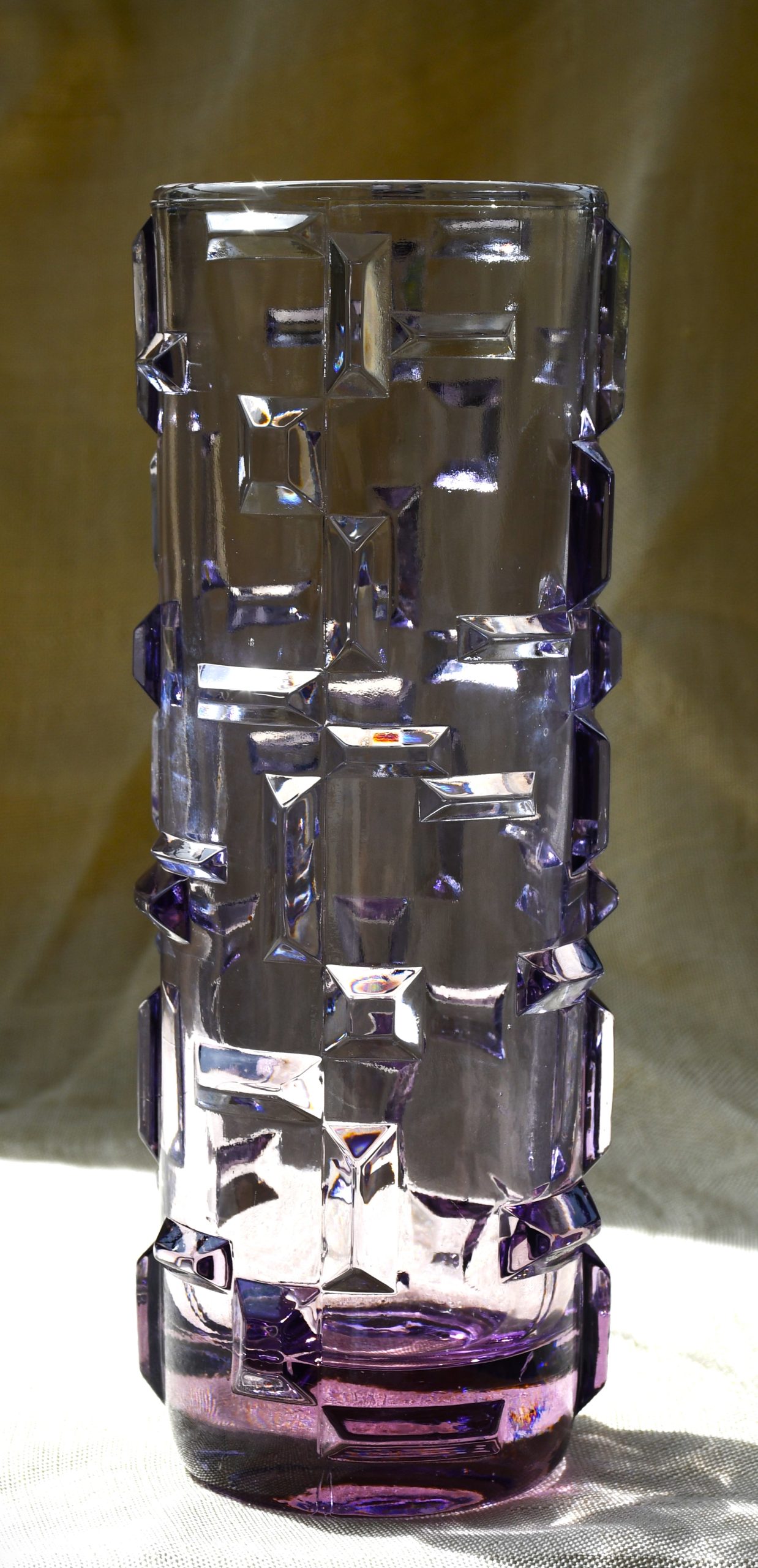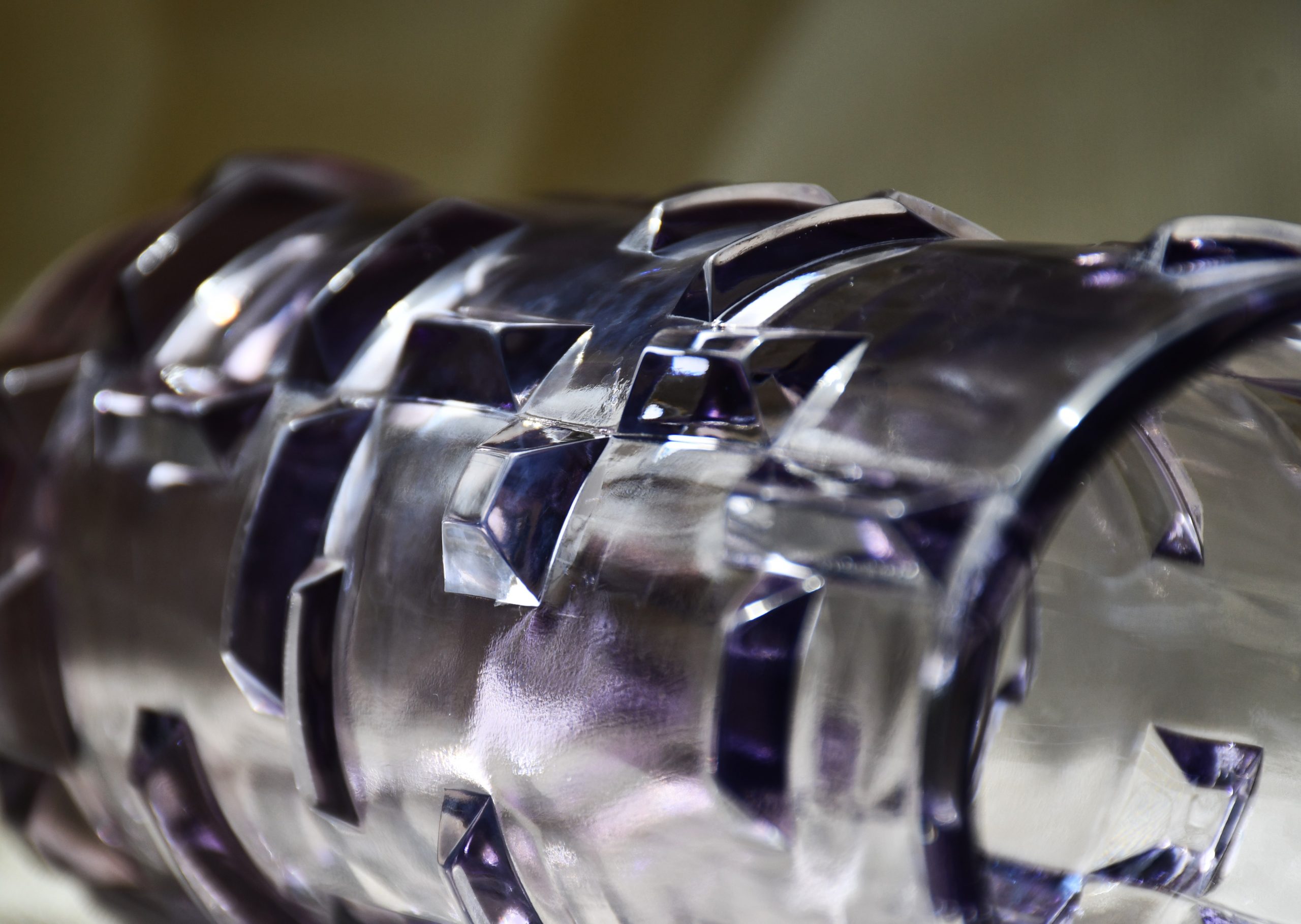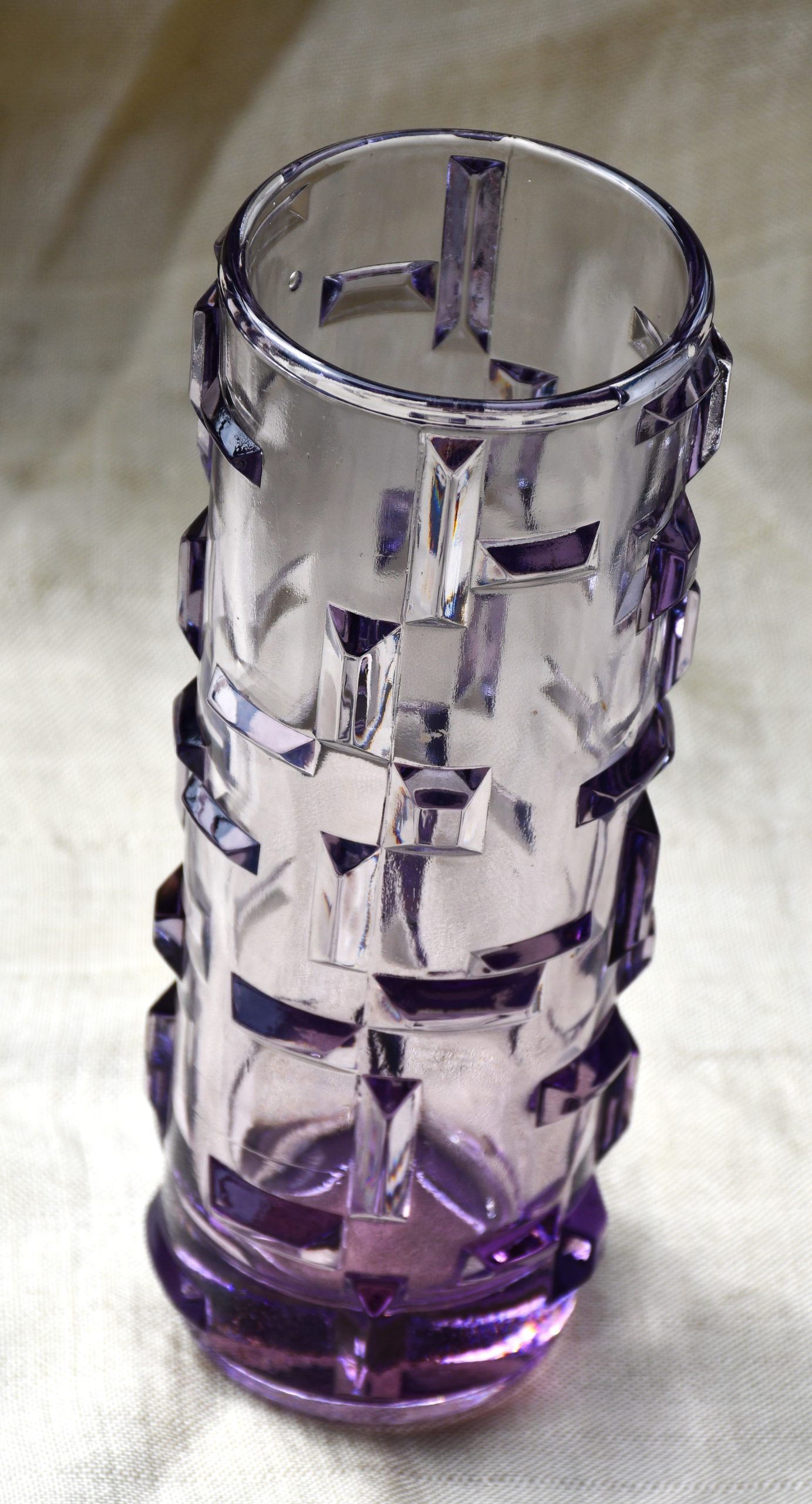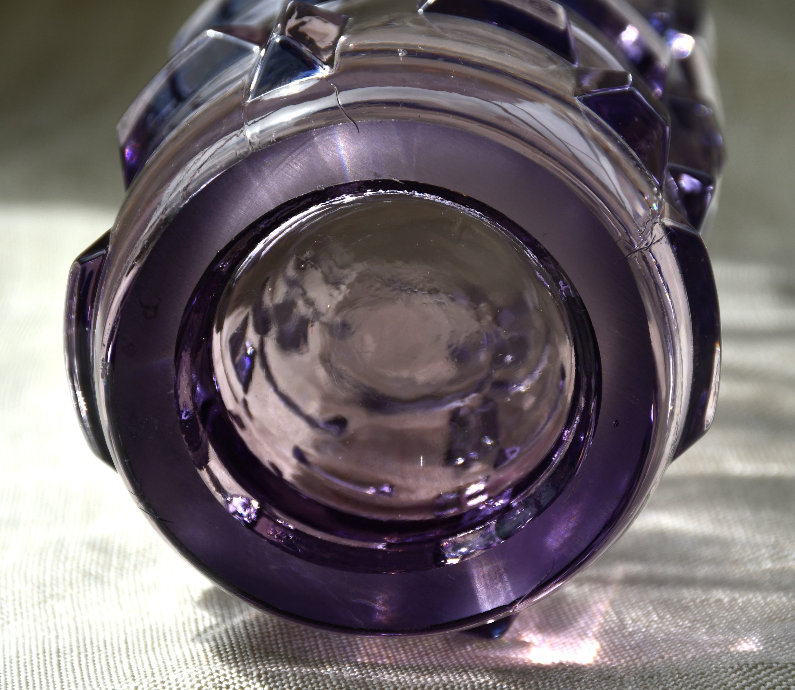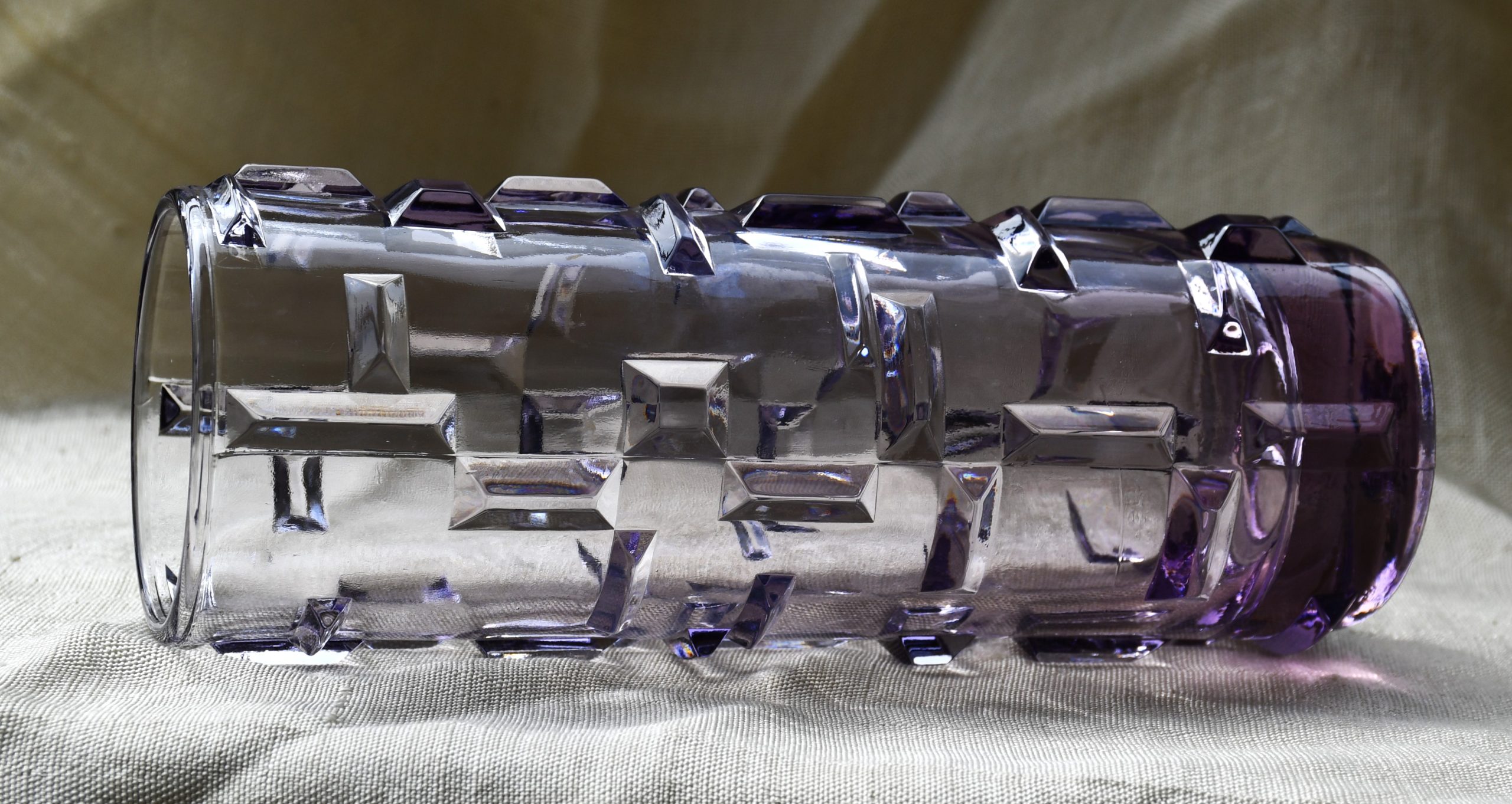Пресовано „александрит“ стъкло. Нарича се още неодимиево стъкло и е характерно с това, че променя цвета си при различни източници на светлина. Голям хит през 60те и 70те години.