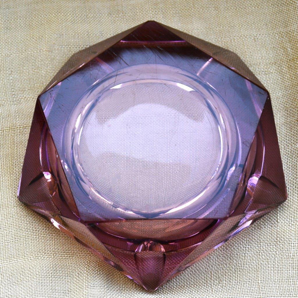 Много качествен винтидж пепелника от цветен (виолетово/сливов) кристал.