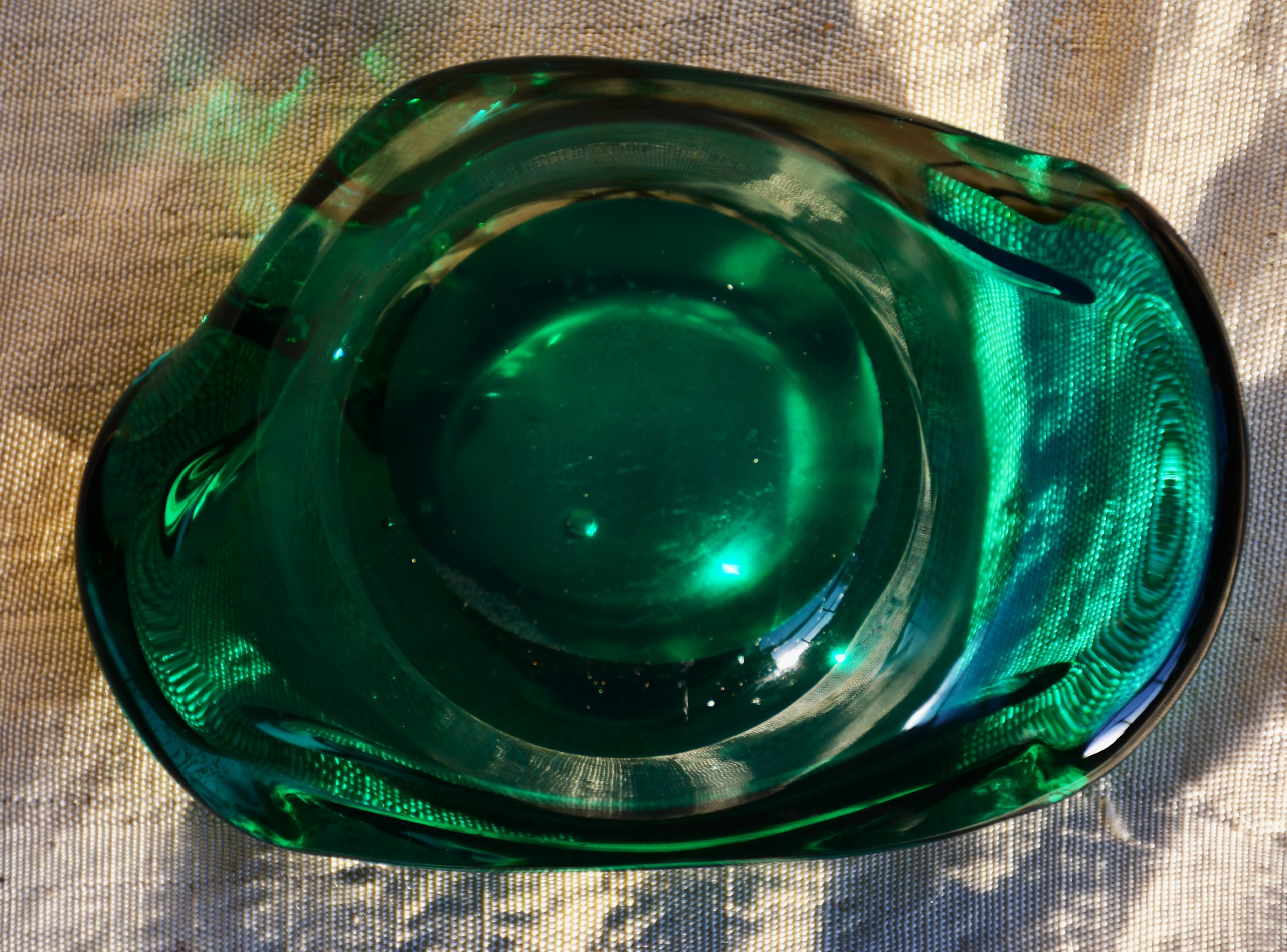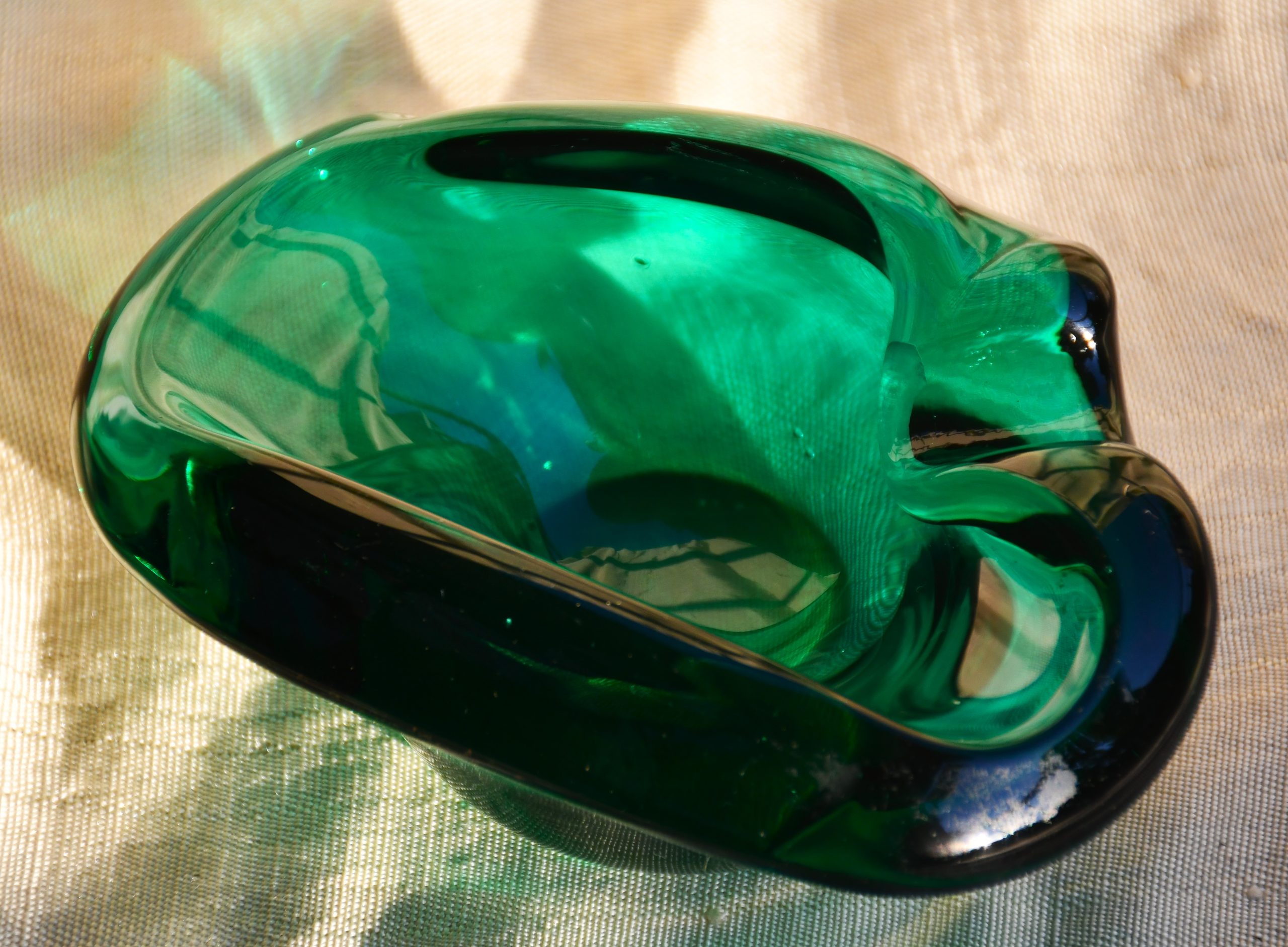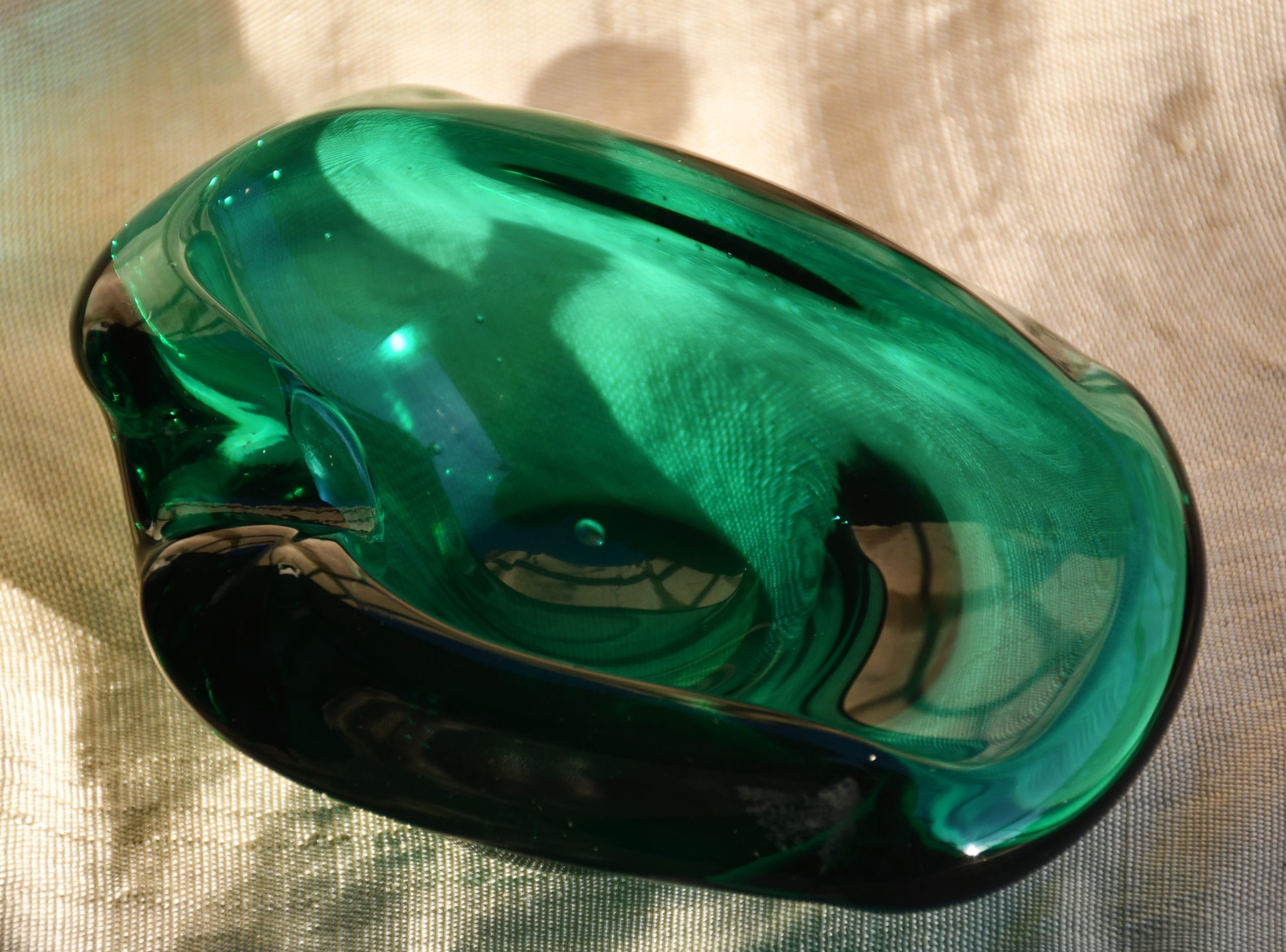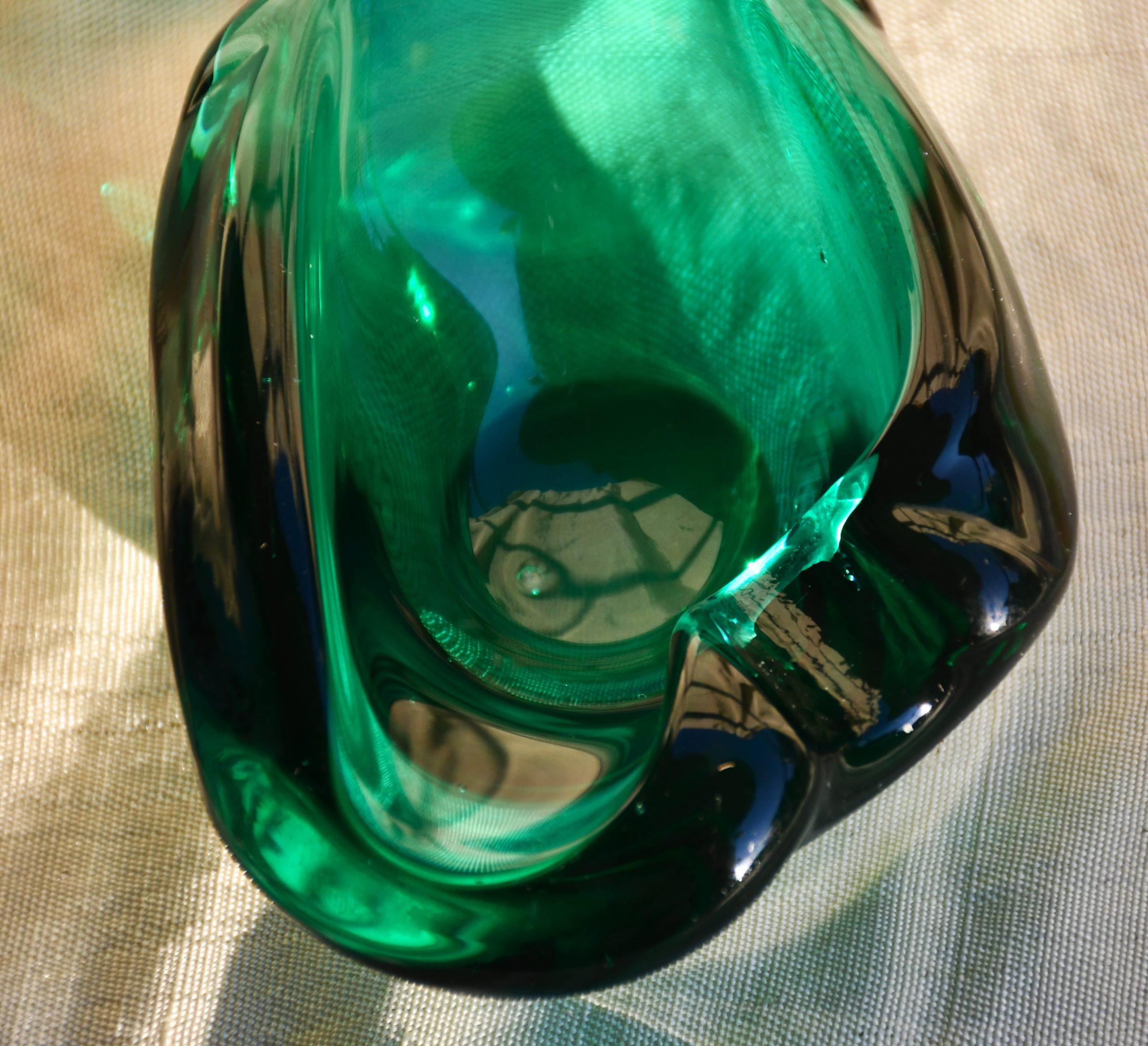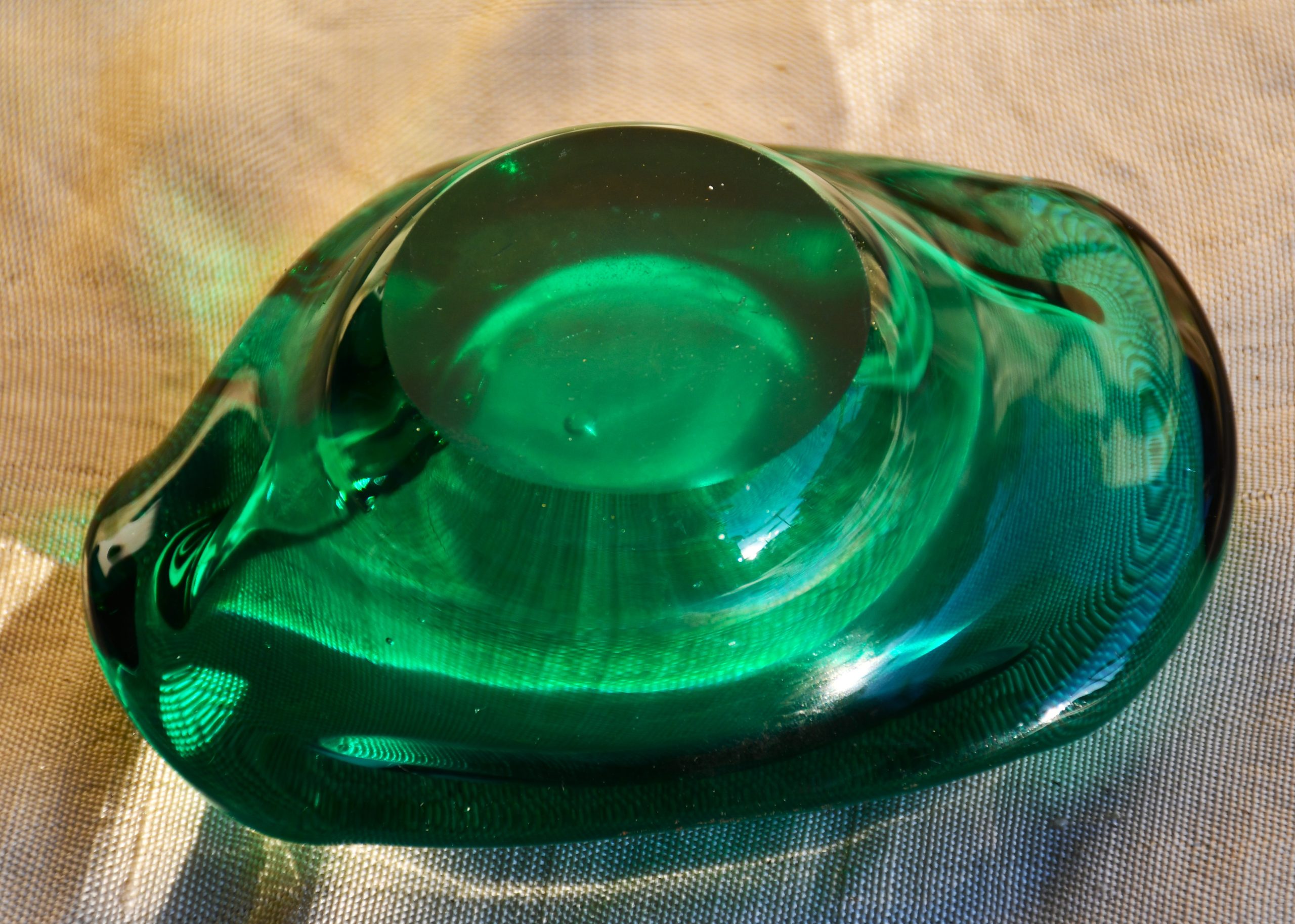 Артефакт с възхитителен цвят и майсторска изработка. Много изящен, с мека органична форма. Повече скулптура, отколкото утилитарен предмет. Фин цвят с многобройни нюанси и преливания. Полирано дъно. Перфектен екземпляр на mid century стила.