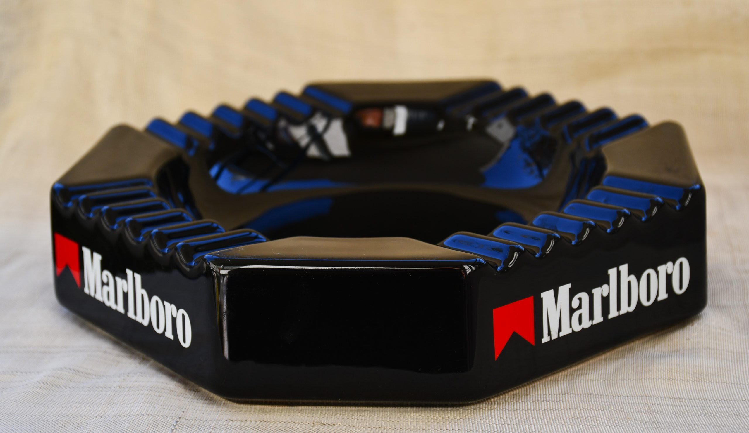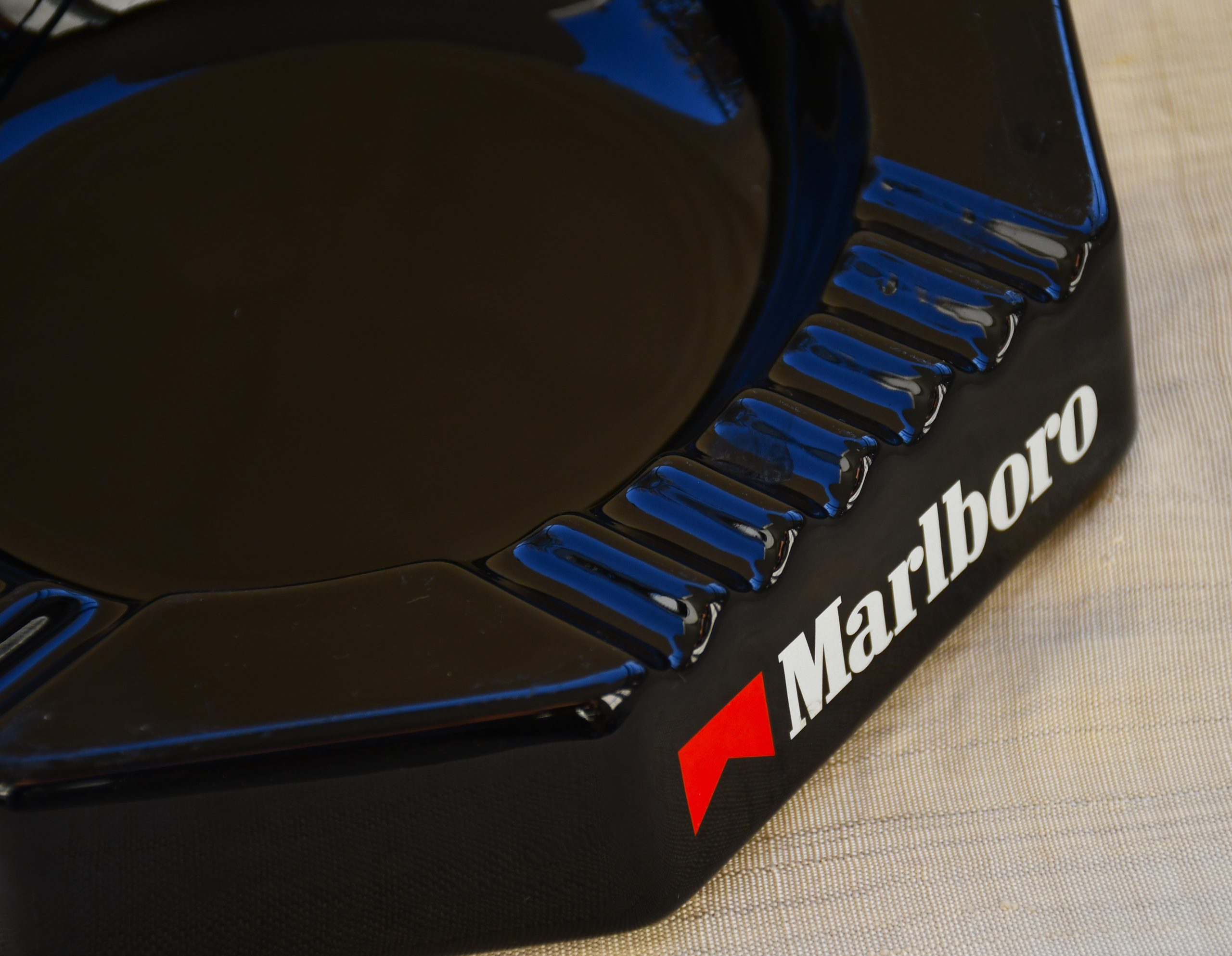 Винтидж пепелник Marlboro от 1990-те на 20 в. Керамика с черна глазура. Брандиран.