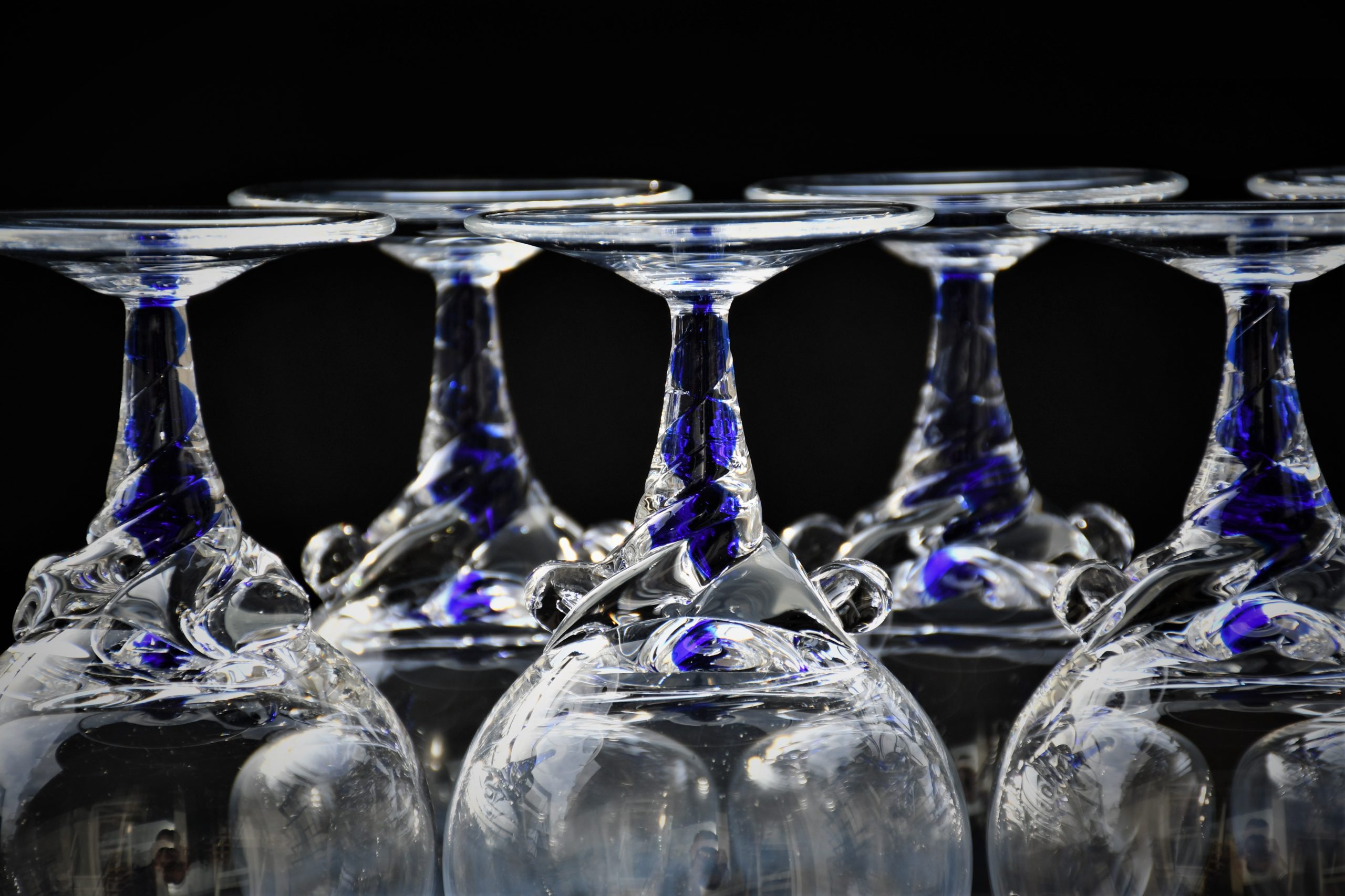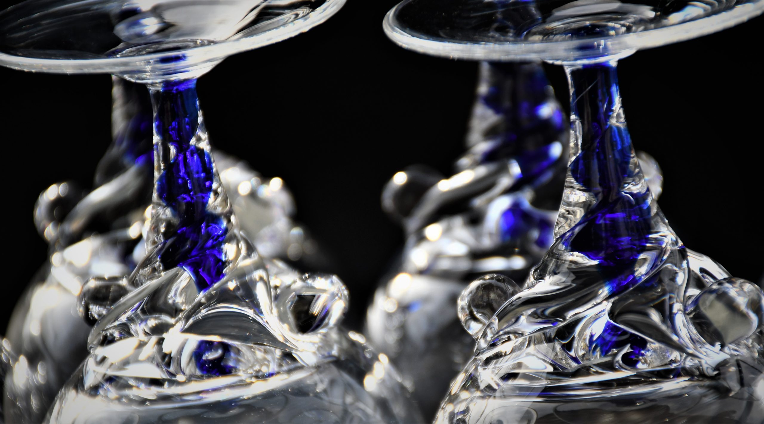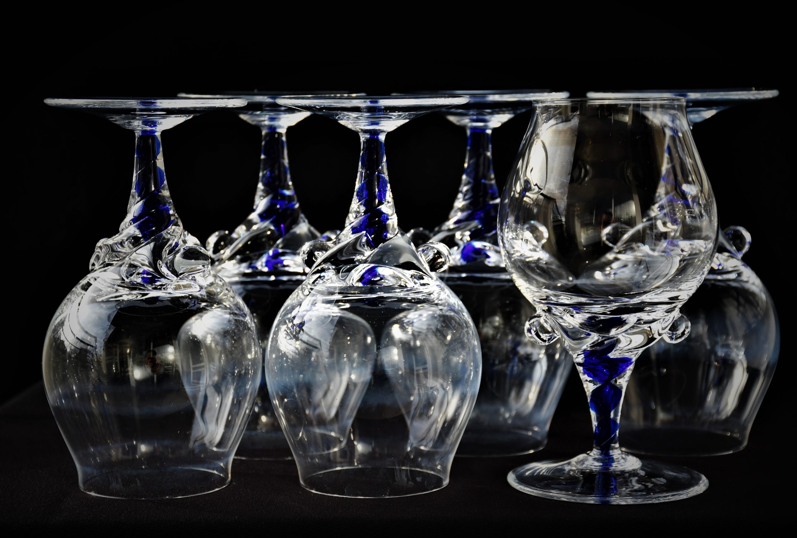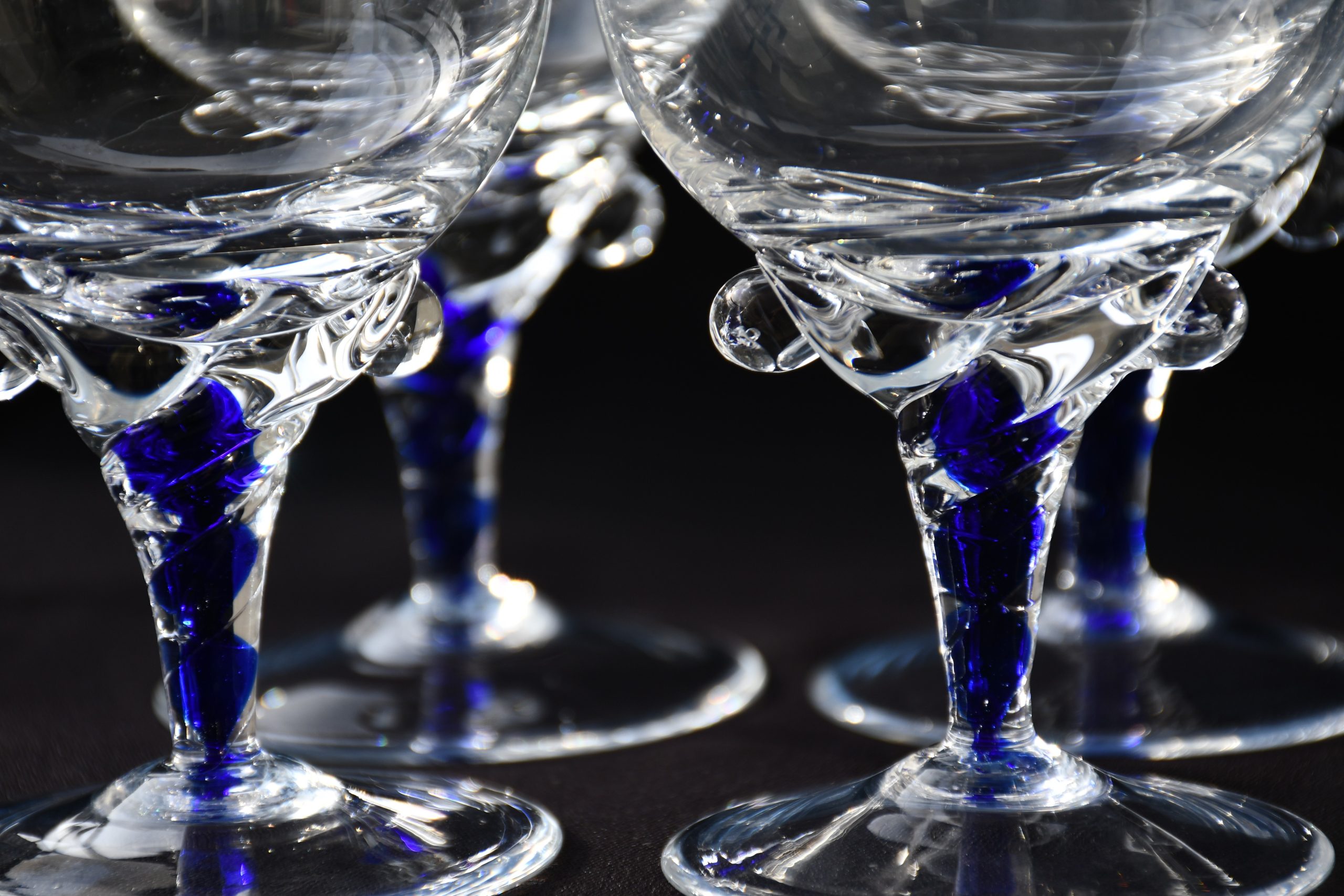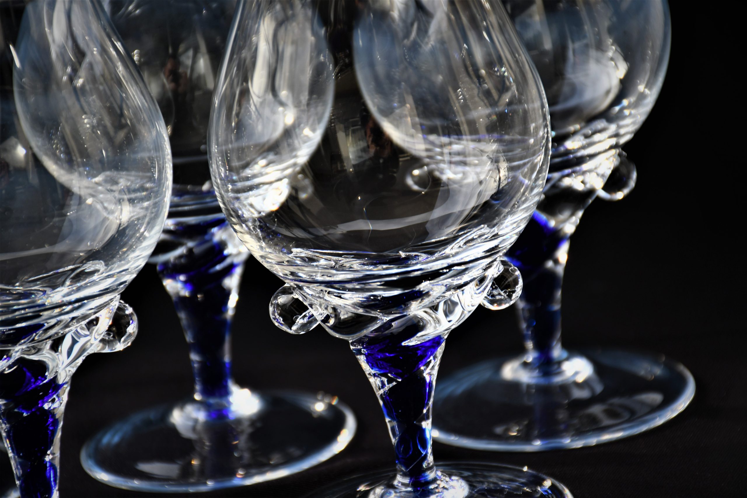 Ако Вашето изключително бренди се нуждае от изключителна чаша – това е моментът на срещата! Горна част от кристал (или висококачествено кристално стъкло, не съм сигурен), с форма на широко лале, върху здраво краче във формата на торнадо, от кристал и кобалтово стъкло, ръчно направени в somerso техника. В духа на Sasaki Coronation, но много по-артистично и елегантно.