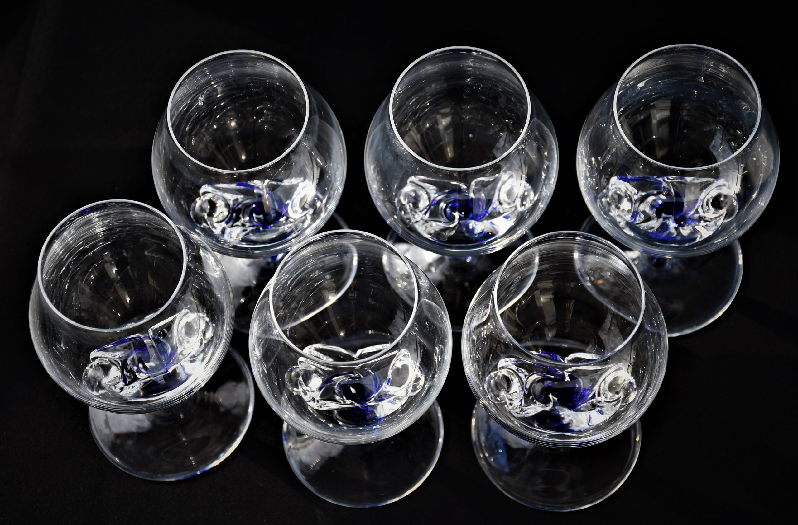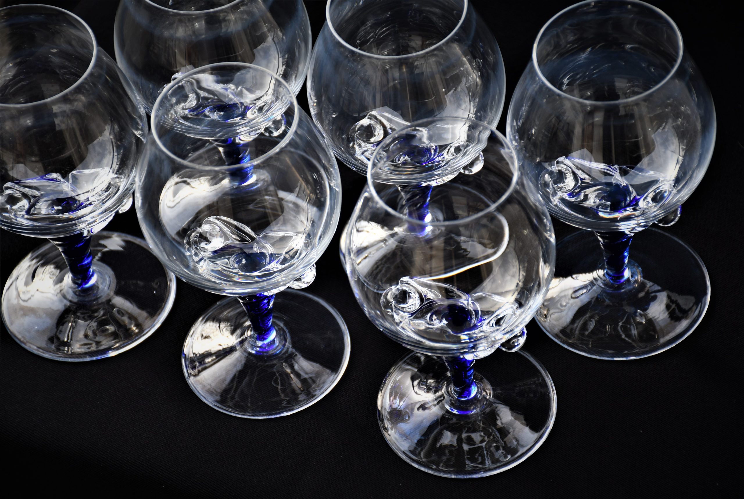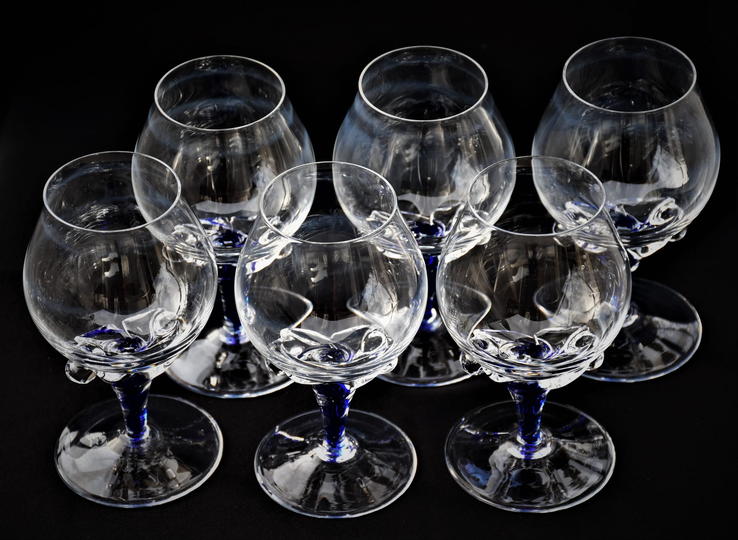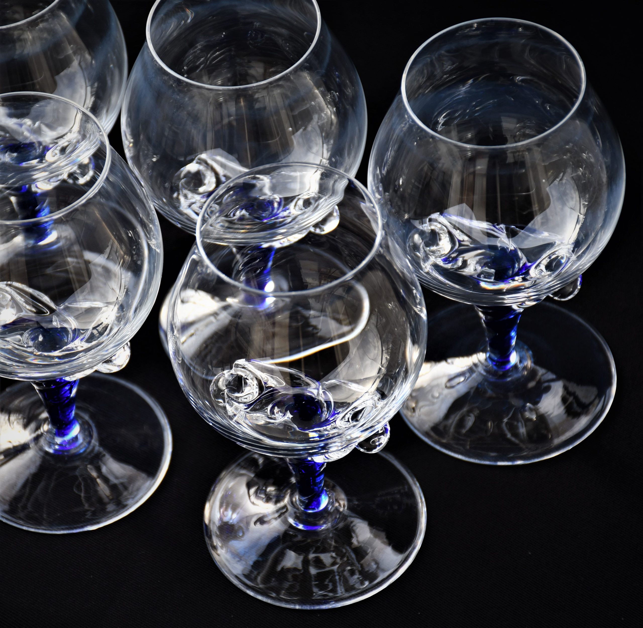Винтидж сервиз за бренди (6) – Кристал и кобалтово стъкло. Ръчна изработка. Европа – 1970-те.