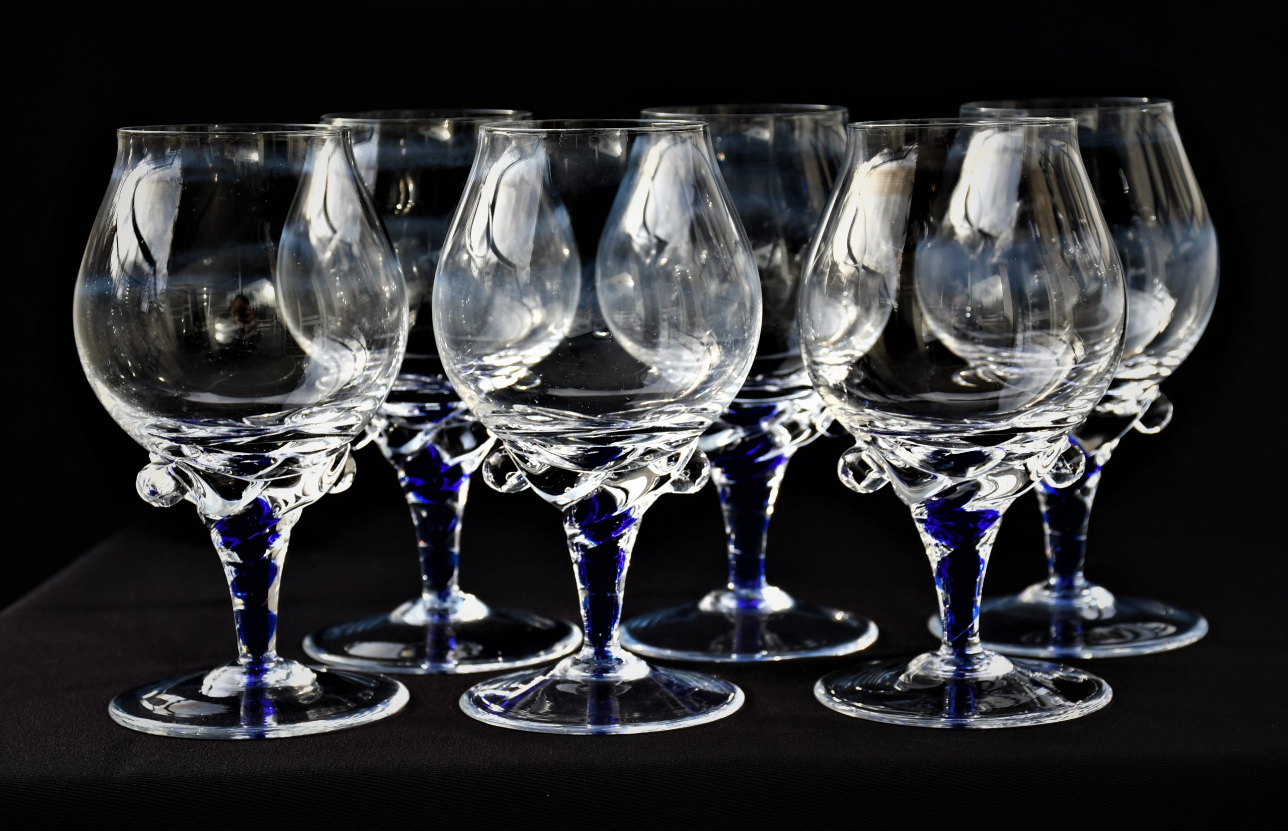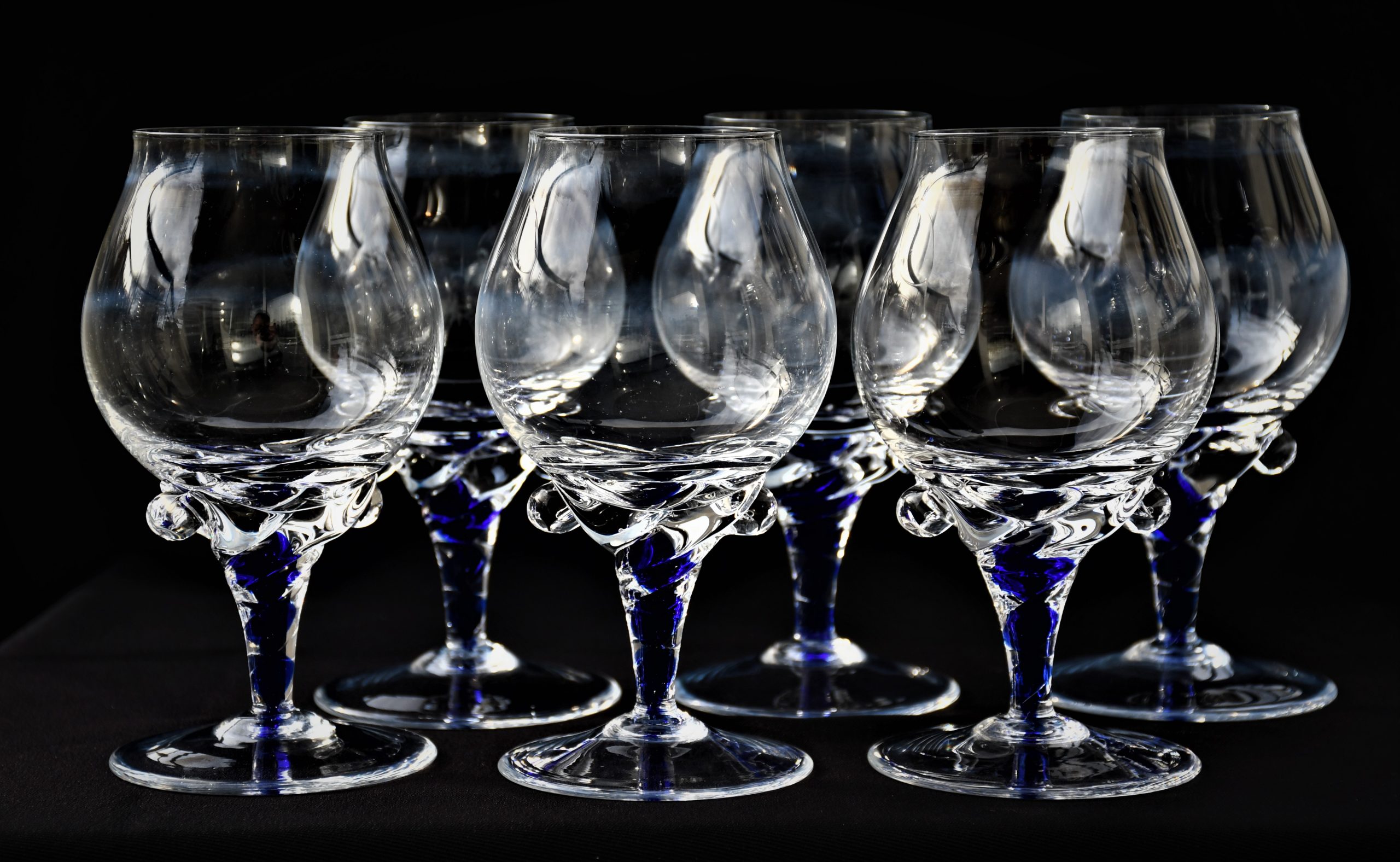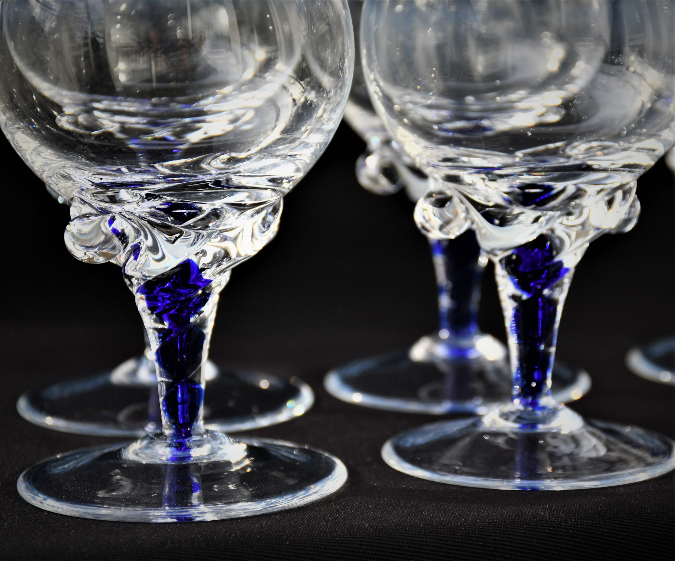 Винтидж сервиз за бренди (6) – Кристал и кобалтово стъкло. Ръчна изработка. Европа – 1970-те.