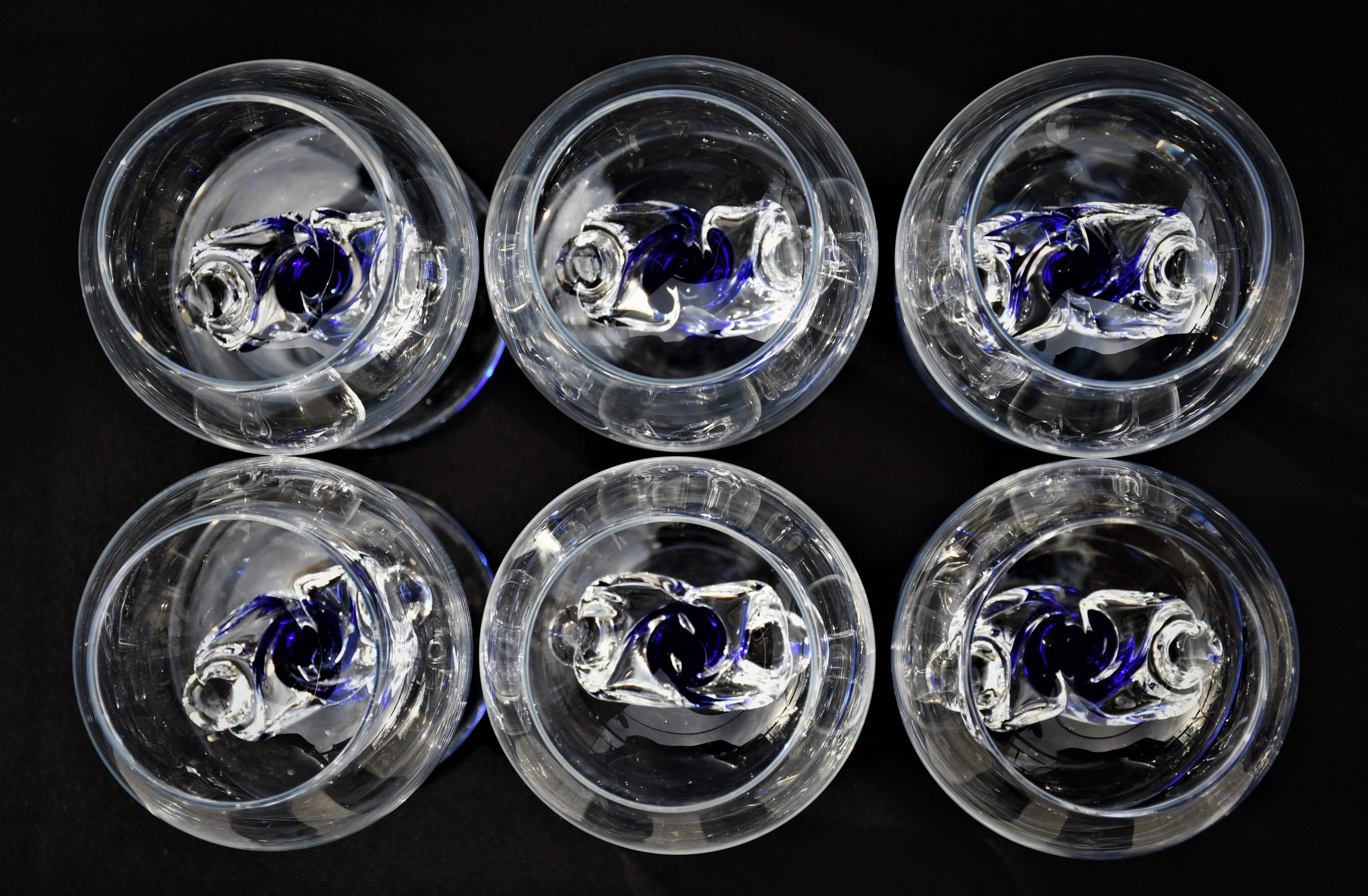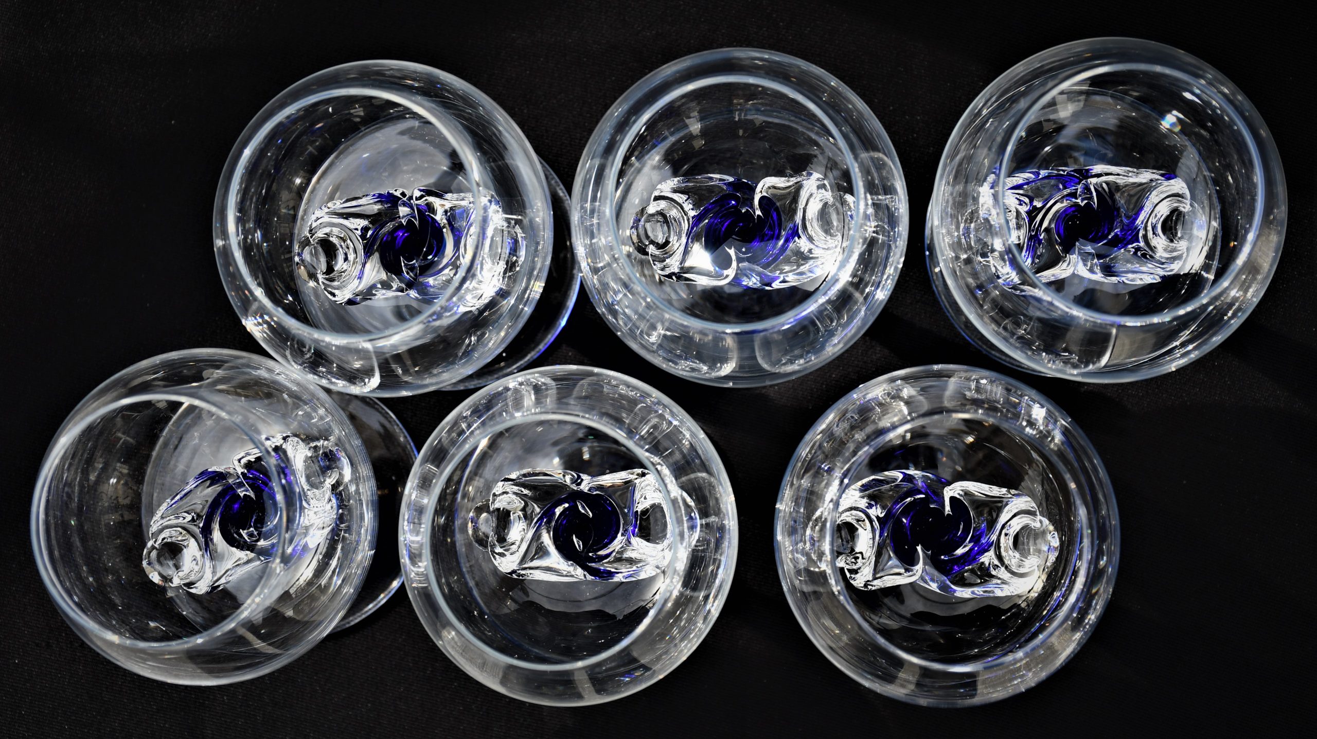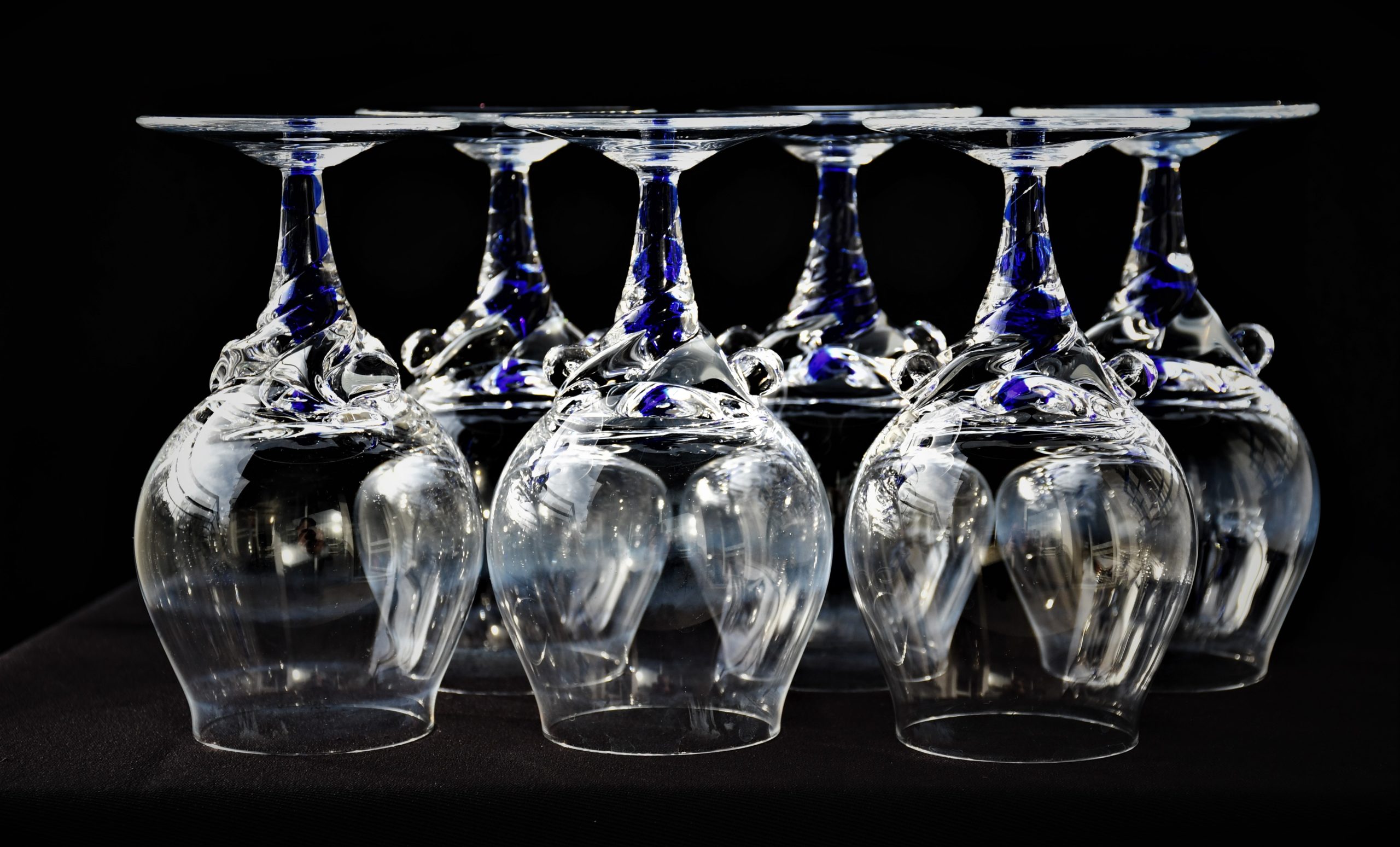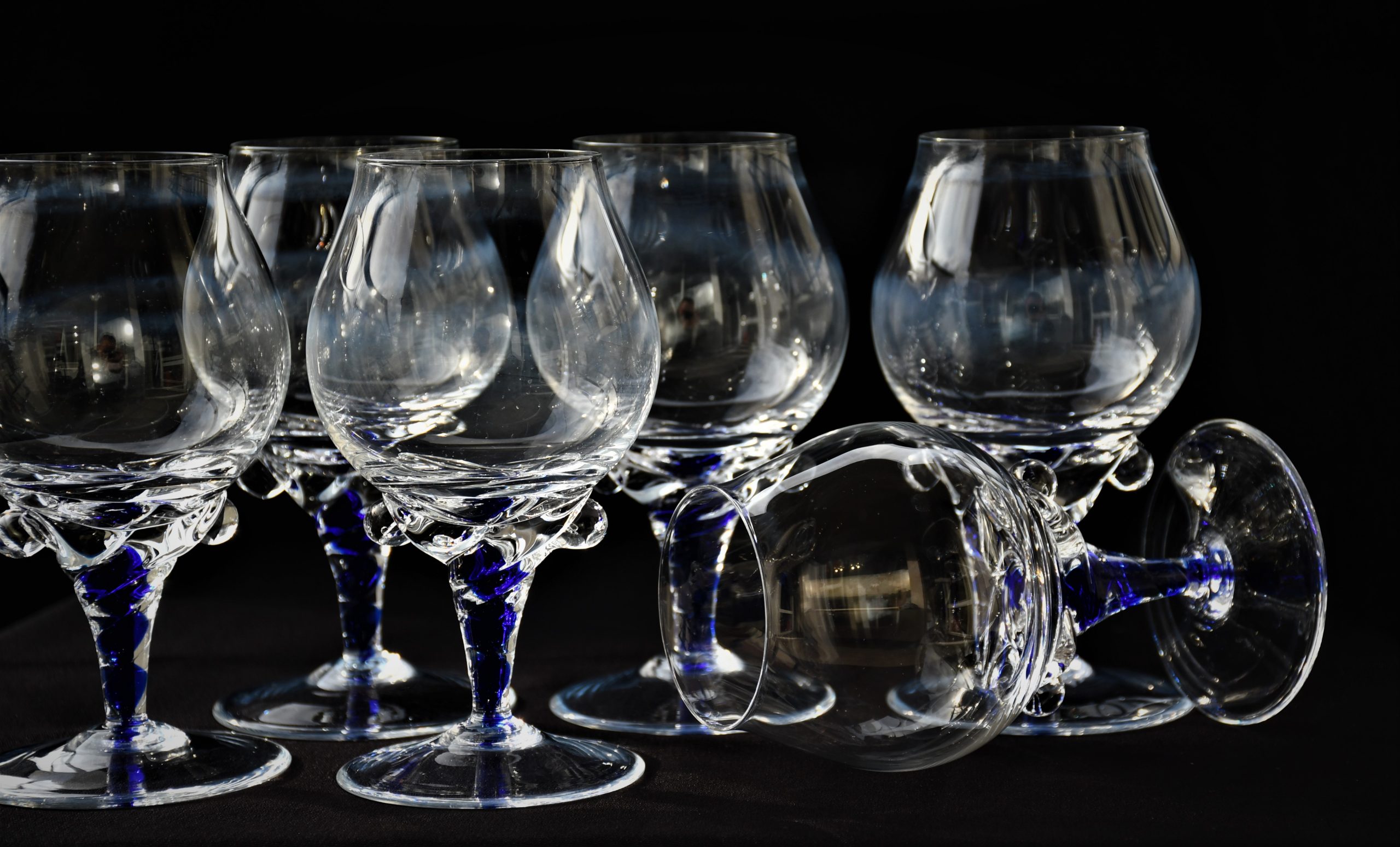 Винтидж сервиз за бренди (6) – Кристал и кобалтово стъкло. Ръчна изработка. Европа – 1970-те.