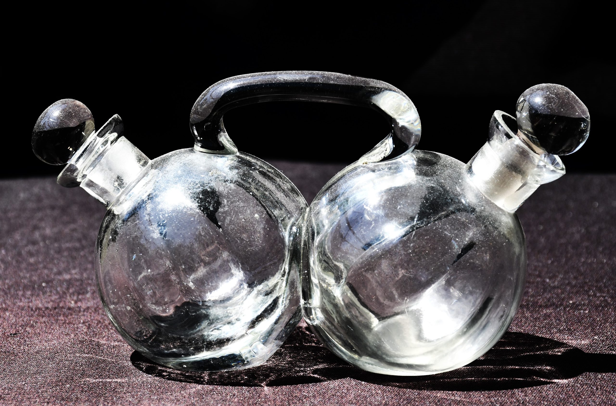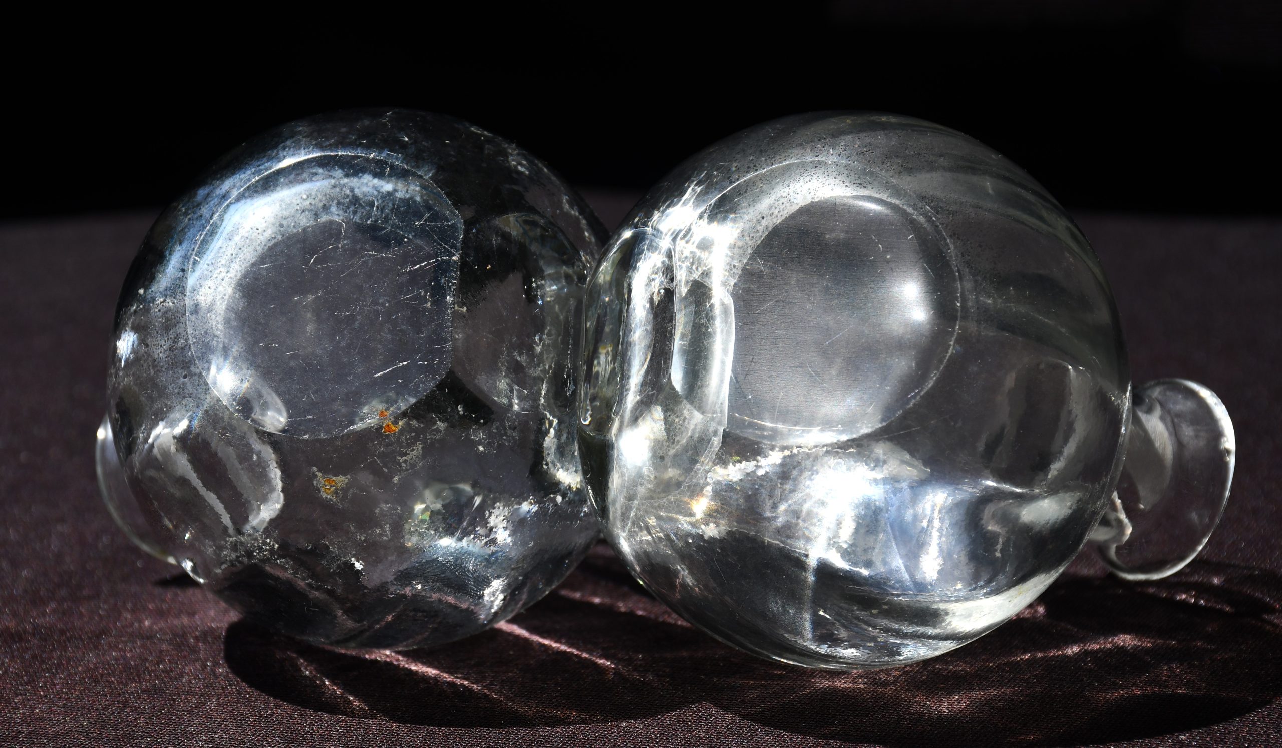 Много емблематичен стъклен артефакт. Ръчно изработено прозрачно стъкло с ръчно полирано дъно. Мотив – спутник, планети… В двойна сферична форма.