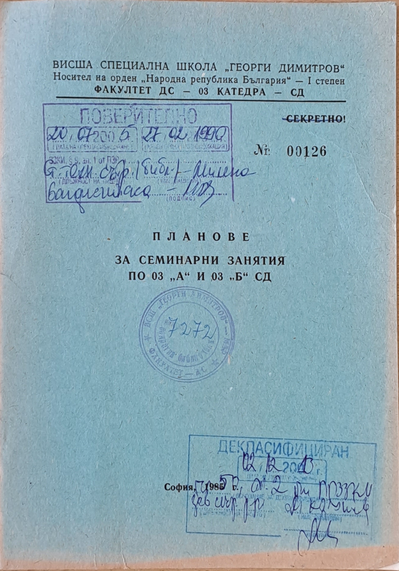 ВСШ „Г. Димитров“-МВР. Планове за семинарни занятия по 03 „А“ и 03 „Б“ СД