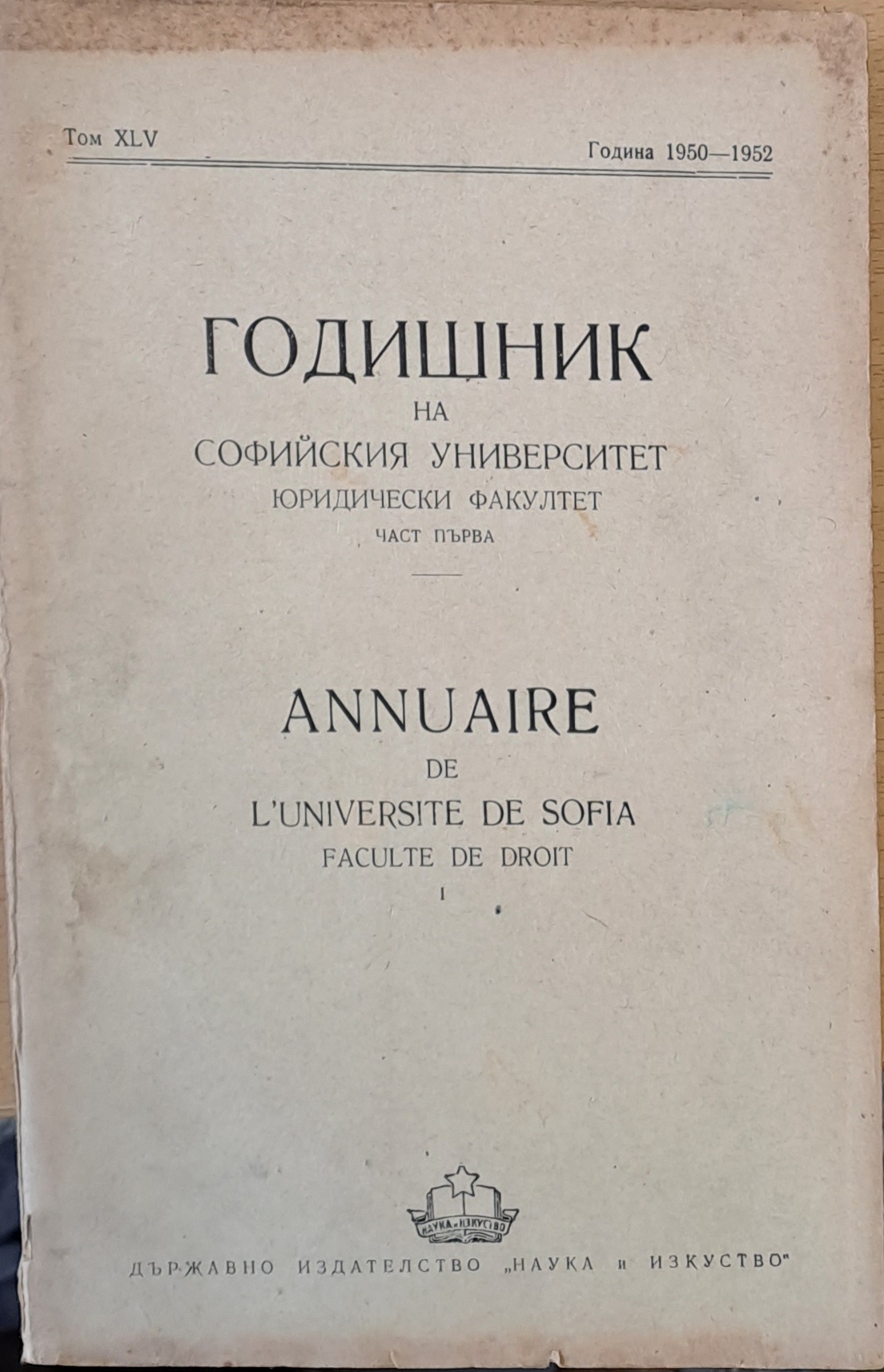 Годишник на Софийския университет, Юридически факултет, част първа, том ХLV, Година 1950-52
