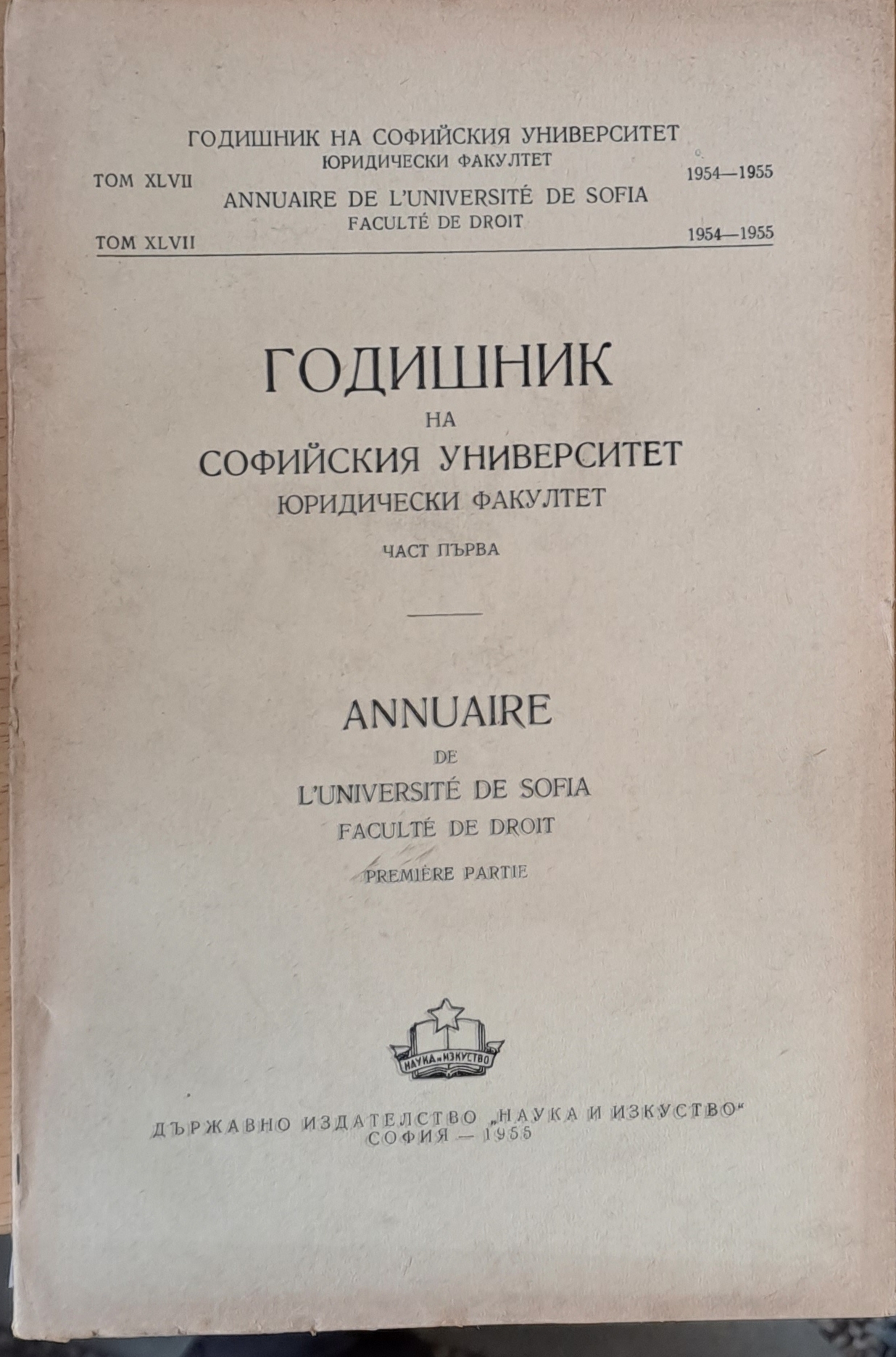 Годишник на Софийския университет, Юридически факултет част І, том ХLVII, Година 1954-1955