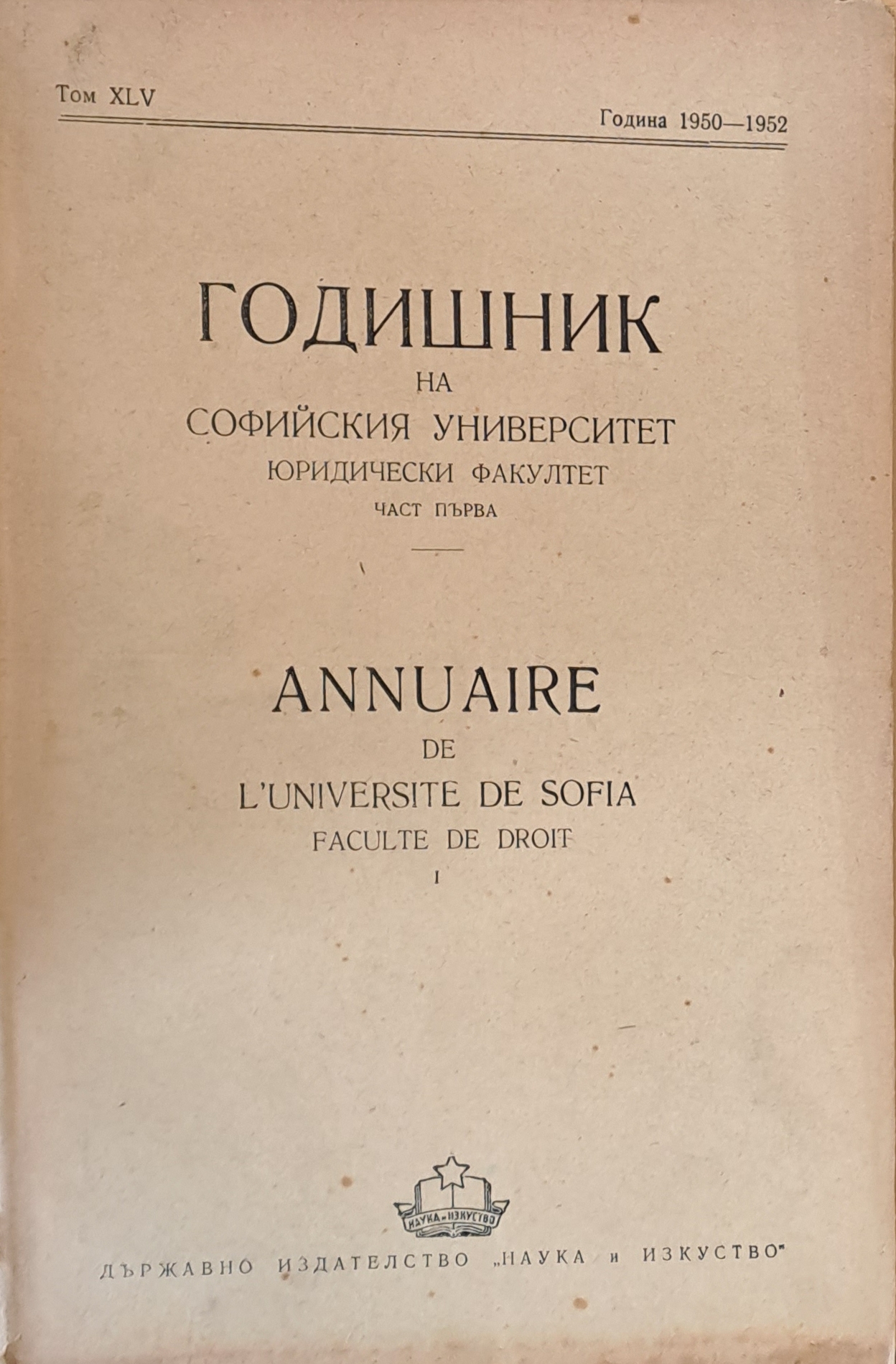 Годишник на Софийския университет, Юридически факултет част първа, том ХLV, Година 1950-52