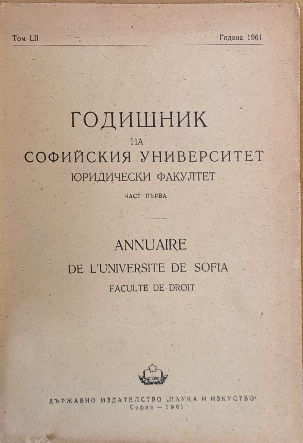 Годишник на Софийския университет, Юридически факултет, част първа, том LІ, Година 1961