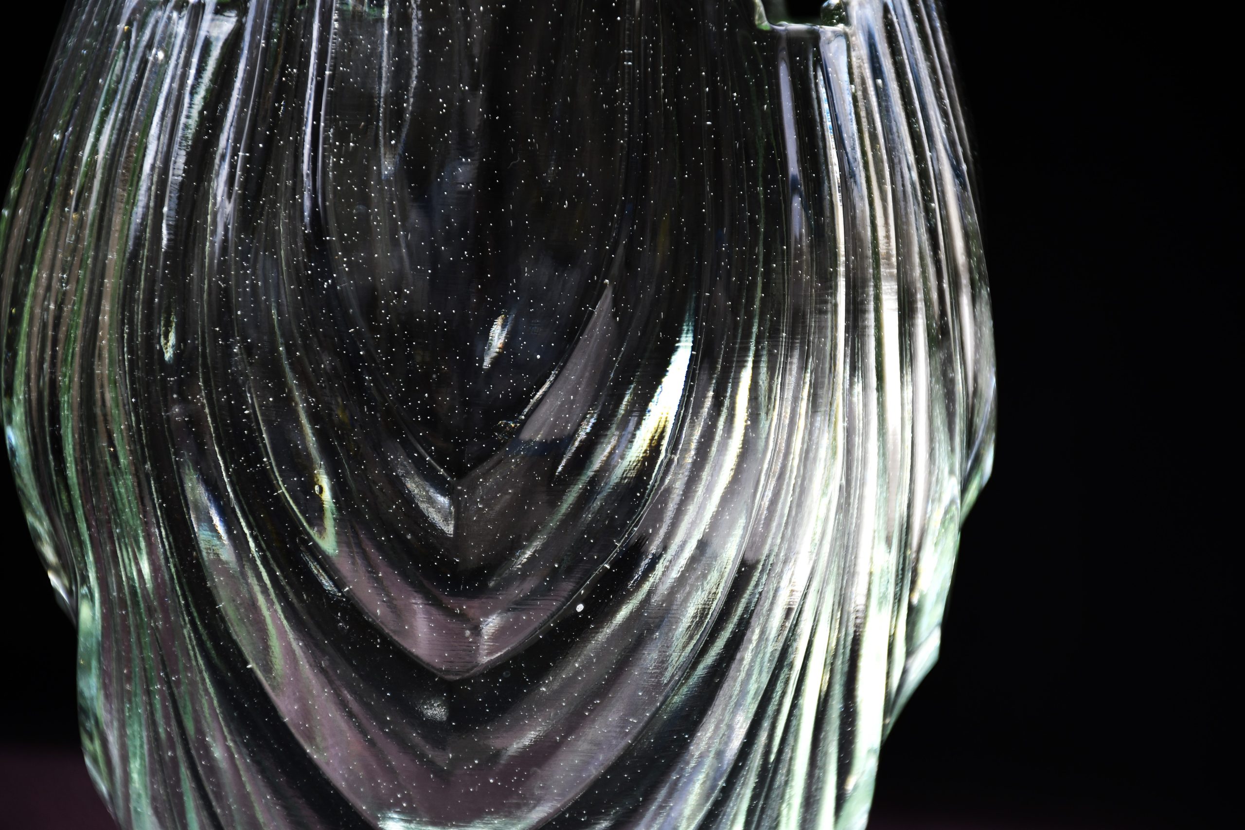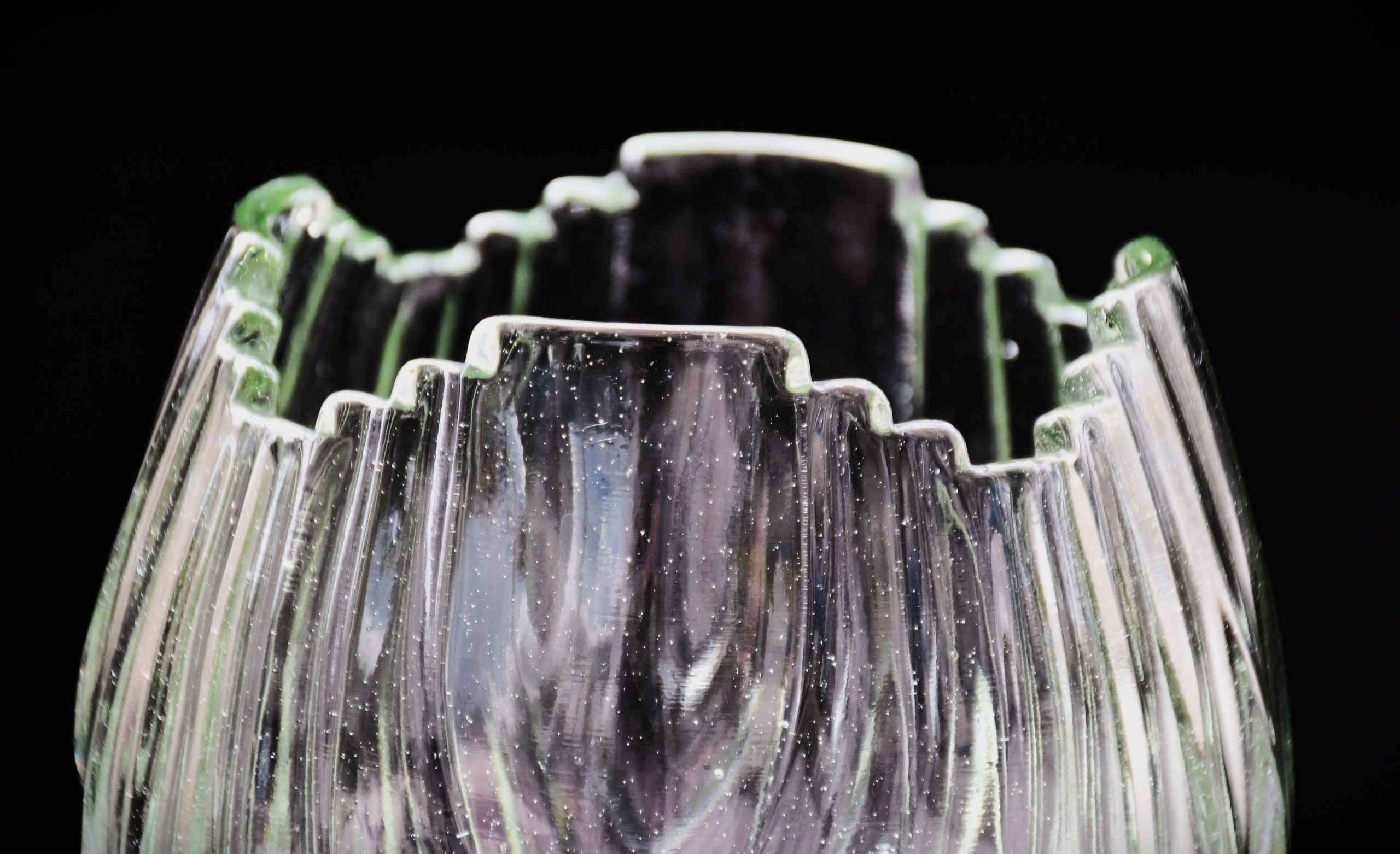В прозрачен, бледозелен цвят. Стилизирани елементи, напълно в духа на стила. Масивна, със сериозно тегло. Бедна роднина, но с аристократично потекло и много силно присъствие.