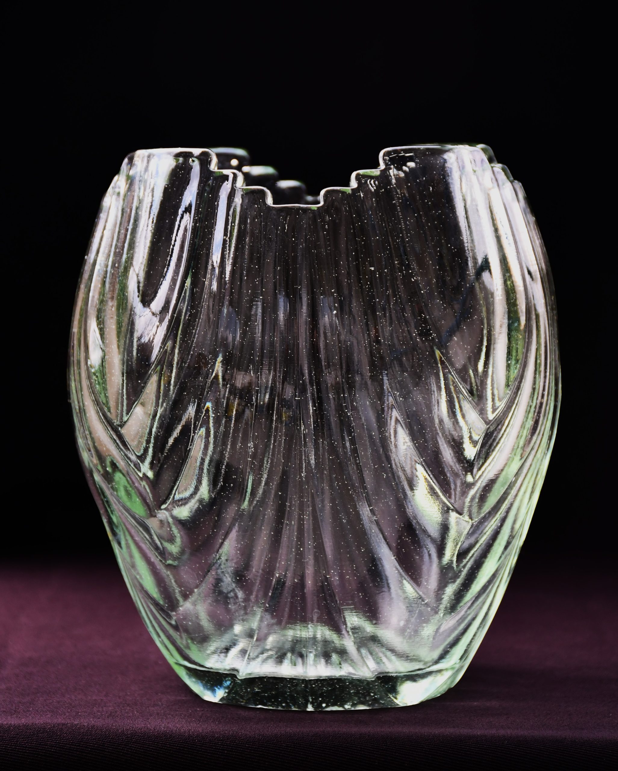 Голяма ваза в стила на Art Deco, датирана 50’те, пресовано стъкло. Производство вер. Чехословакия.