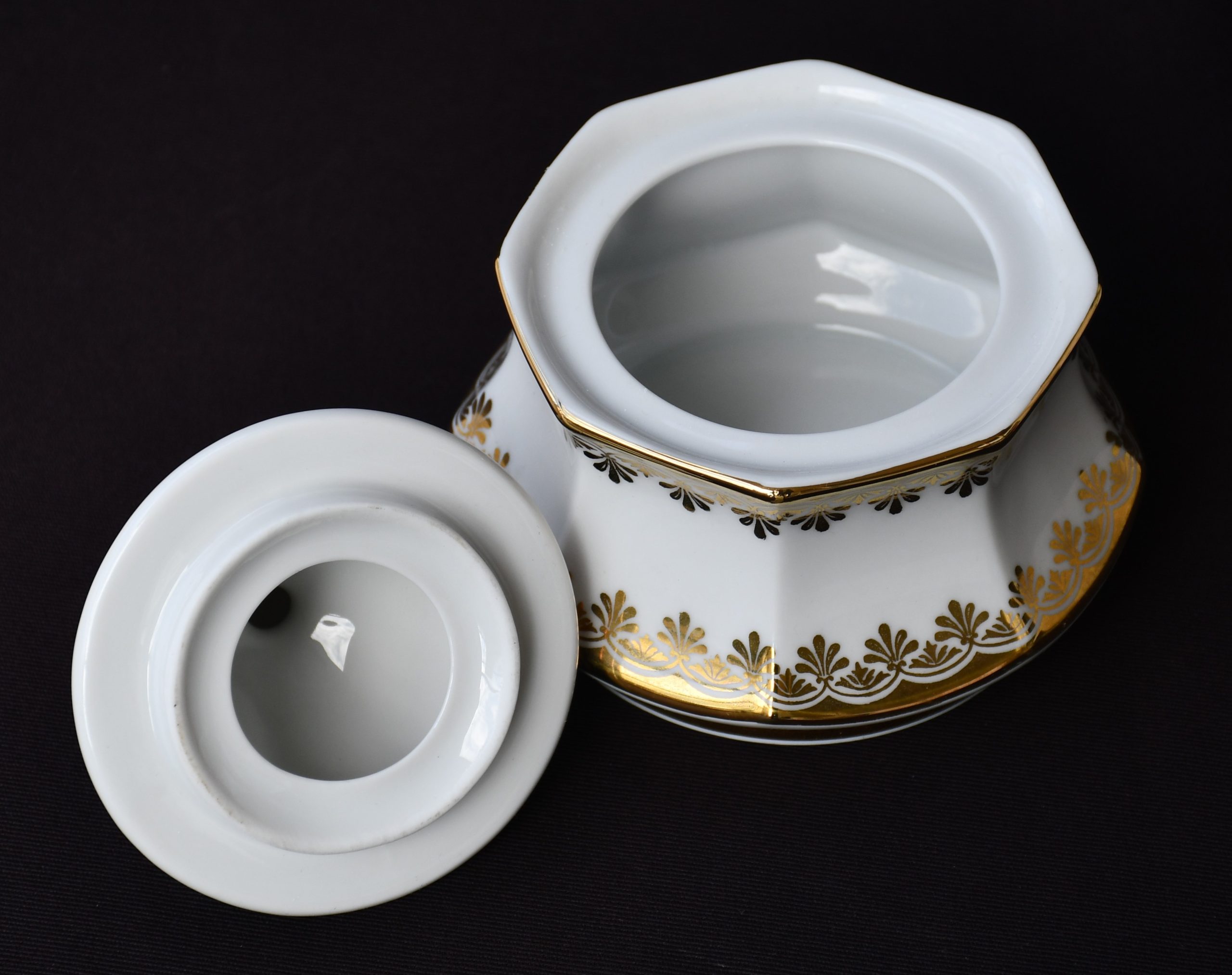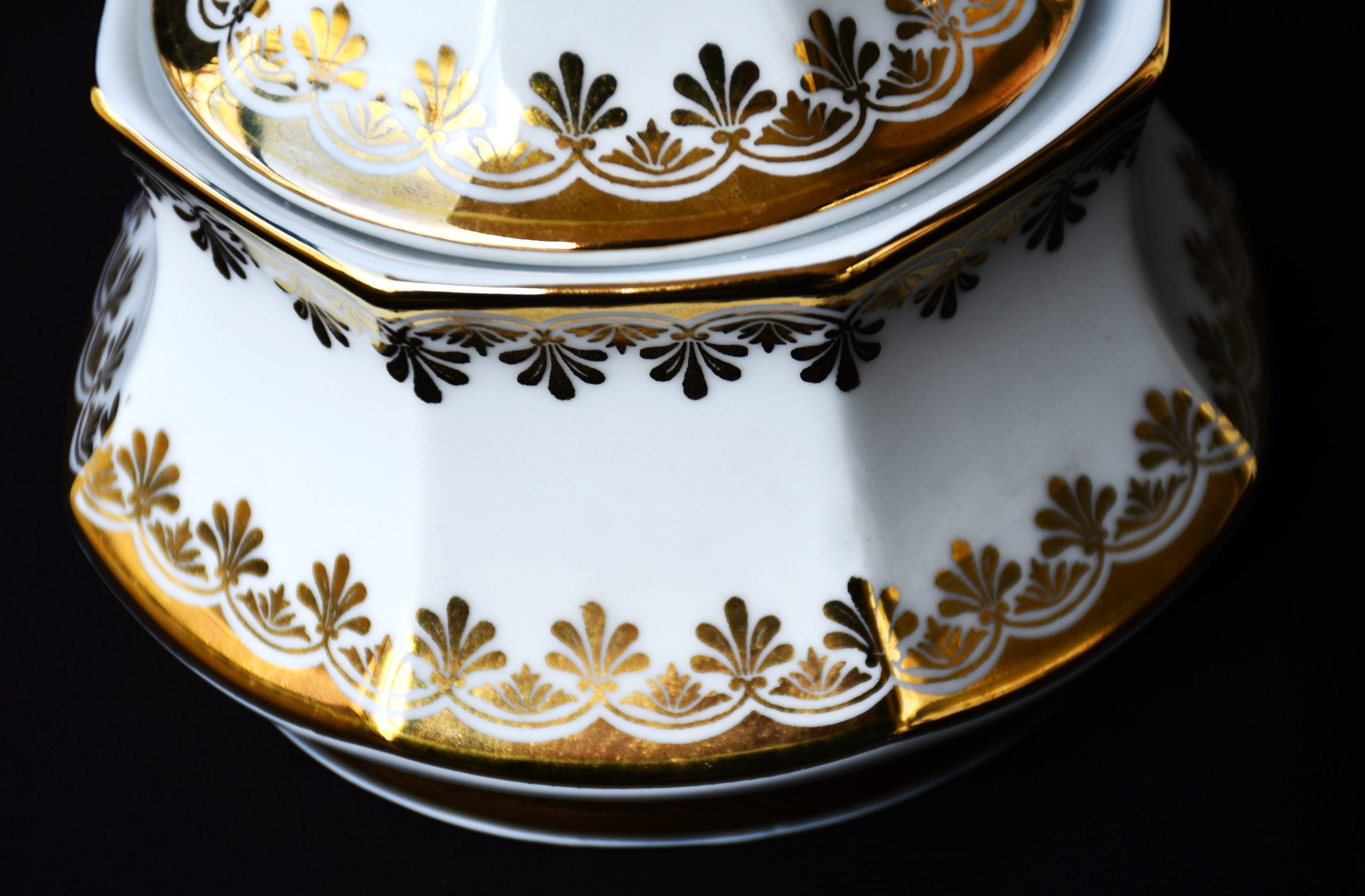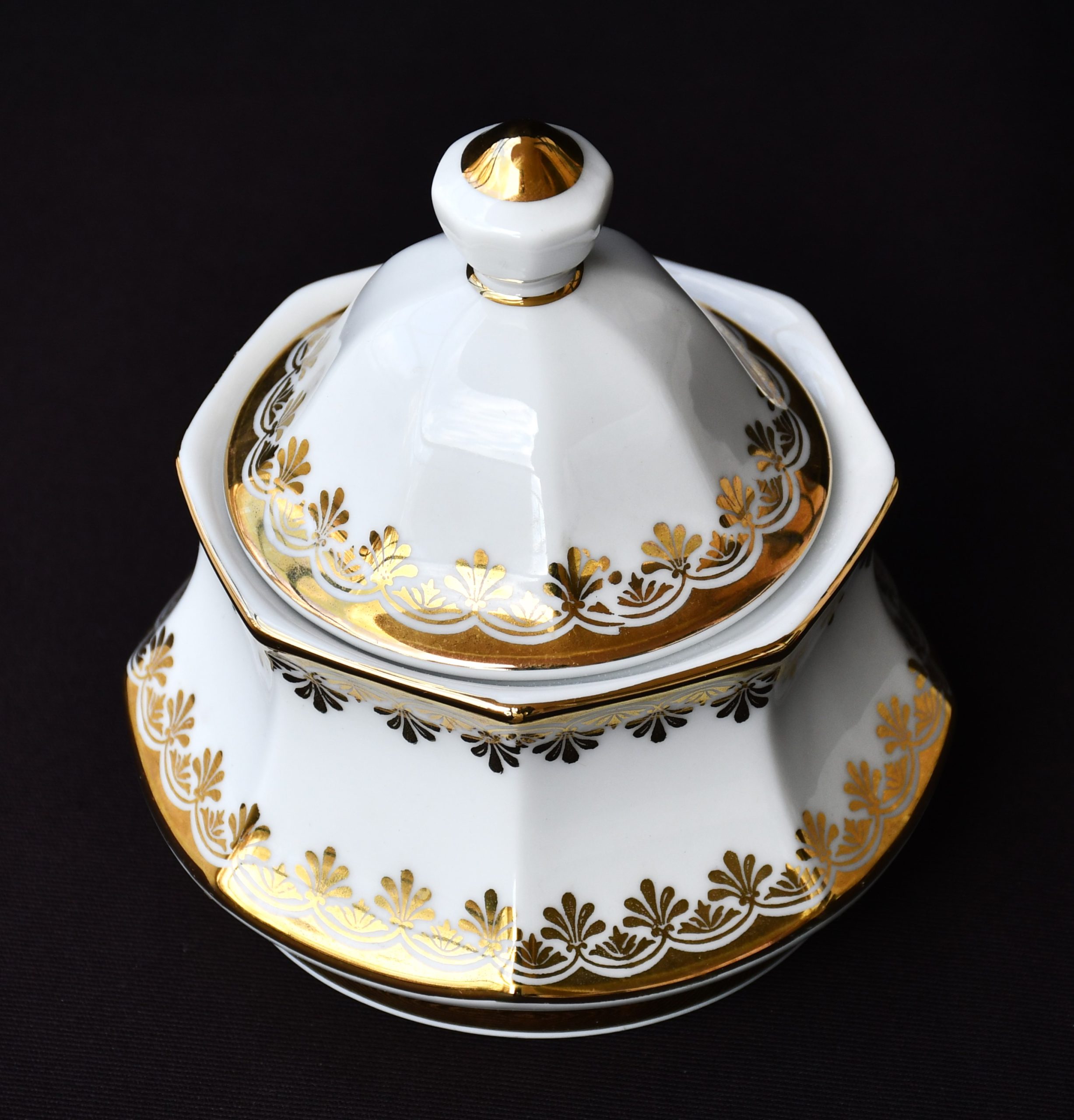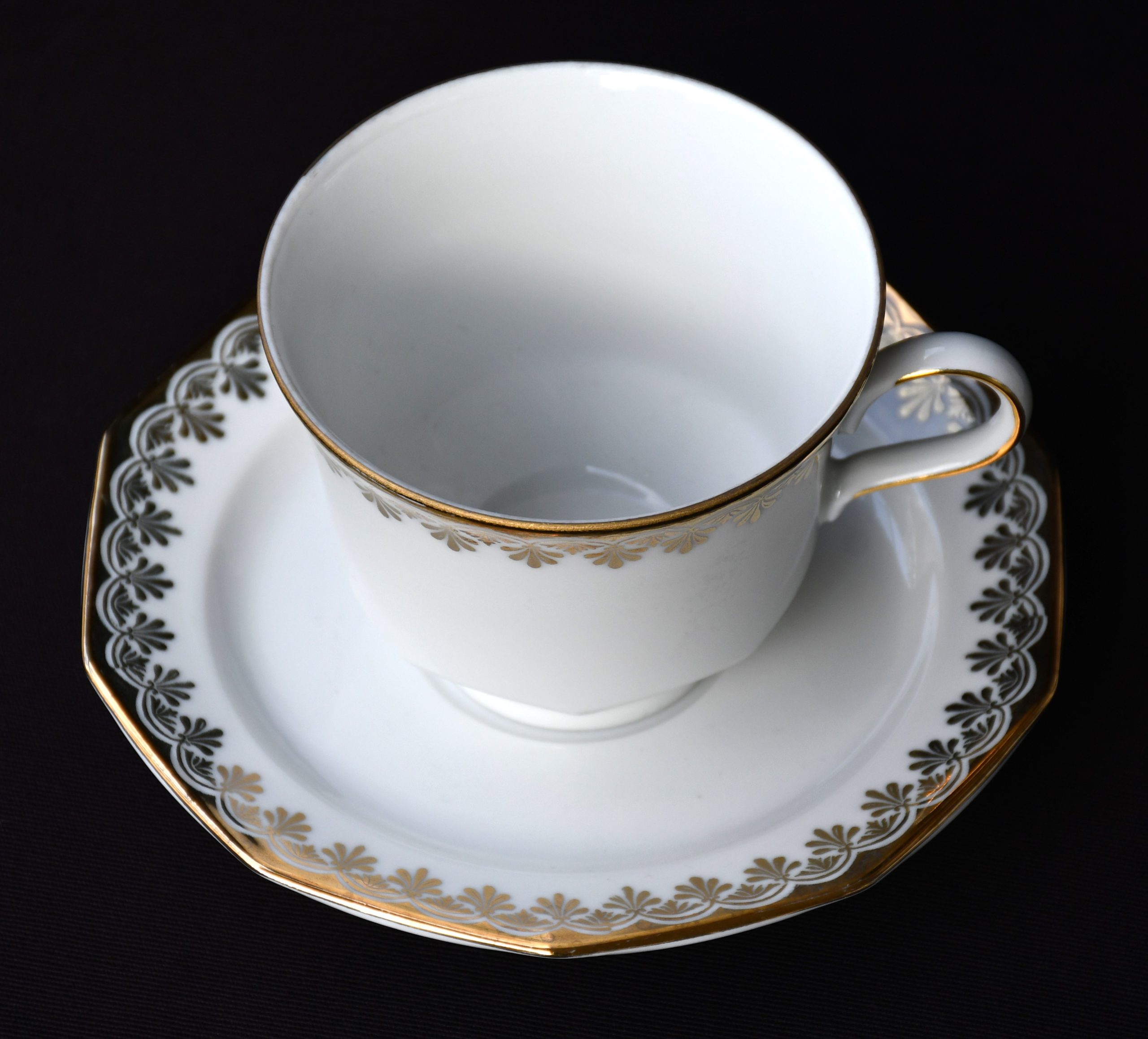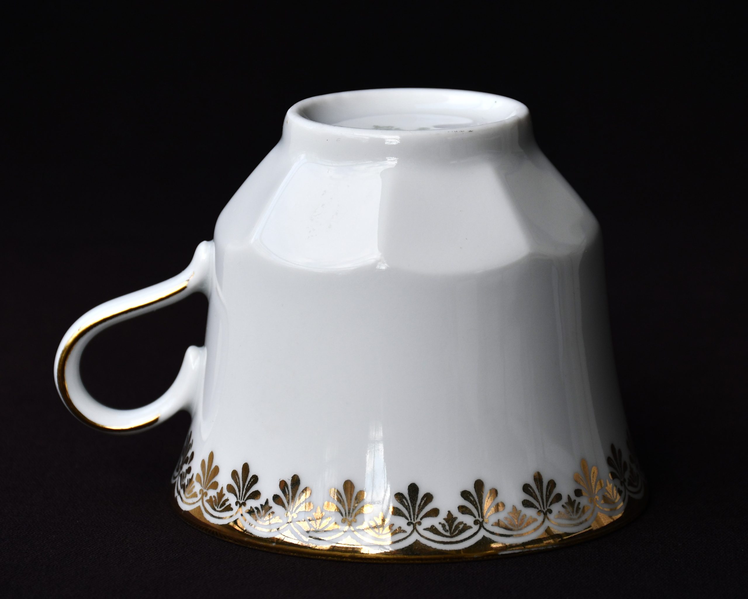 Голям сет за кафе от елитен баварски порцелан с рядка палметна декорация в златно. Производство на Winterling.