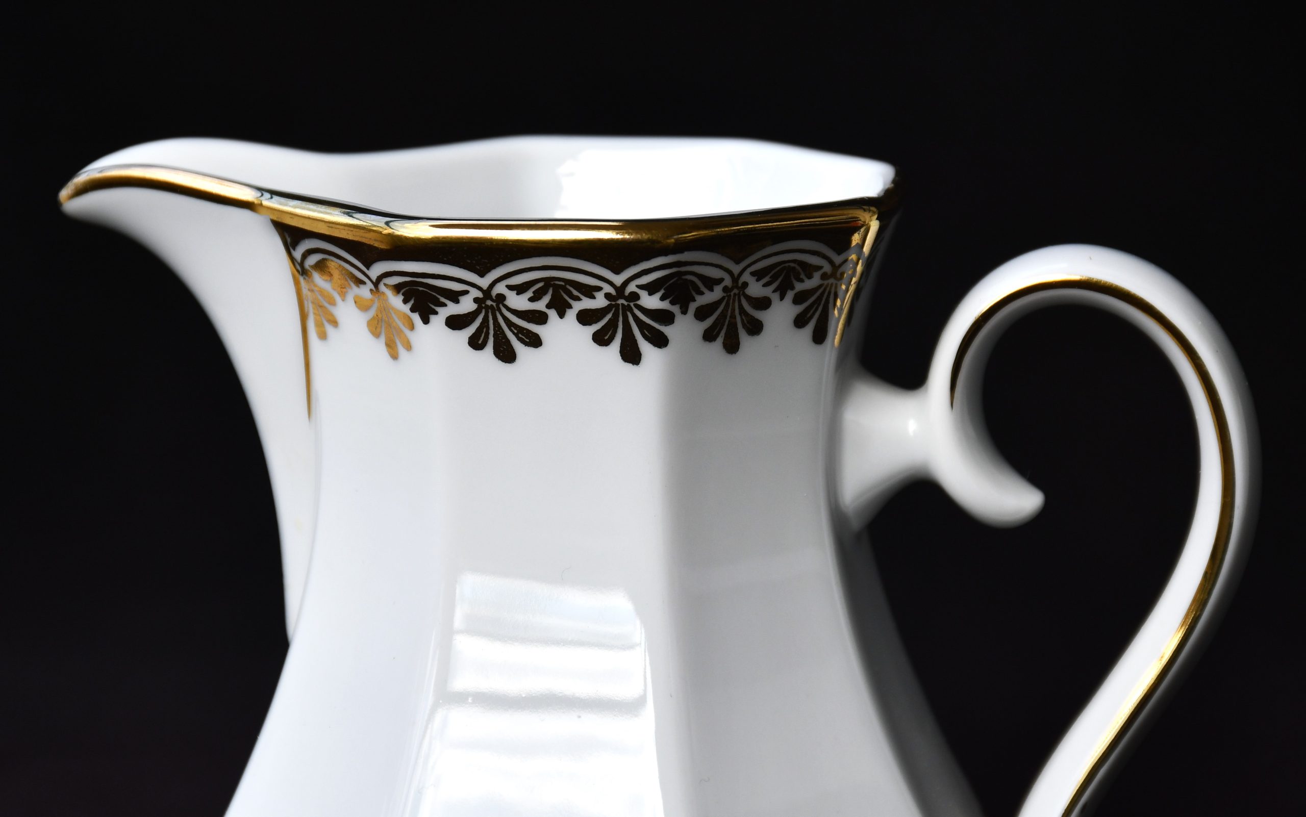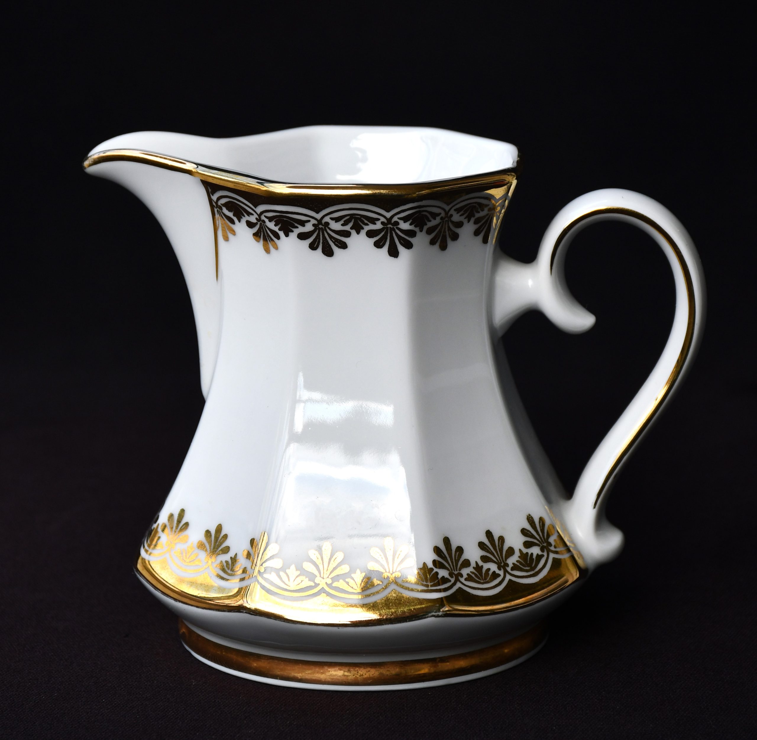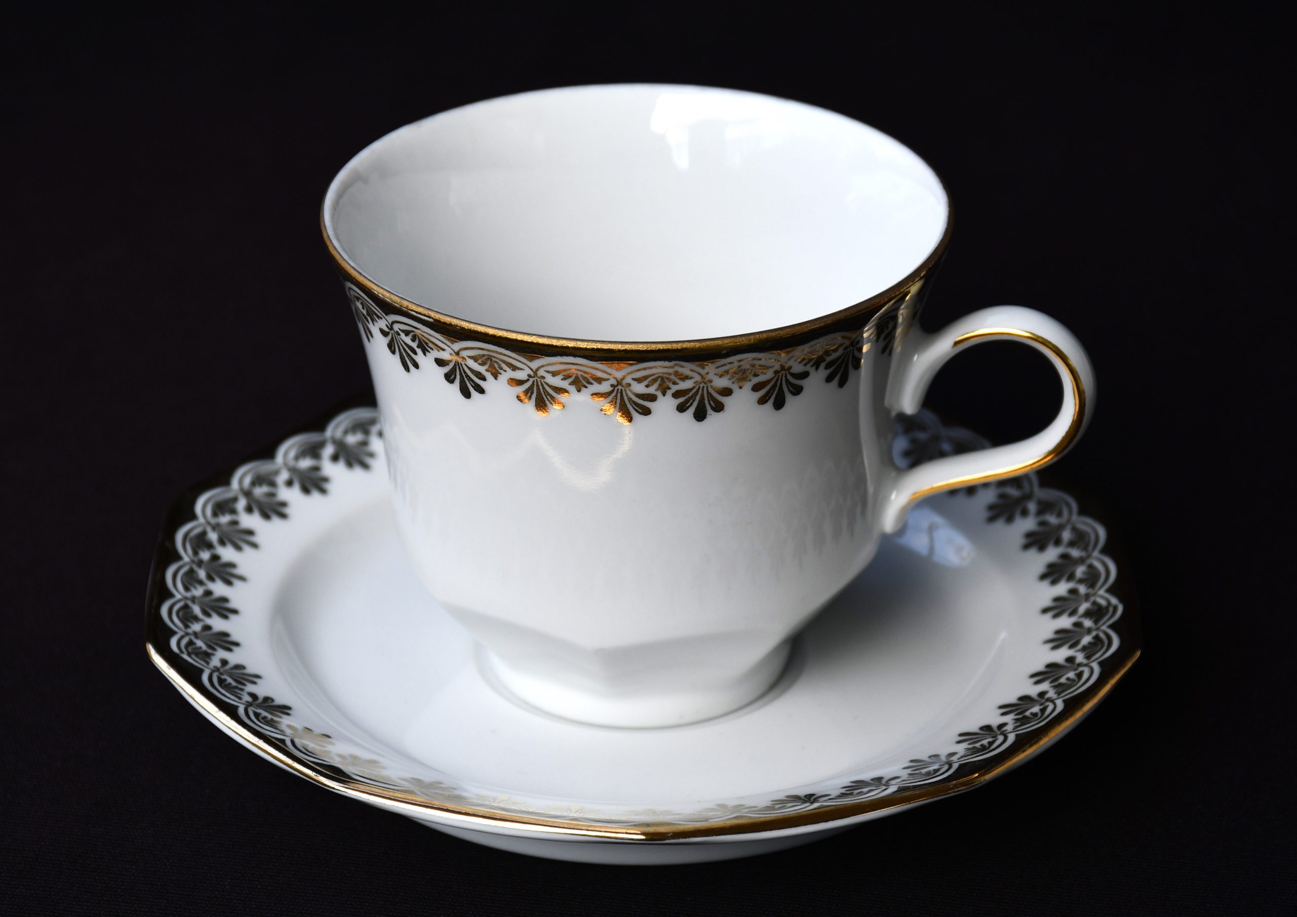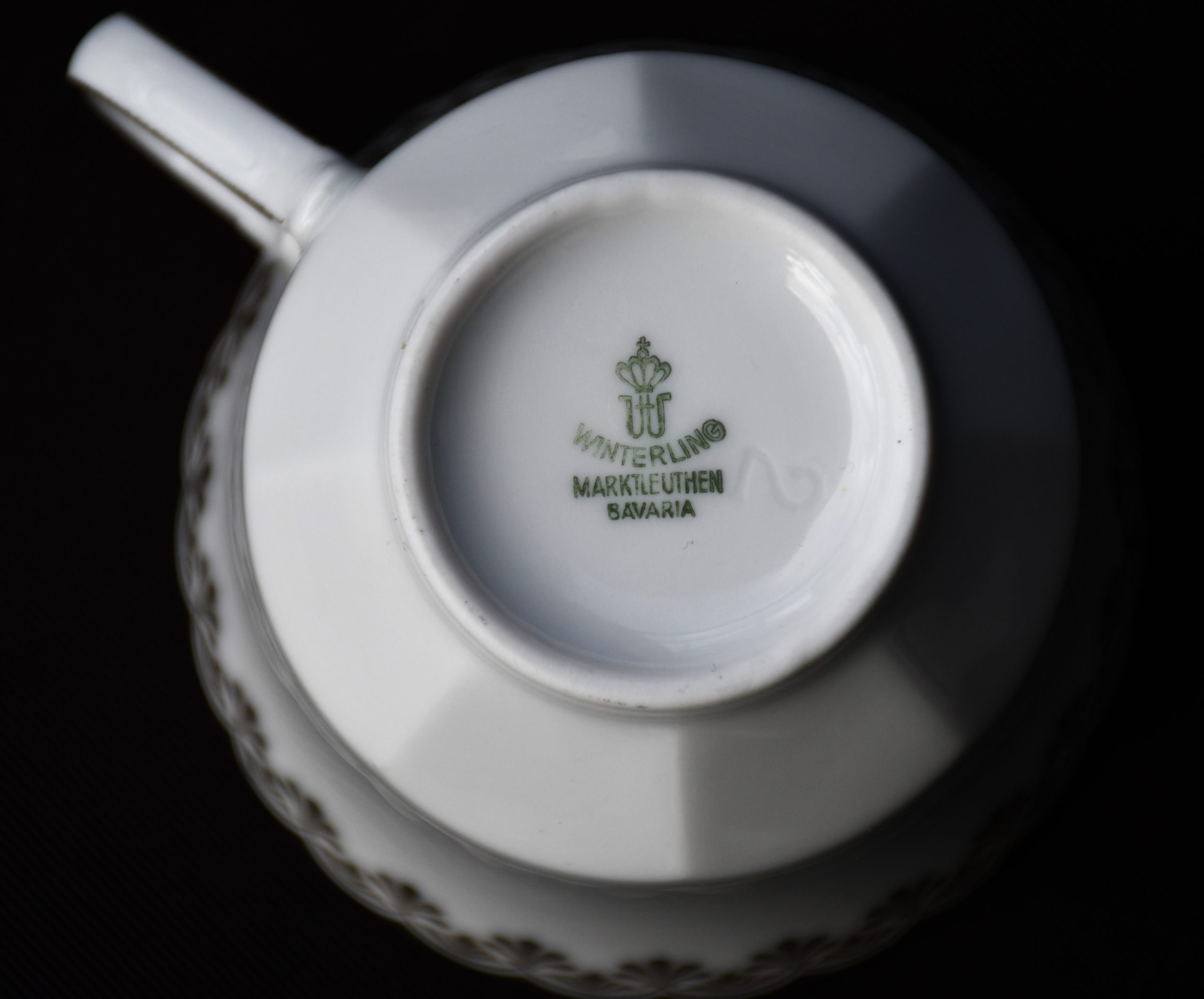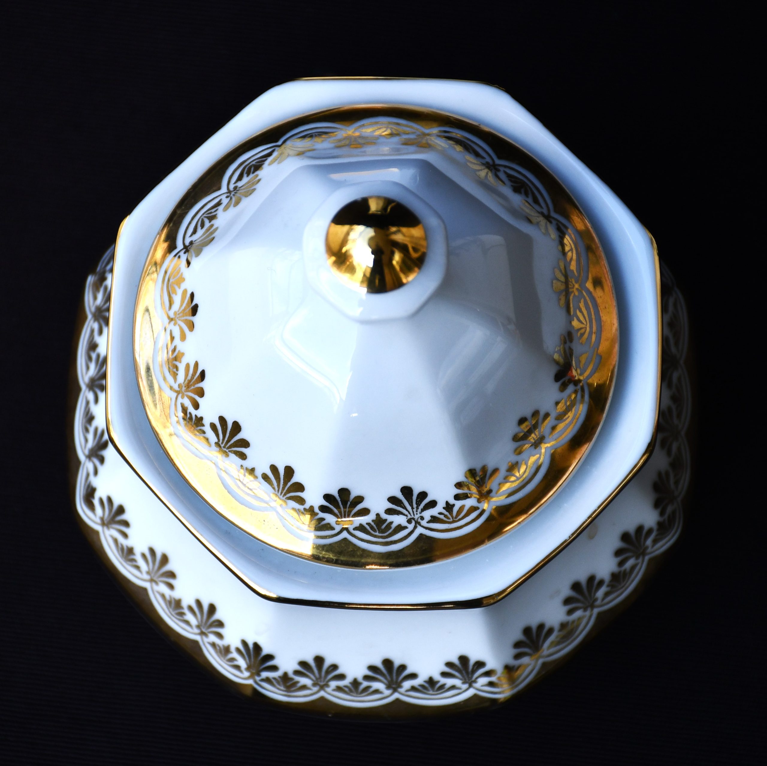 Голям сет за кафе от елитен баварски порцелан с рядка палметна декорация в златно. Производство на Winterling.