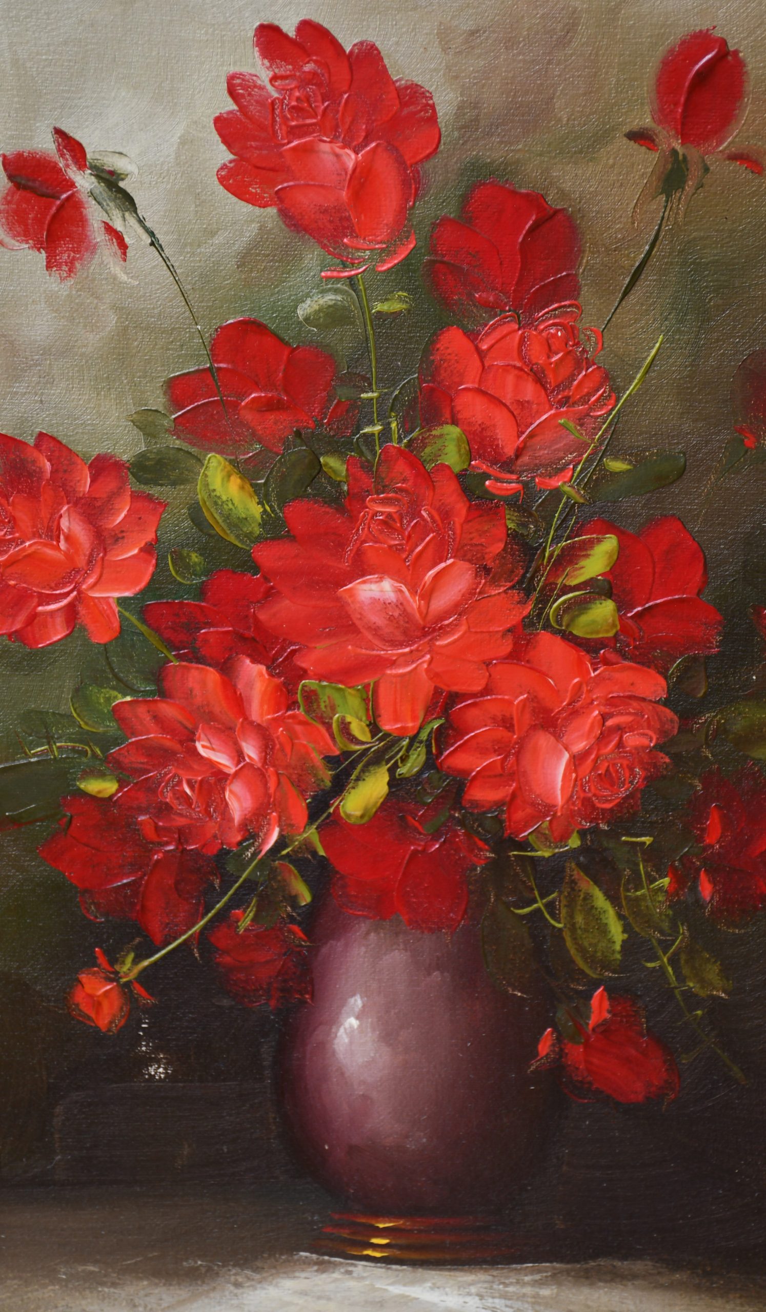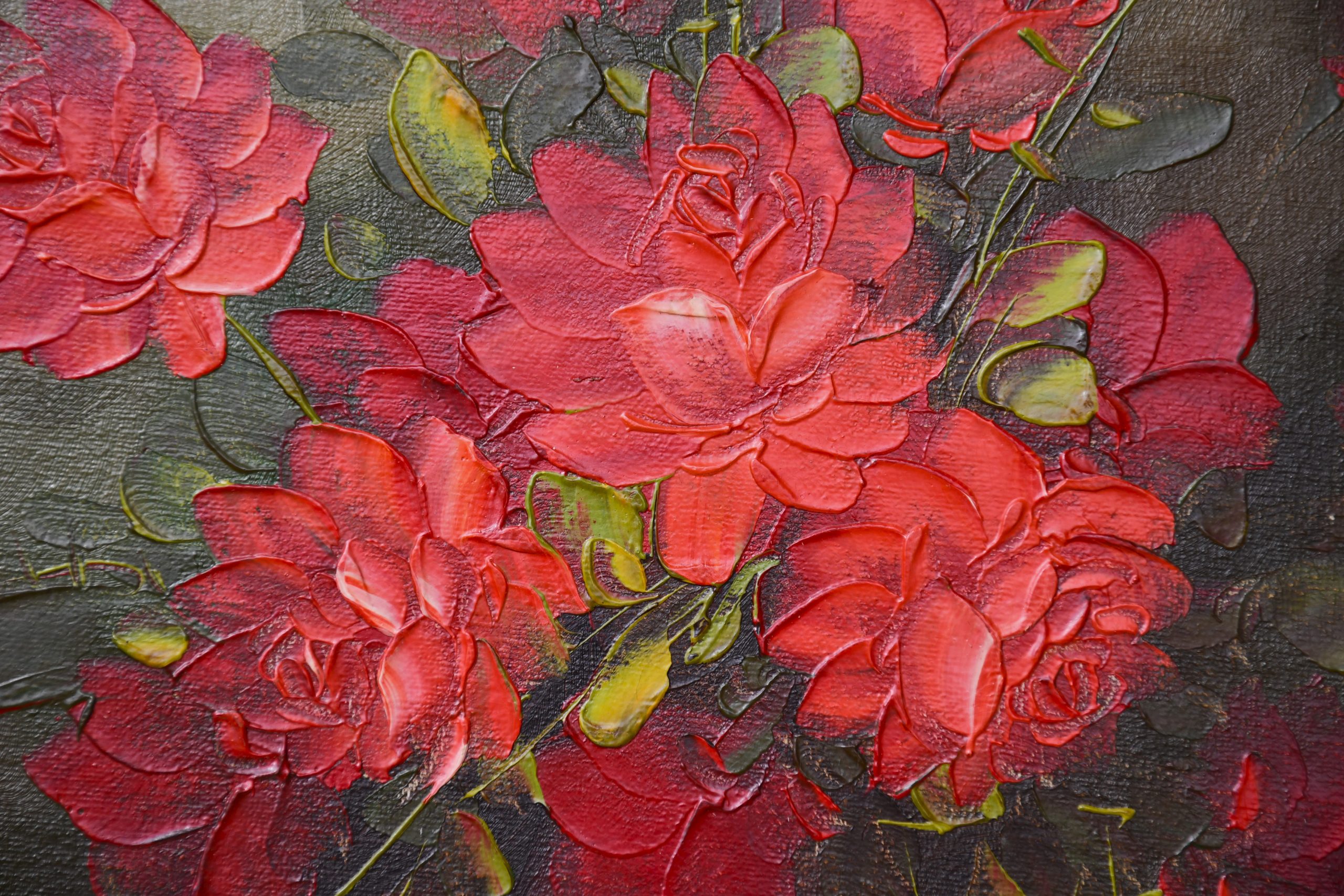 Европейска школа (70те) – „Рози“, масло върху фазер, рамкирана, не е подписана.